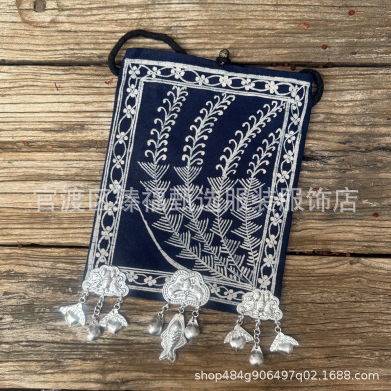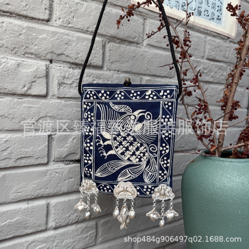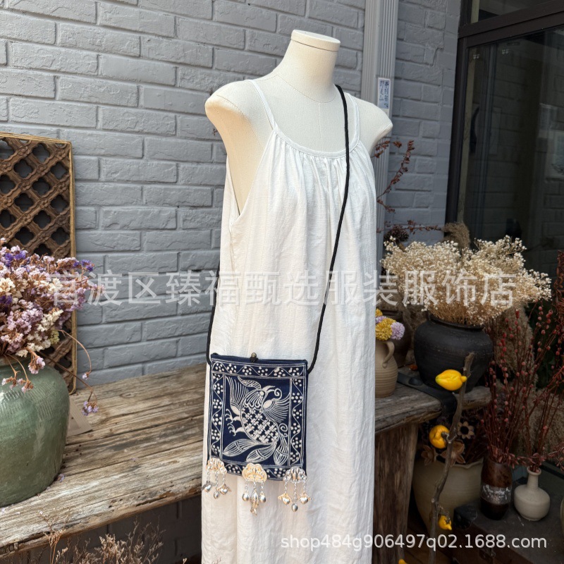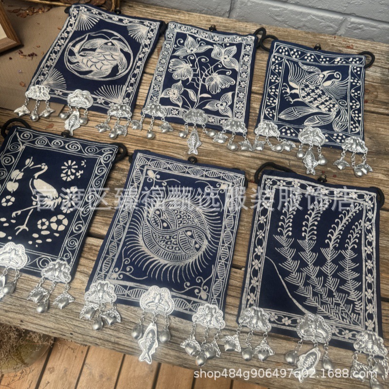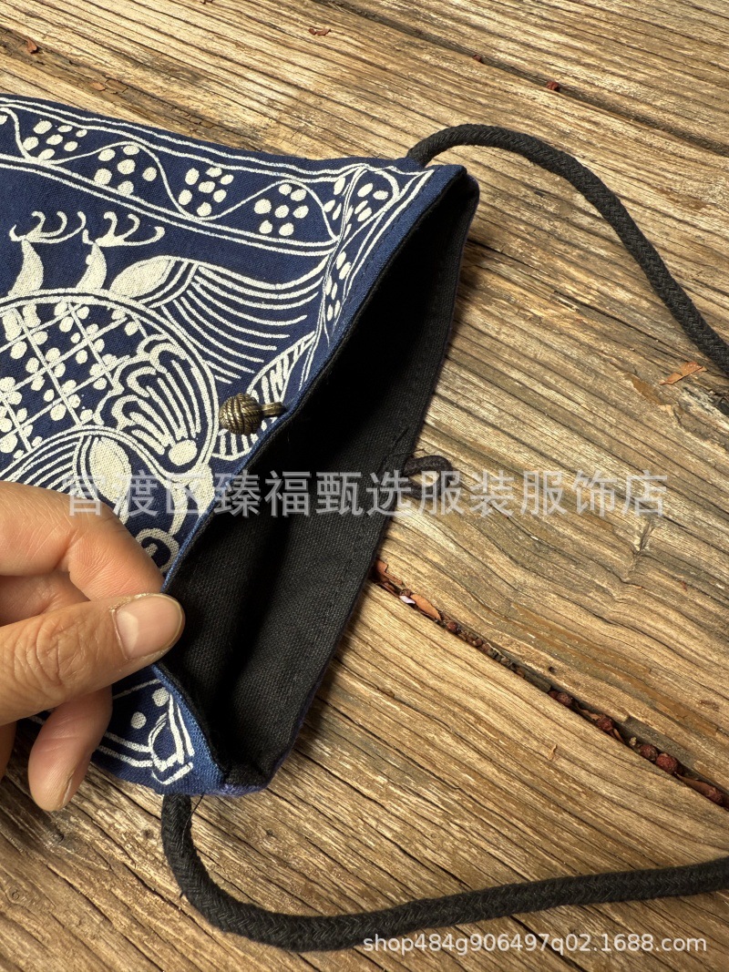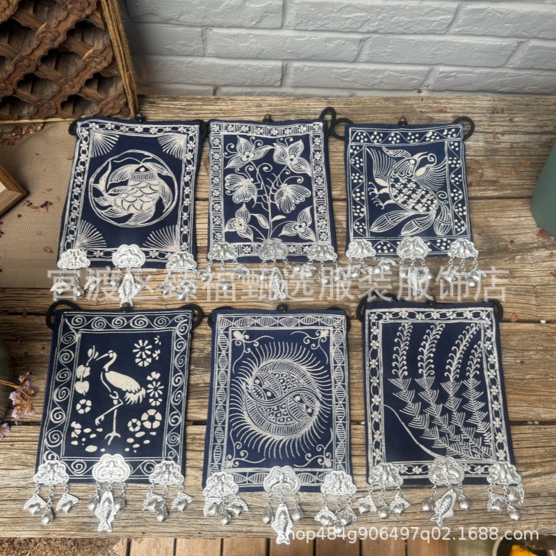 棉麻粗布土布手工画蜡染+苗银流苏坠子