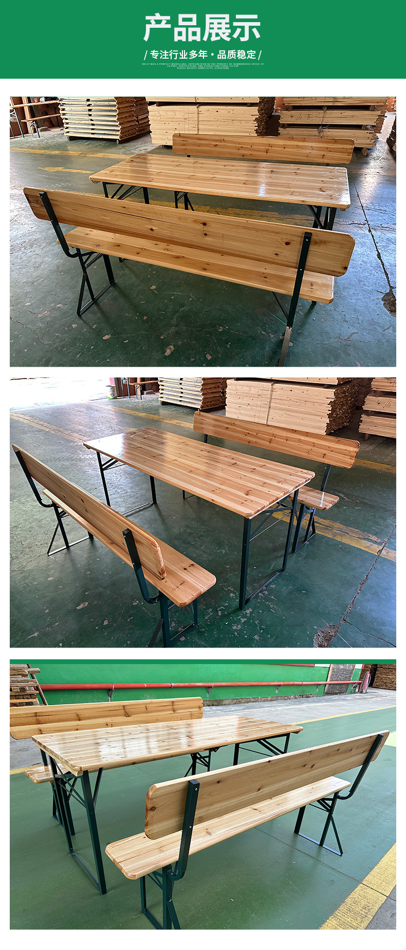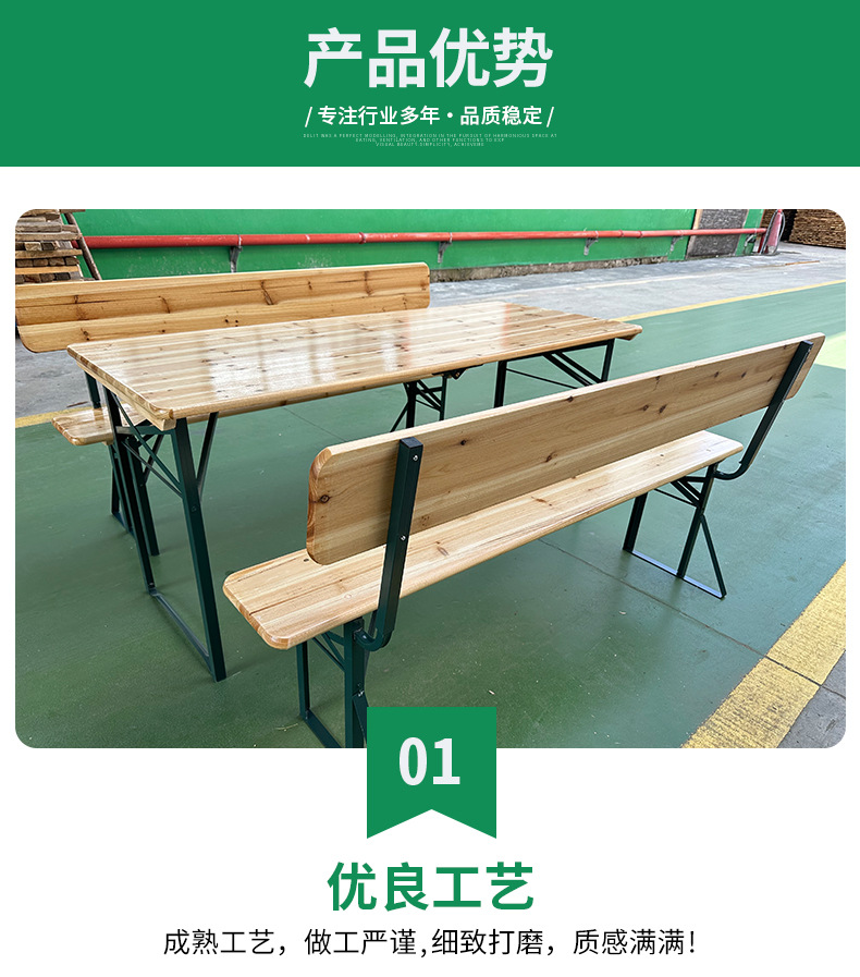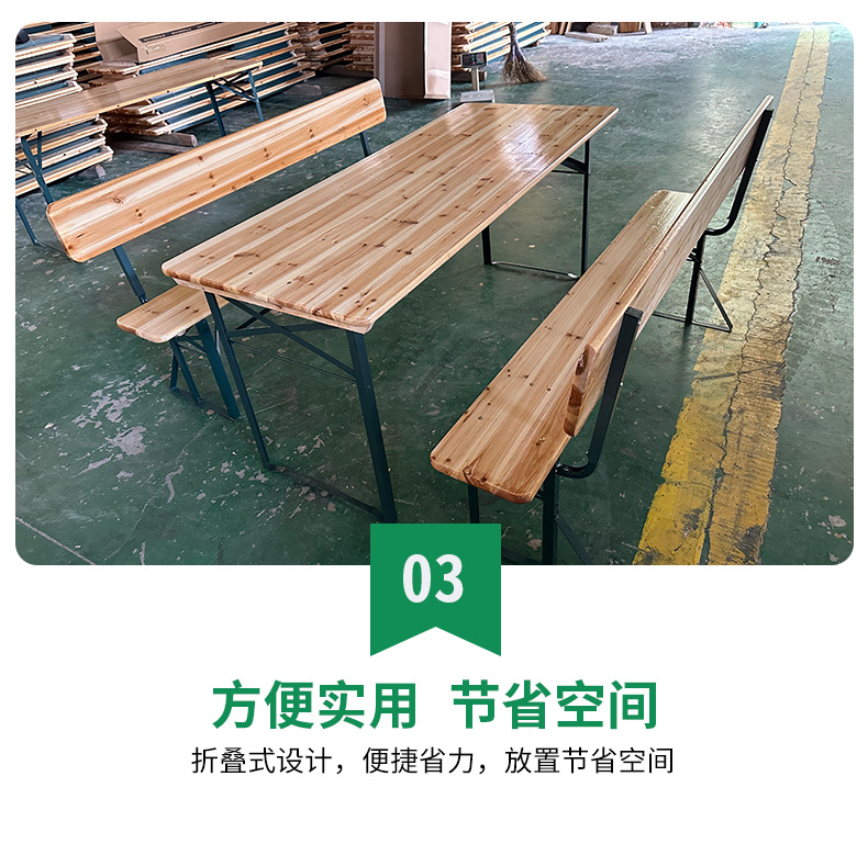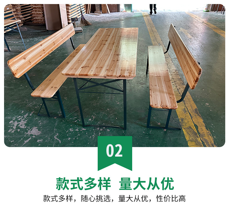 새로운 목재 야외 레저 맥주 테이블과 의자 구운 등받이가 있는 단단한 나무 맥주 테이블 축제 테이블 안뜰 긴 의자 바베큐 테이블스토어 가기