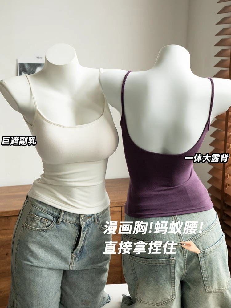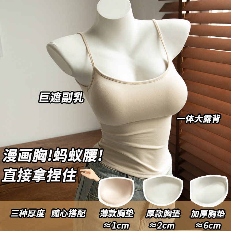 Kbra 코믹 가슴 확장형 아름다운 등 서스펜더 여름 슬림핏 가슴 패드 조끼 여성 작은 가슴이 더 커 보이는 베이스 레이어 탑