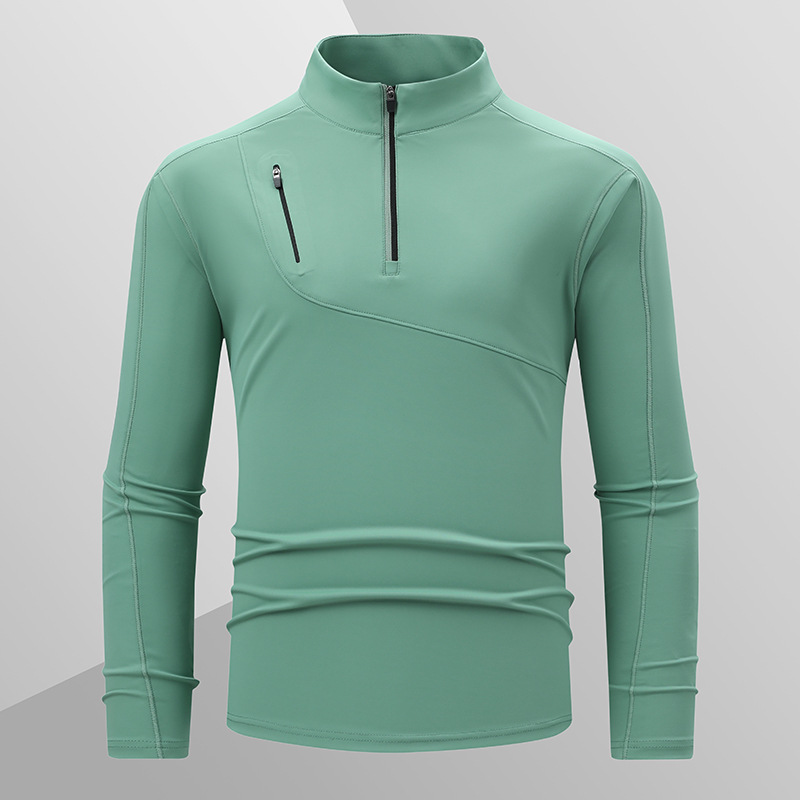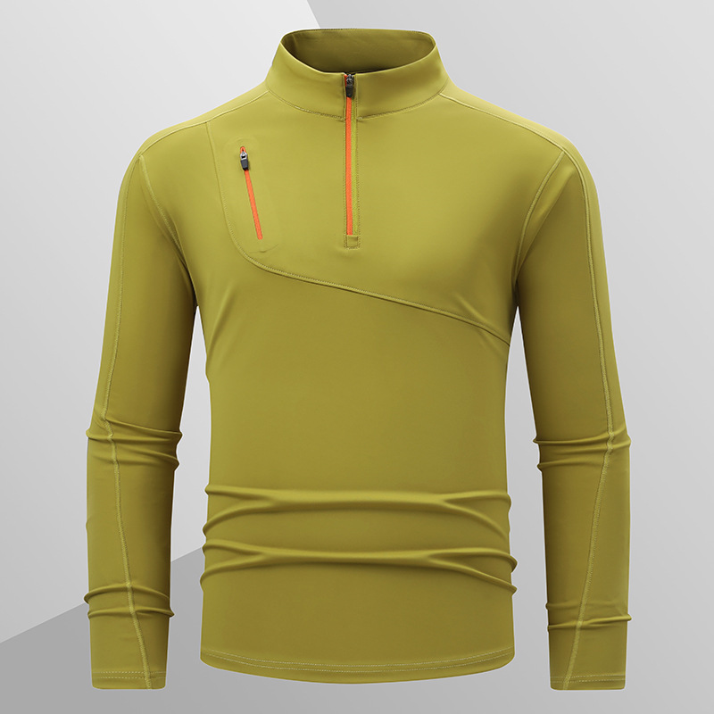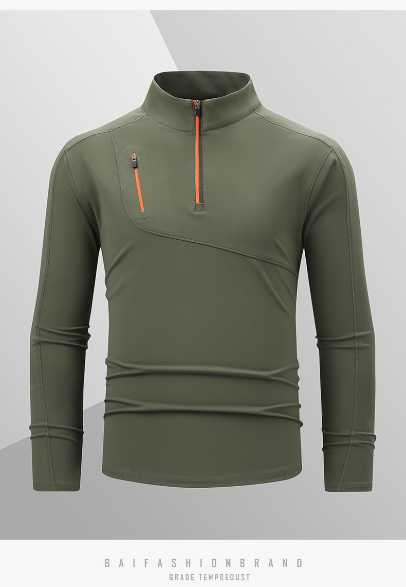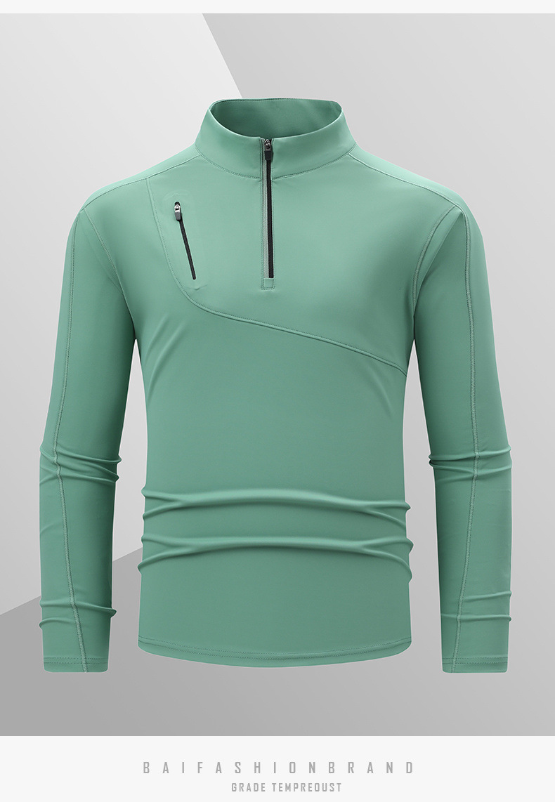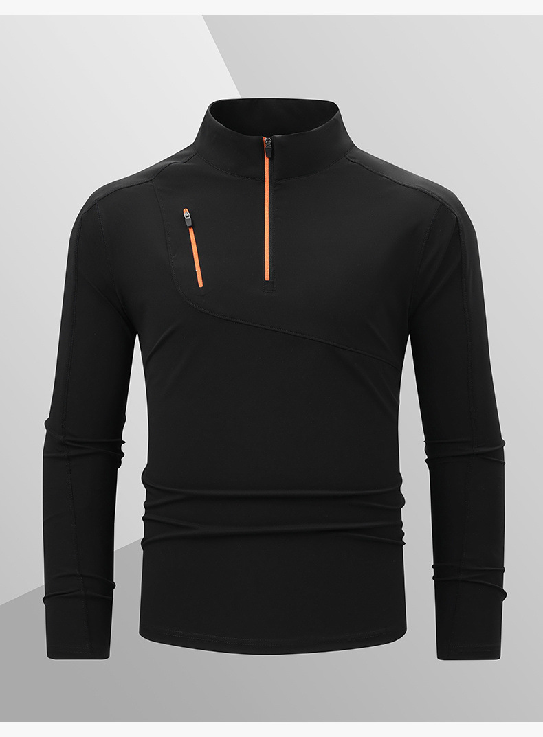 Niaojia 같은 스타일 야외 스포츠 속건성 남성용 긴팔 티셔츠 남성용 지퍼 스탠드 칼라 스웨트 셔츠 등산 속건성 기본 셔츠