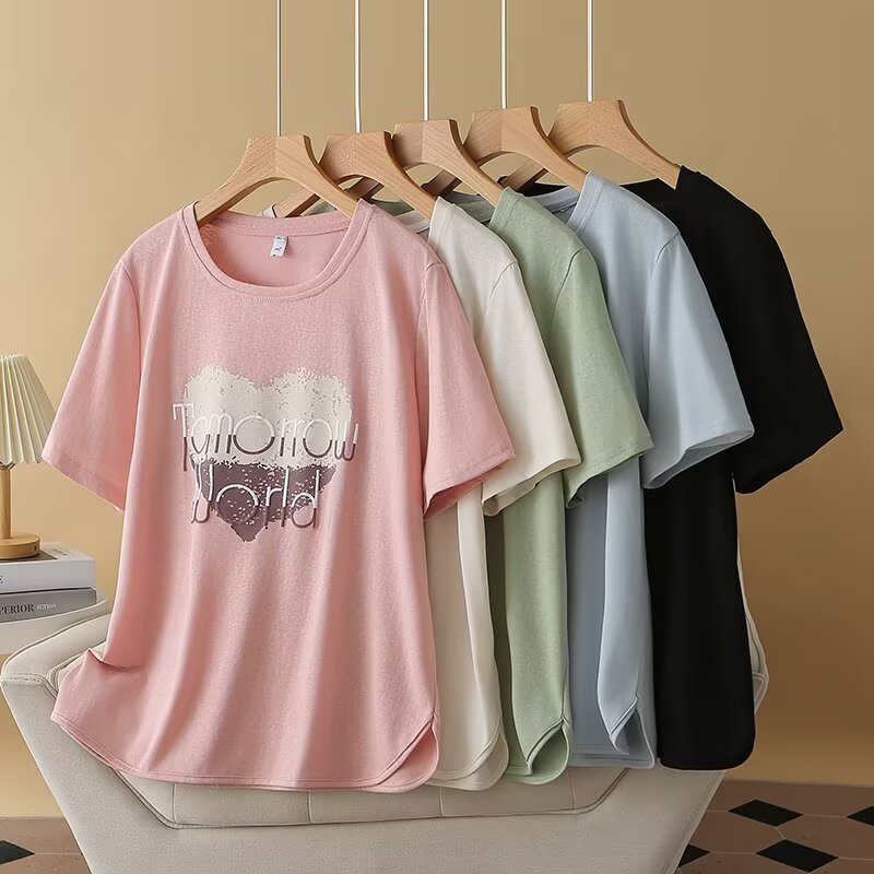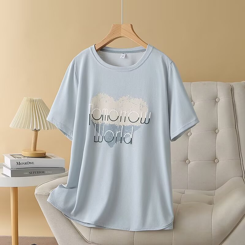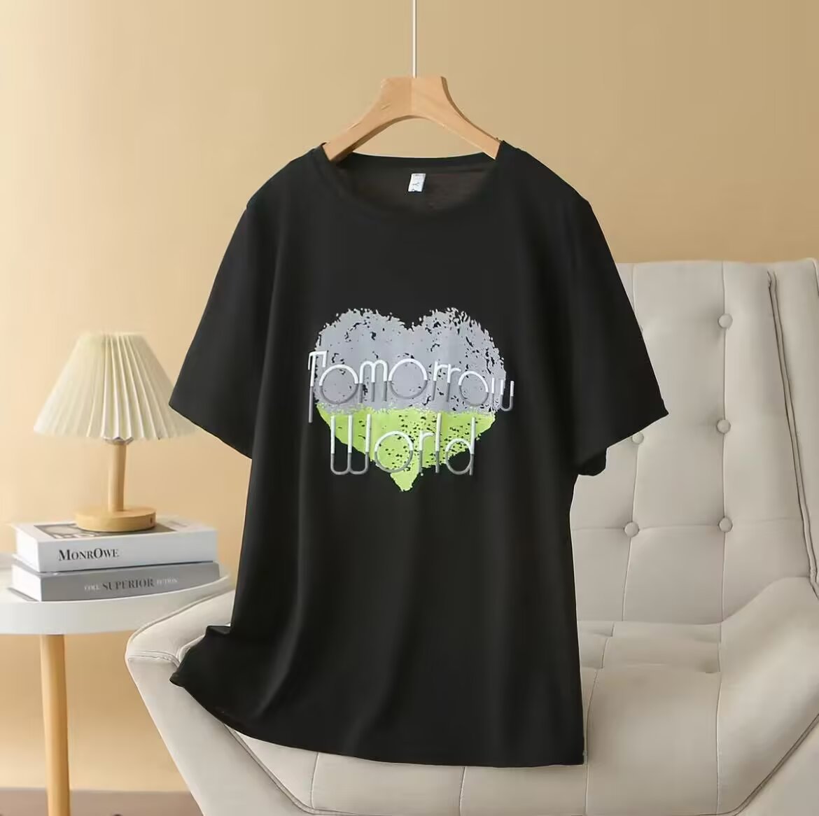 Fat MM 플러스 사이즈 2025 여름 새 여성 패션 캐주얼 인쇄 눈송이 면화 반팔 티셔츠 z552 2512