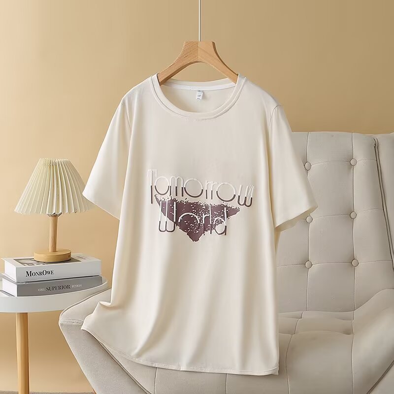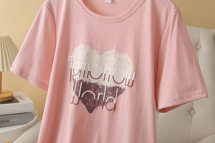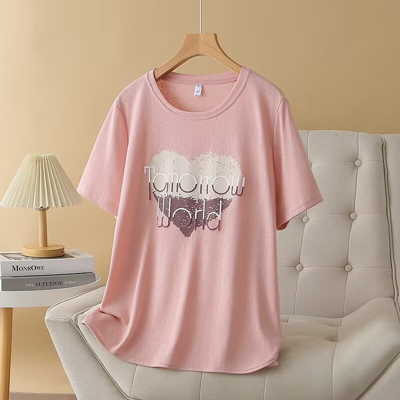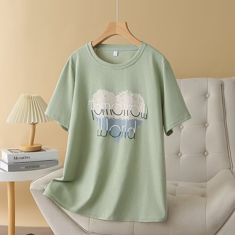 Fat MM 플러스 사이즈 2025 여름 새 여성 패션 캐주얼 인쇄 눈송이 면화 반팔 티셔츠 z552 2512스토어 가기