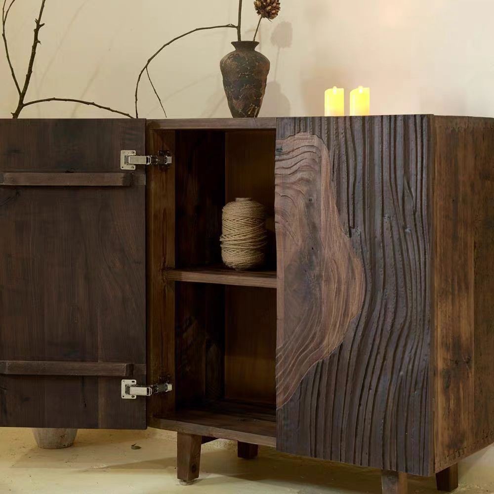 복고풍 오래된 느릅나무 찬장 단단한 나무 창조적 인 보관 캐비닛 와비사비 스타일 이중 도어 차 캐비닛 아트 입구 캐비닛스토어 가기