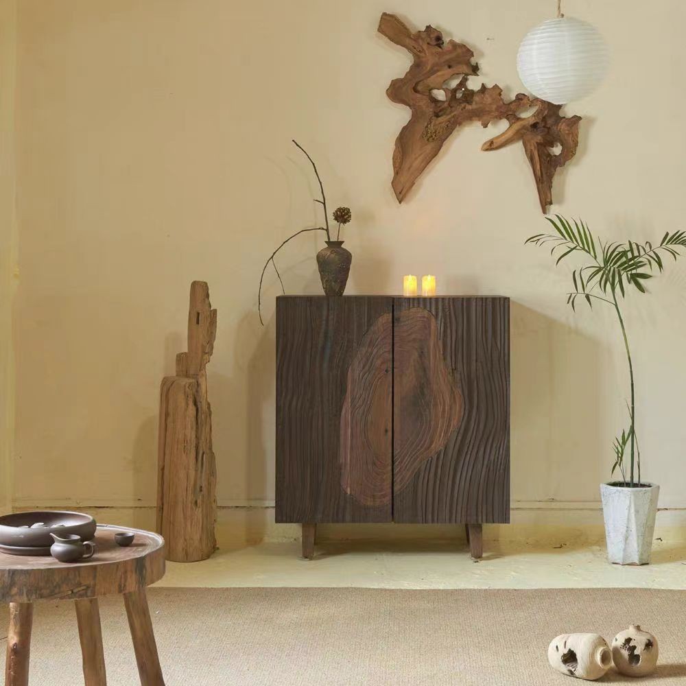 복고풍 오래된 느릅나무 찬장 단단한 나무 창조적 인 보관 캐비닛 와비사비 스타일 이중 도어 차 캐비닛 아트 입구 캐비닛