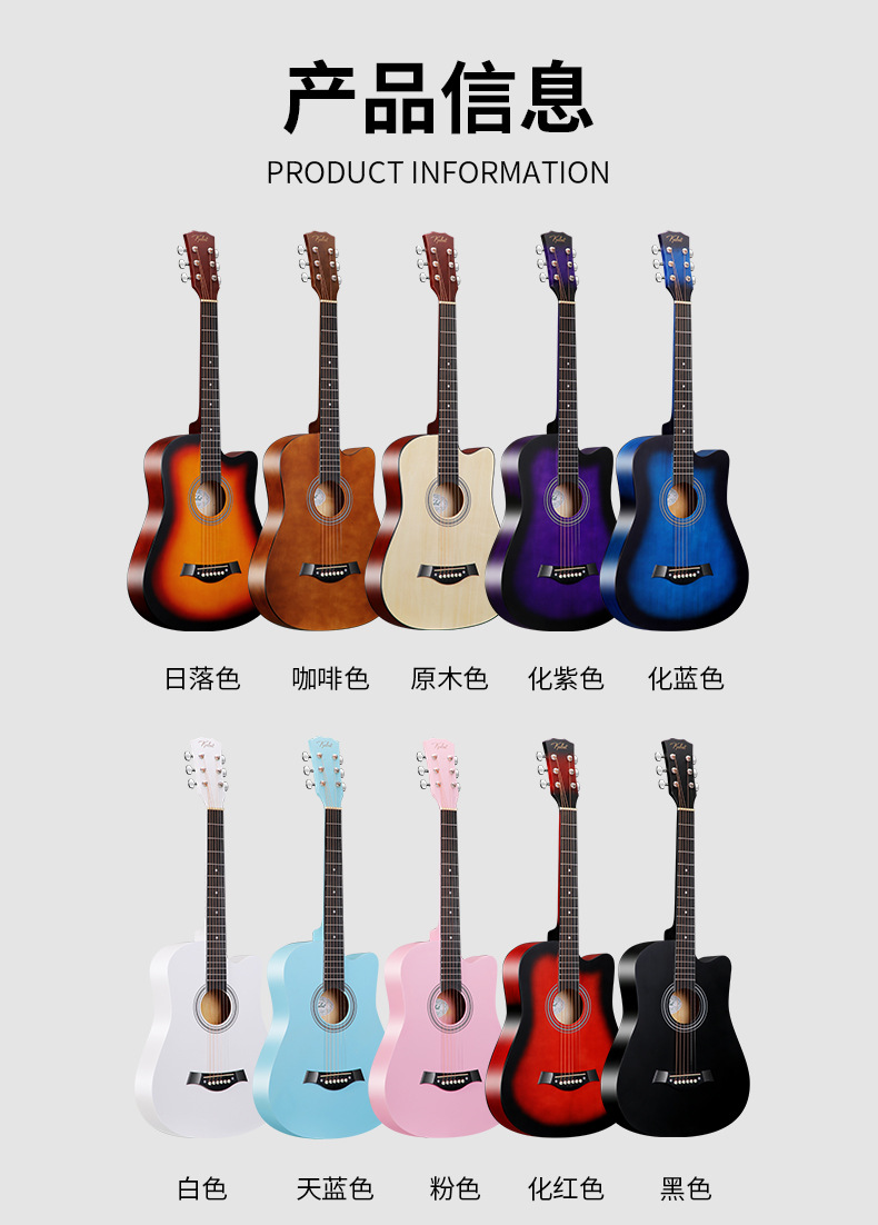 38inch 초보자를 위한 포크 연습 기타, 포크 기타, 탄소 섬유 기타 핸들, 초보자를 위한 기타, 입문용 악기 제조업체 공급