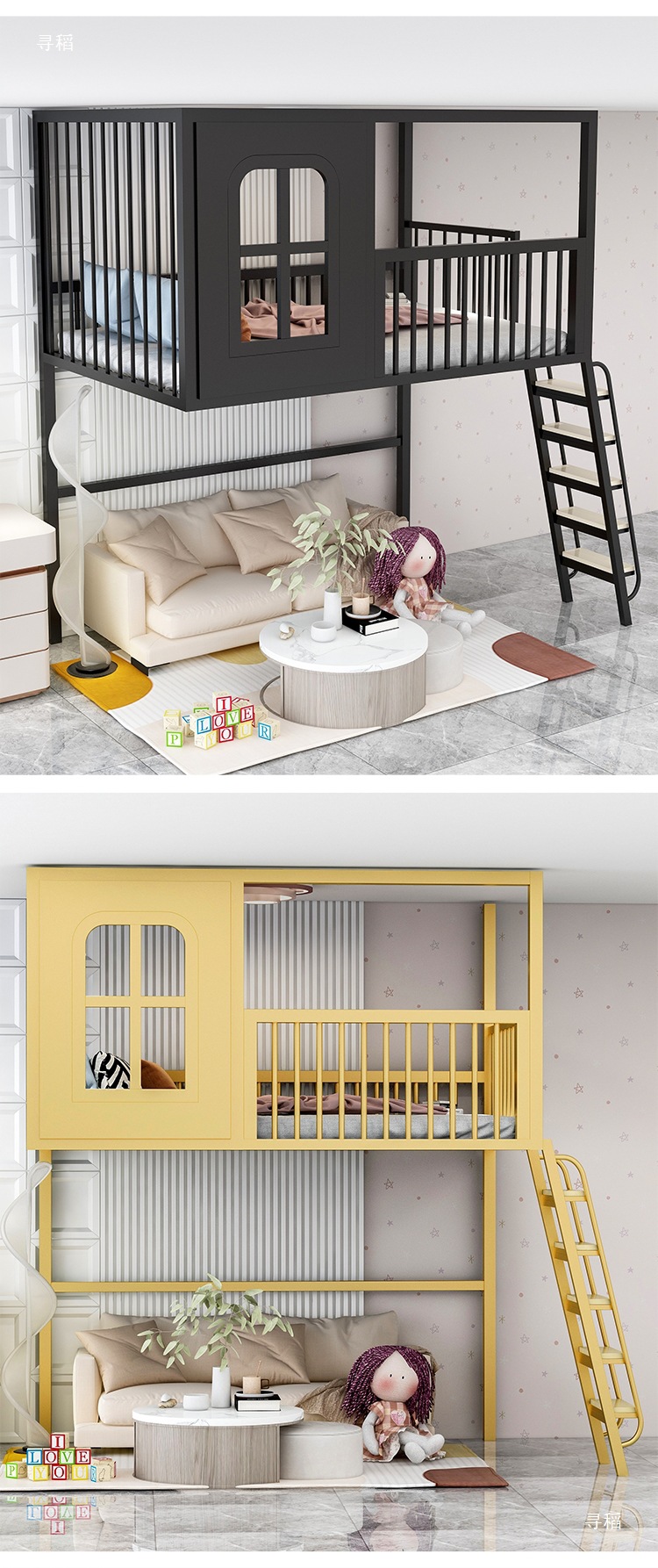 로프트 로프트 침대 작은 아파트 상단 침대 하단 빈 싱글 상단 어린이 하이 로우 트리 하우스 캐슬 침대 복층 2층스토어 가기