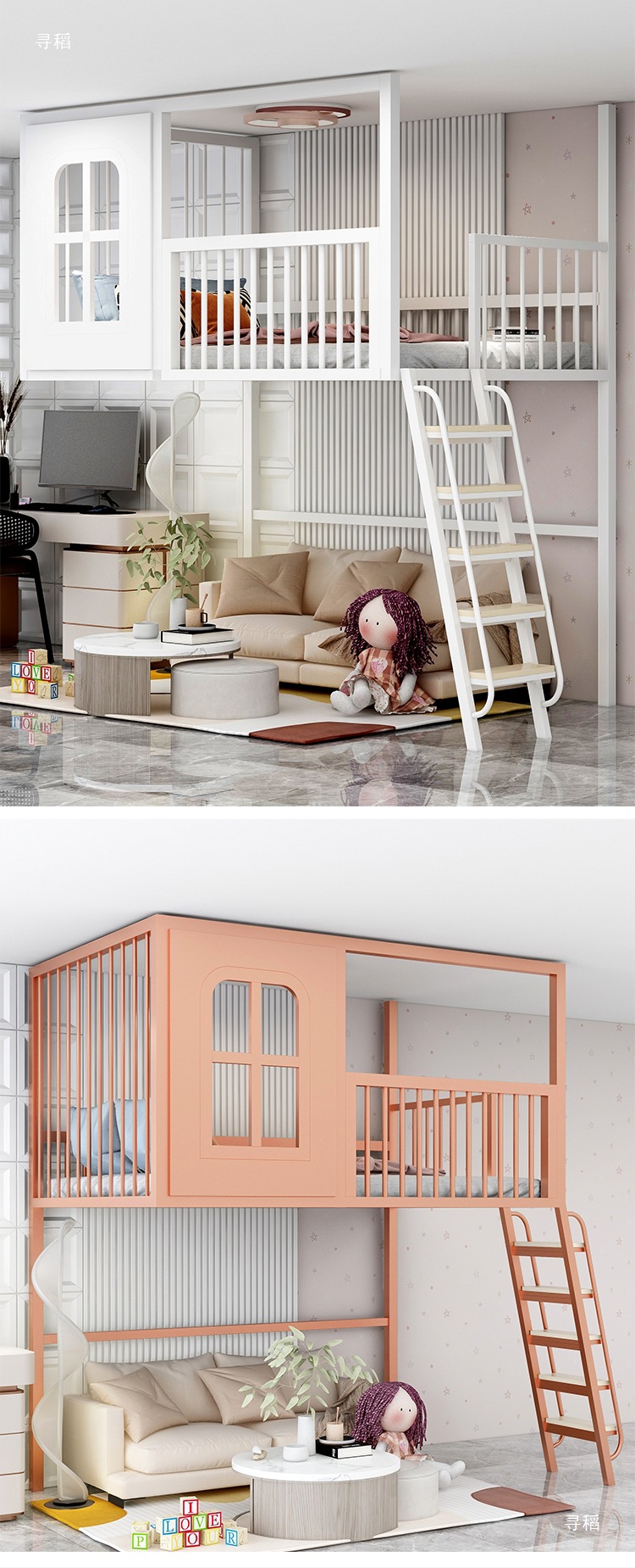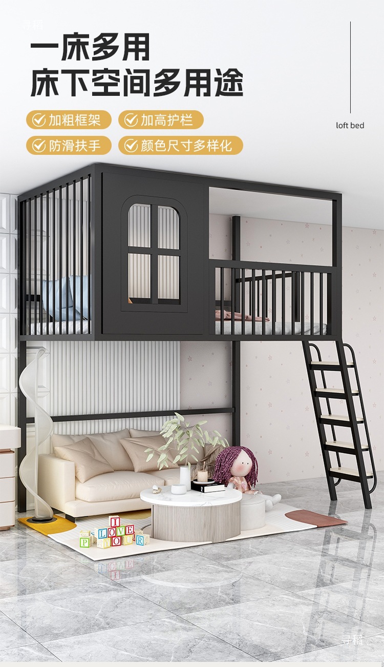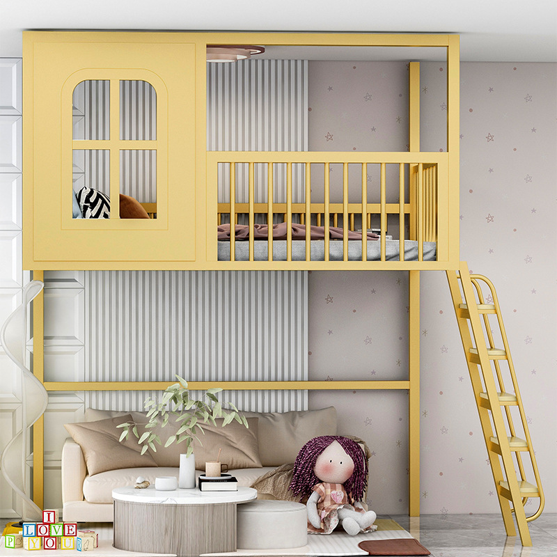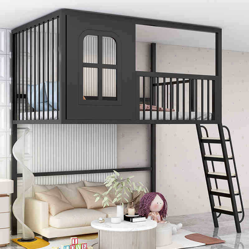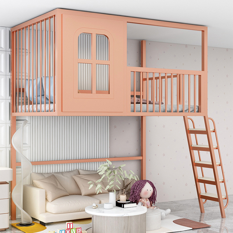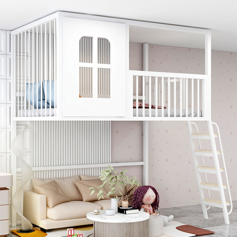 로프트 로프트 침대 작은 아파트 상단 침대 하단 빈 싱글 상단 어린이 하이 로우 트리 하우스 캐슬 침대 복층 2층