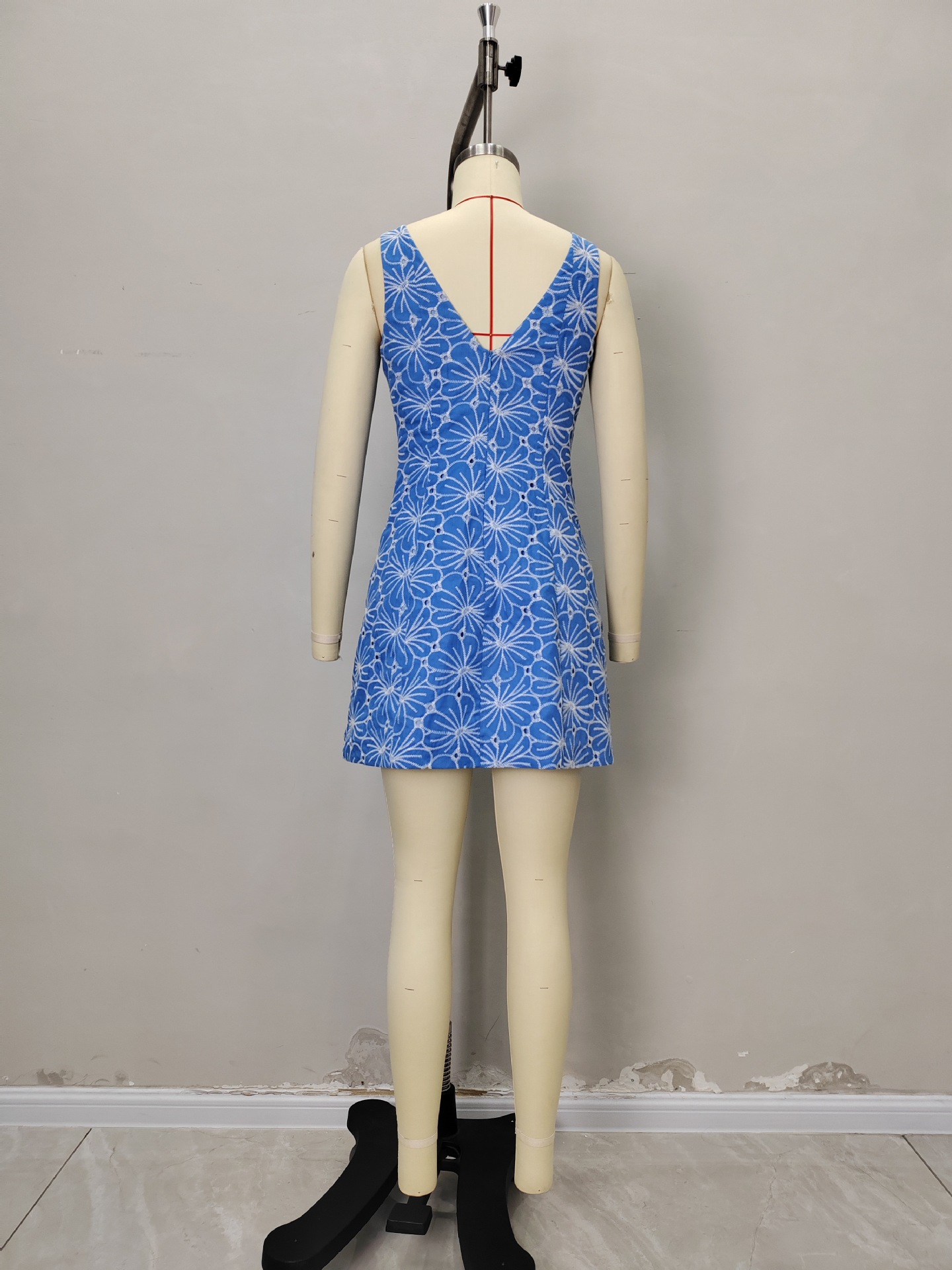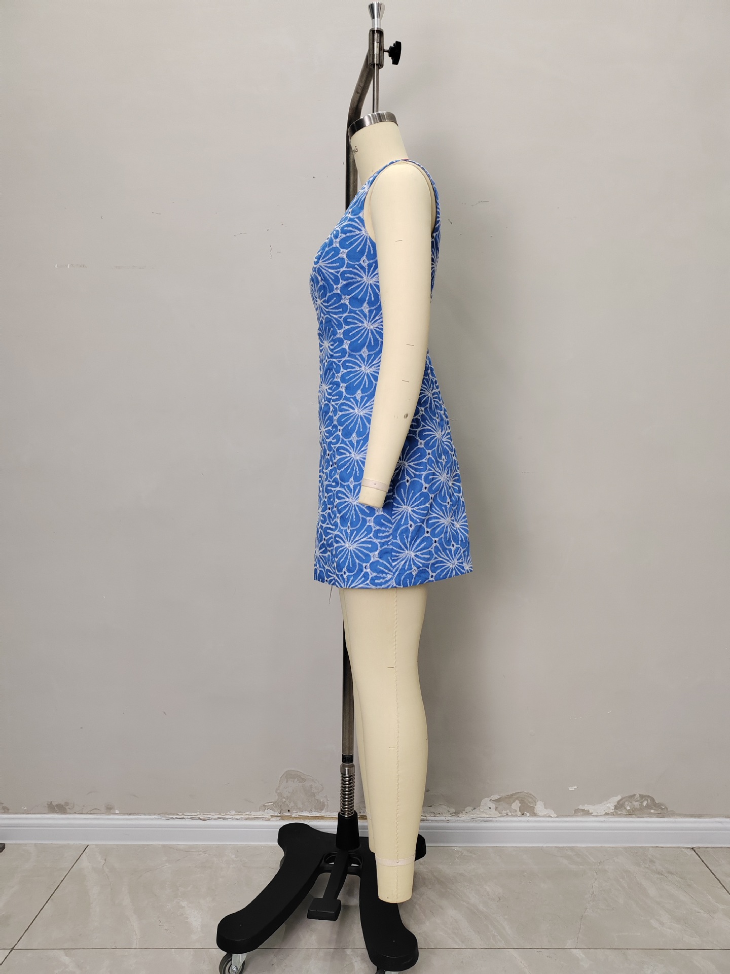 유럽과 미국의 국경 2025 여름 새로운 스타일 여성 민소매 자수 크루 넥 레트로 스타일 원피스 미니 스커트스토어 가기