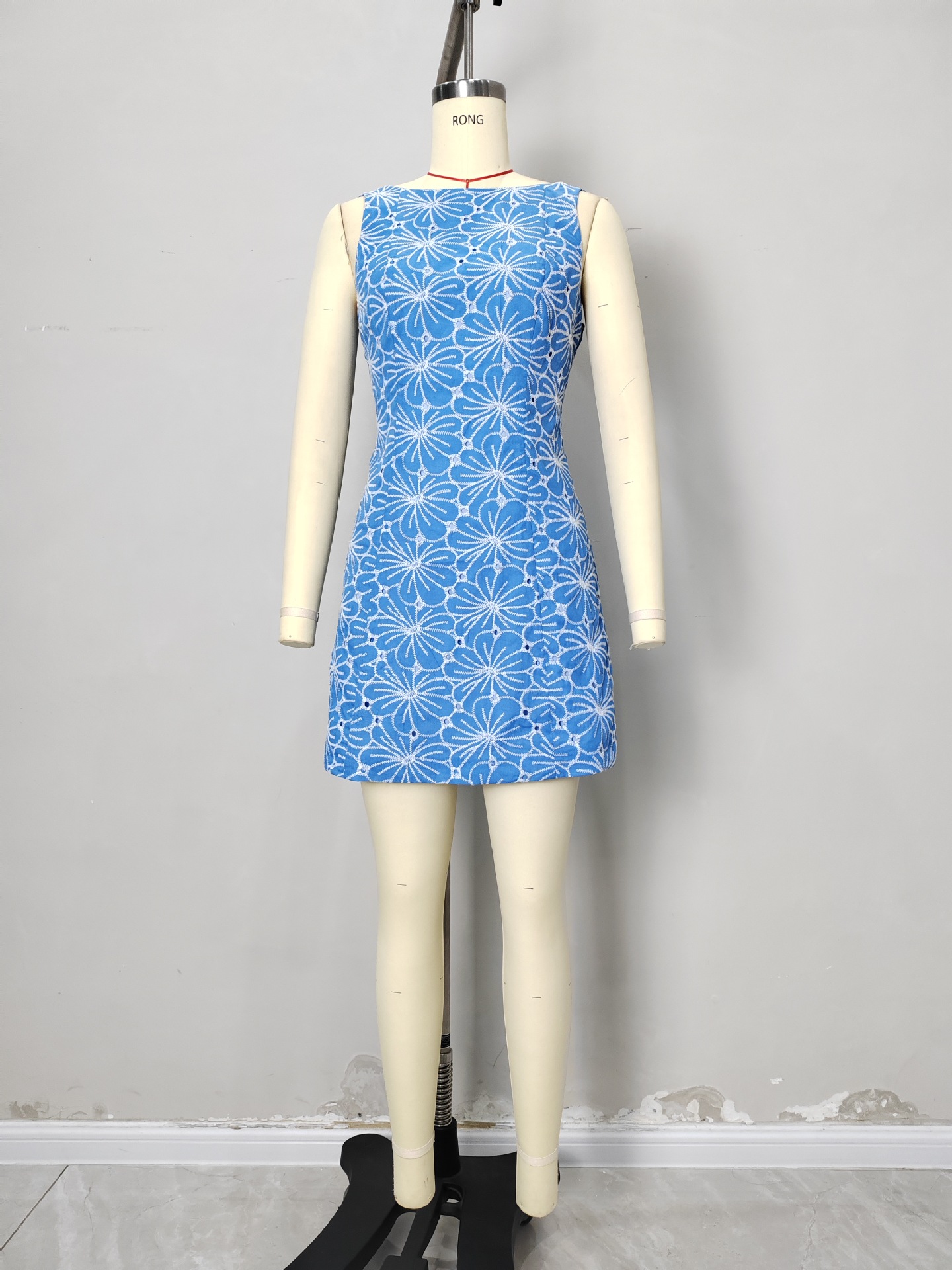 유럽과 미국의 국경 2025 여름 새로운 스타일 여성 민소매 자수 크루 넥 레트로 스타일 원피스 미니 스커트