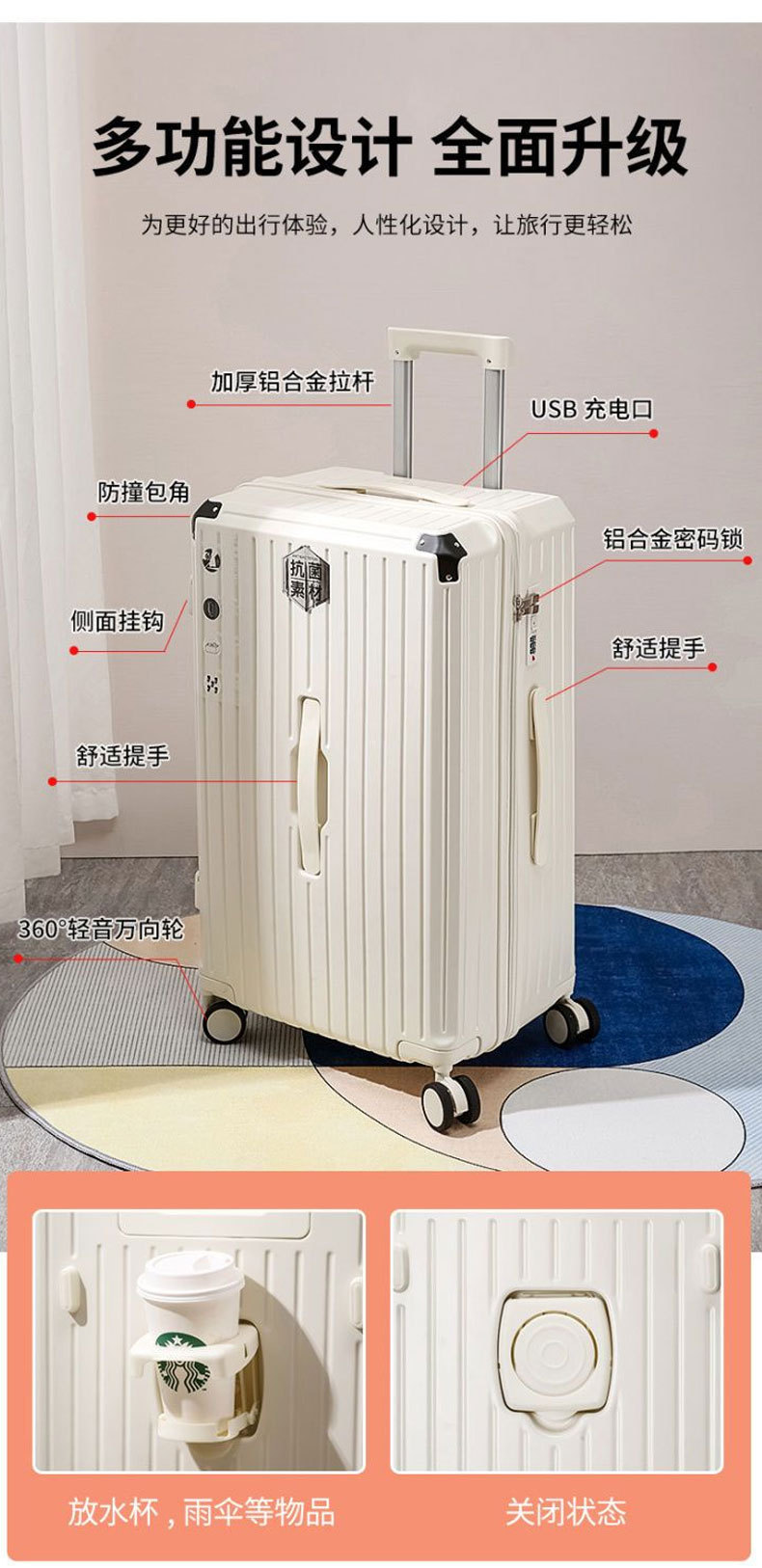 범용 휠이 달린 여행가방, 학생용 비밀번호 상자, 37포인트 26인치 2단 지퍼 대용량 여행가방스토어 가기