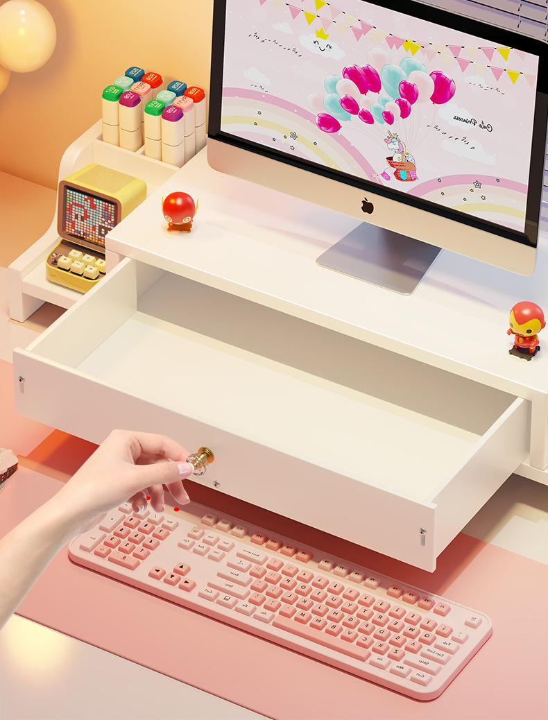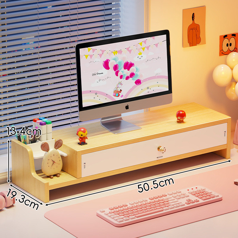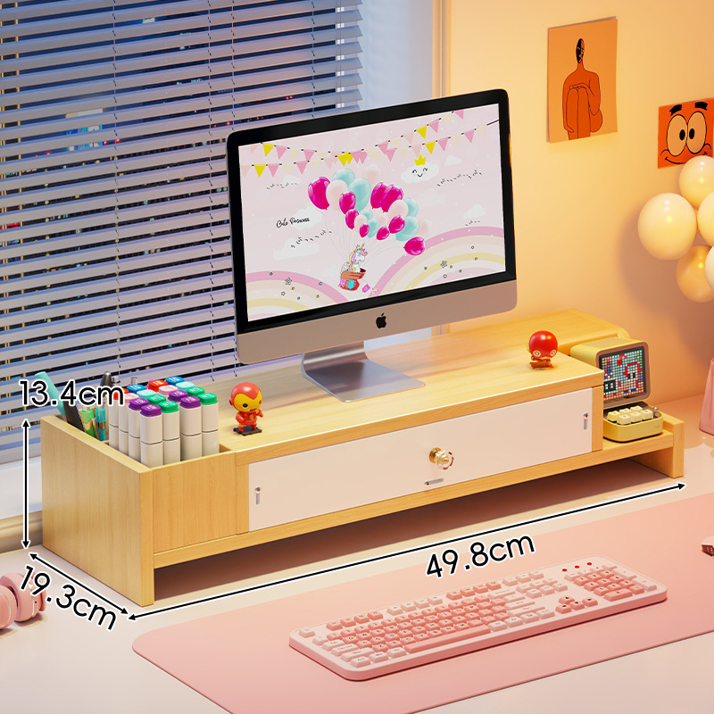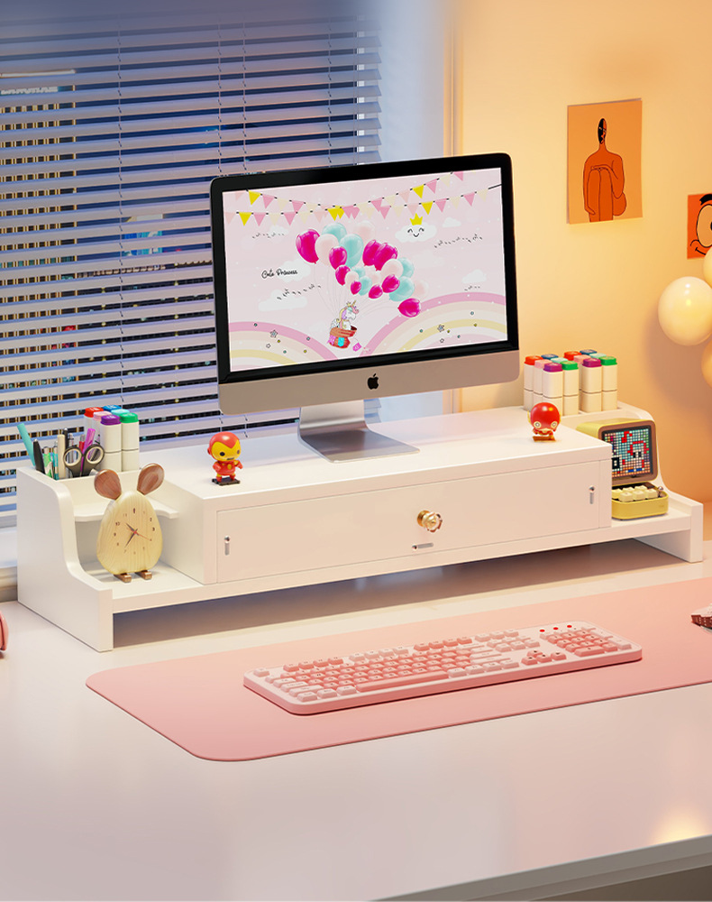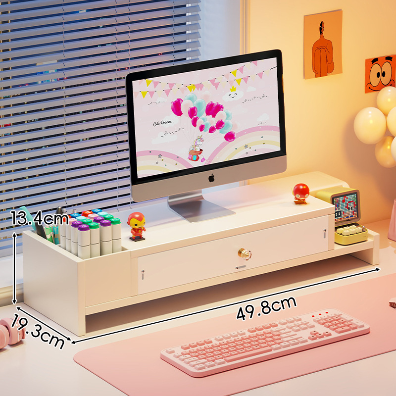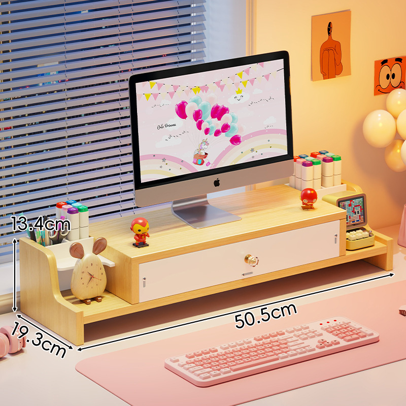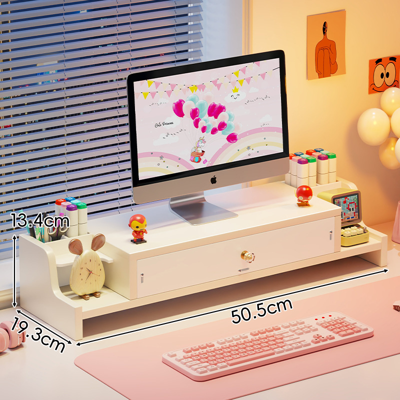 서랍 데스크톱 모니터 지원 랙 여성 스테이션 아티팩트가있는 컴퓨터 높은 랙 오피스 데스크탑 스토리지 랙스토어 가기