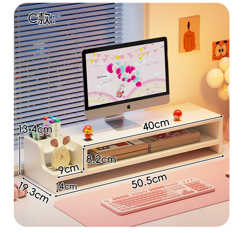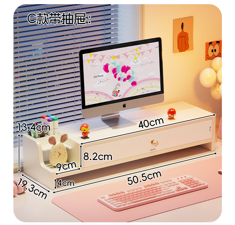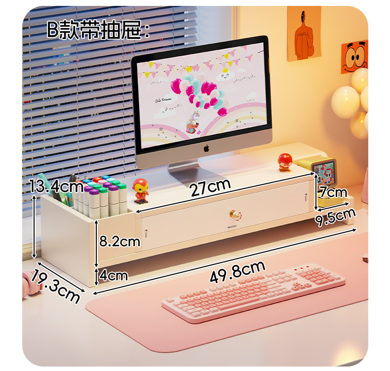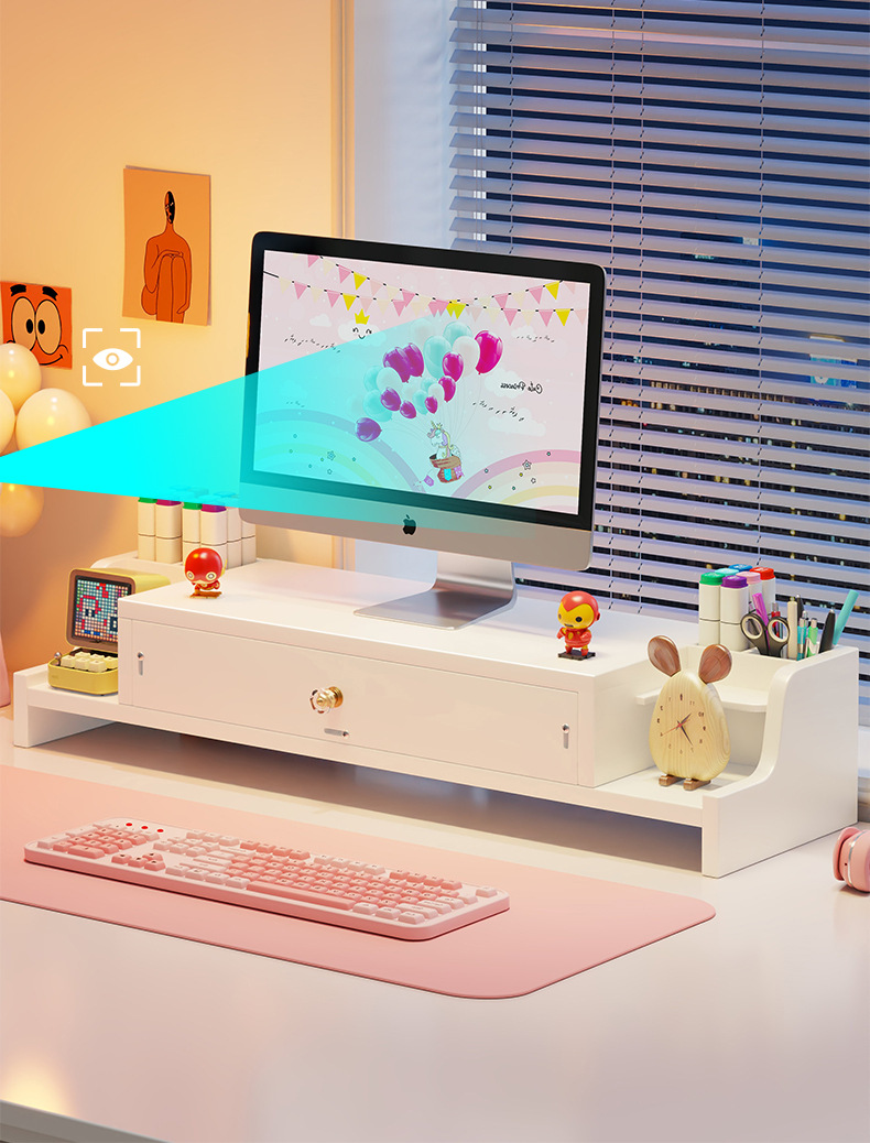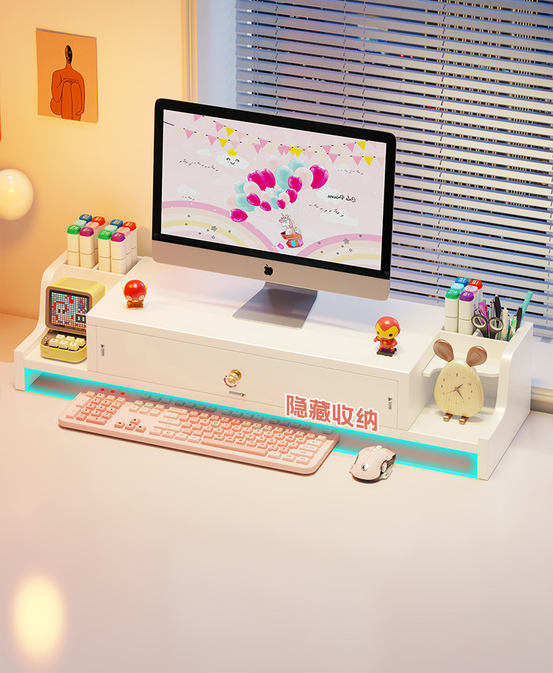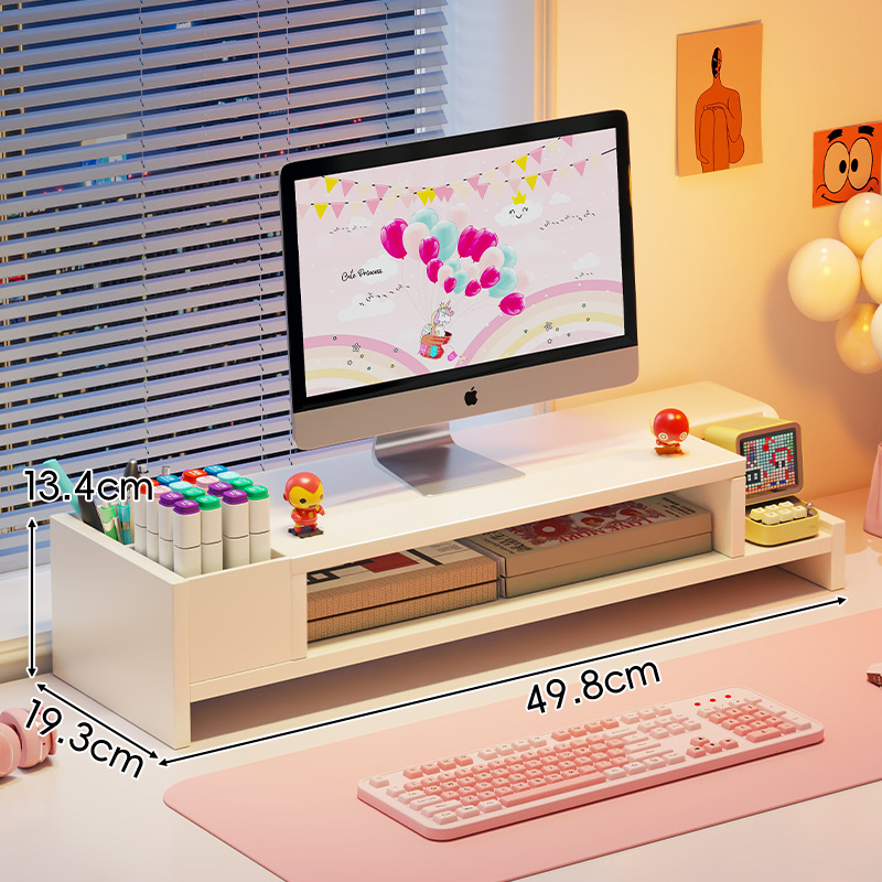 서랍 데스크톱 모니터 지원 랙 여성 스테이션 아티팩트가있는 컴퓨터 높은 랙 오피스 데스크탑 스토리지 랙스토어 가기