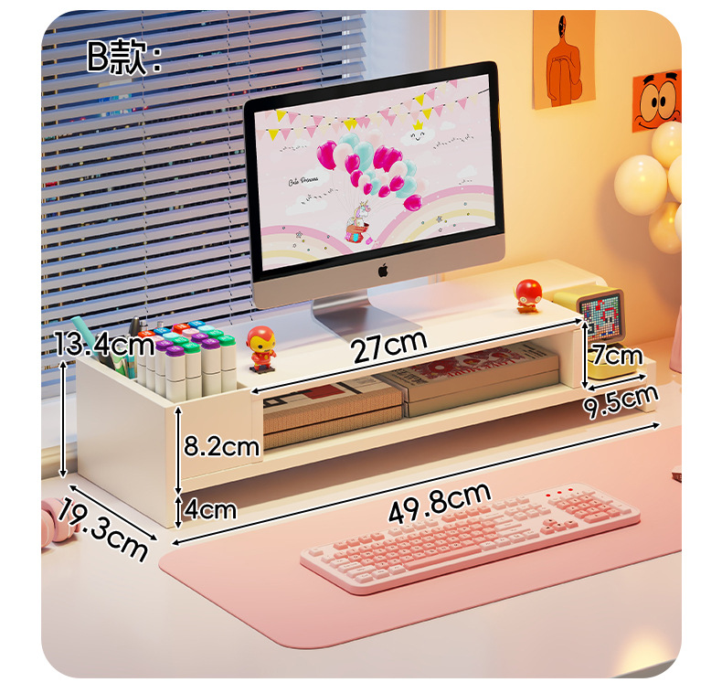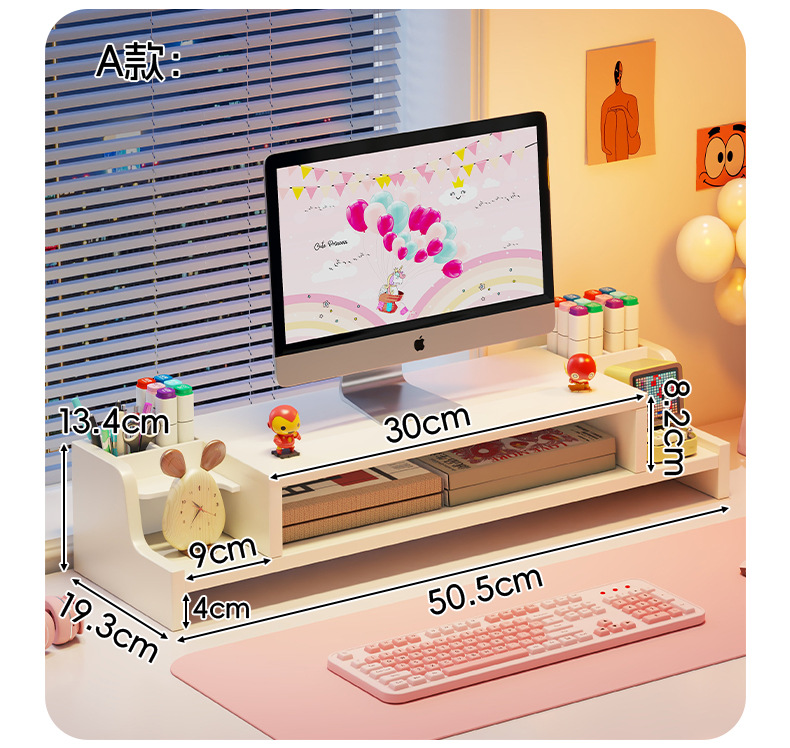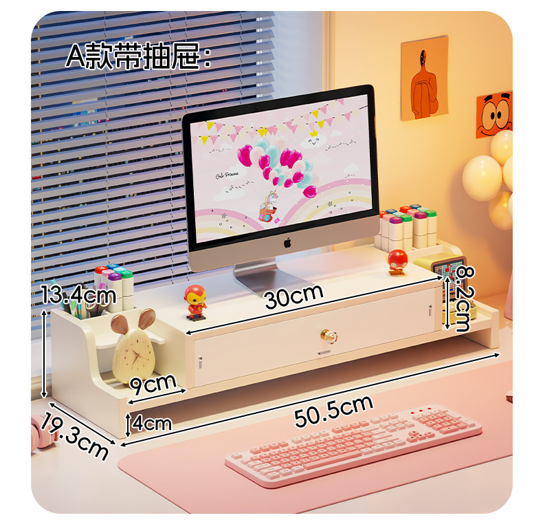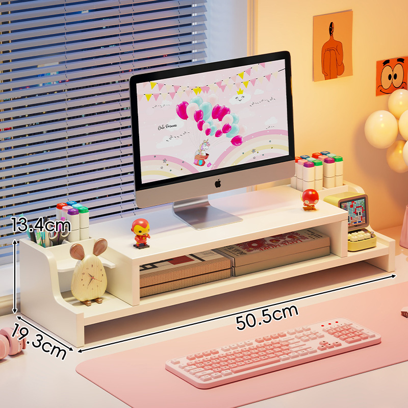 서랍 데스크톱 모니터 지원 랙 여성 스테이션 아티팩트가있는 컴퓨터 높은 랙 오피스 데스크탑 스토리지 랙