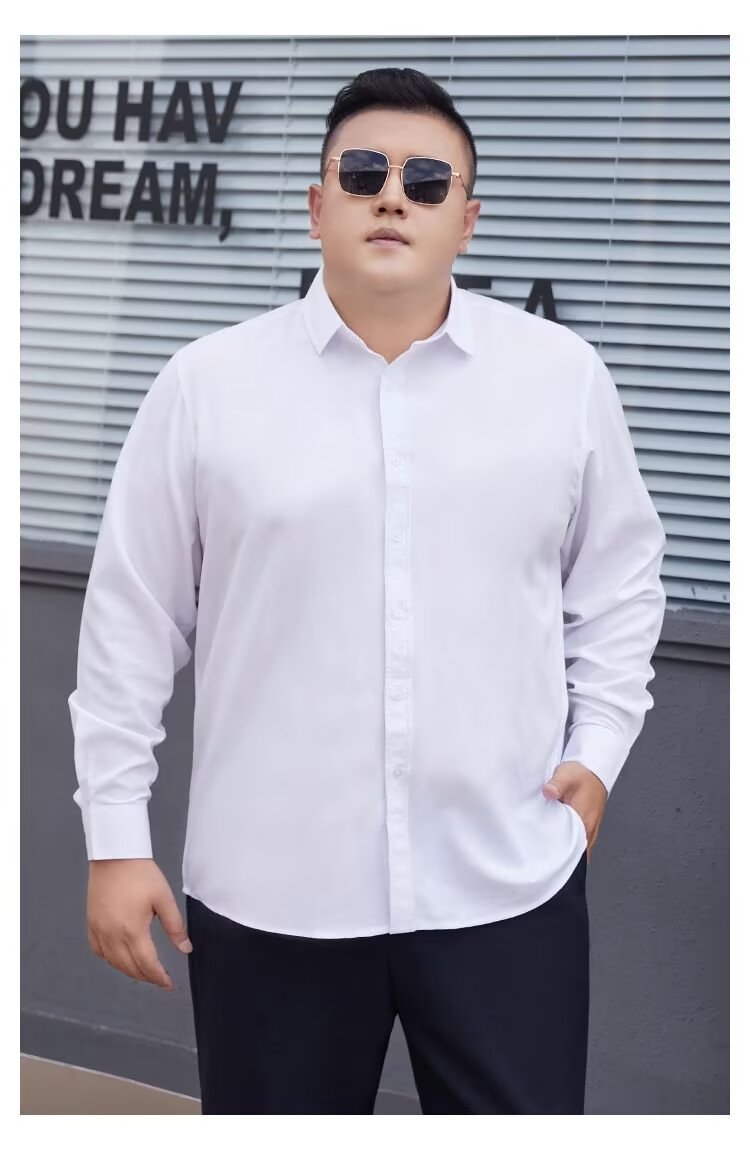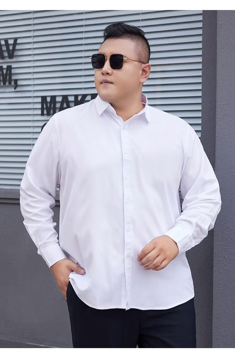 플러스 사이즈 흰색 긴팔 셔츠 플러스 사이즈 남성 봄 여름 비즈니스 정장 무다림 솔리드 컬러 루즈 셔츠스토어 가기