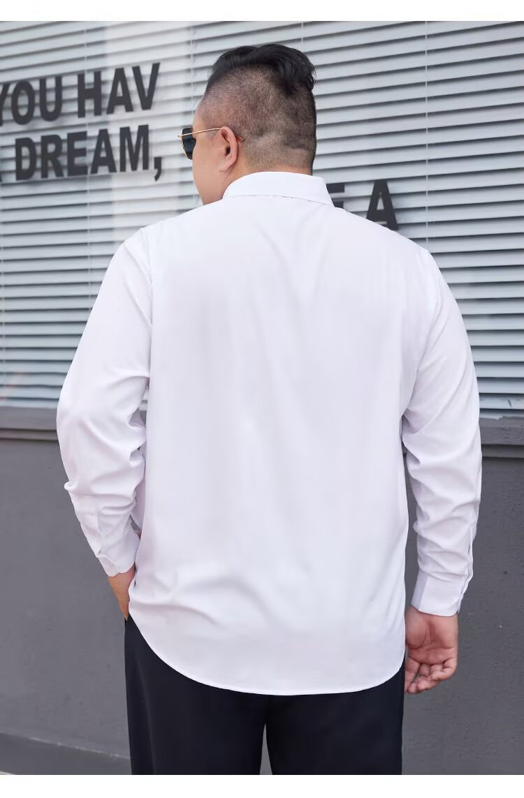 플러스 사이즈 흰색 긴팔 셔츠 플러스 사이즈 남성 봄 여름 비즈니스 정장 무다림 솔리드 컬러 루즈 셔츠
