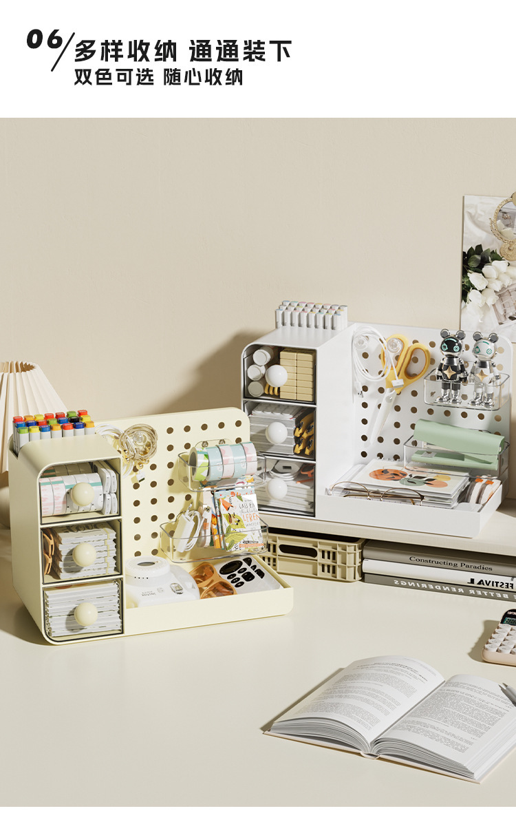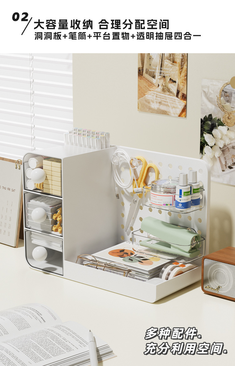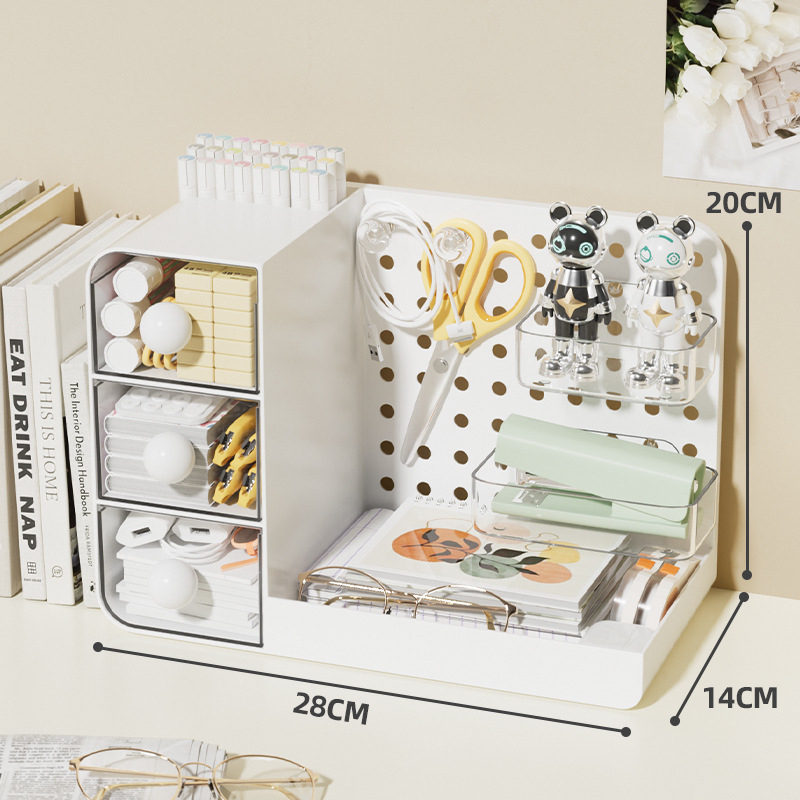 3-in-1 데스크탑 홀 보드 보관함 서랍형 보관함 사무실 책상 워크스테이션 기숙사 잔해물 정리함스토어 가기