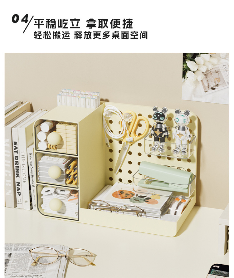 3-in-1 데스크탑 홀 보드 보관함 서랍형 보관함 사무실 책상 워크스테이션 기숙사 잔해물 정리함