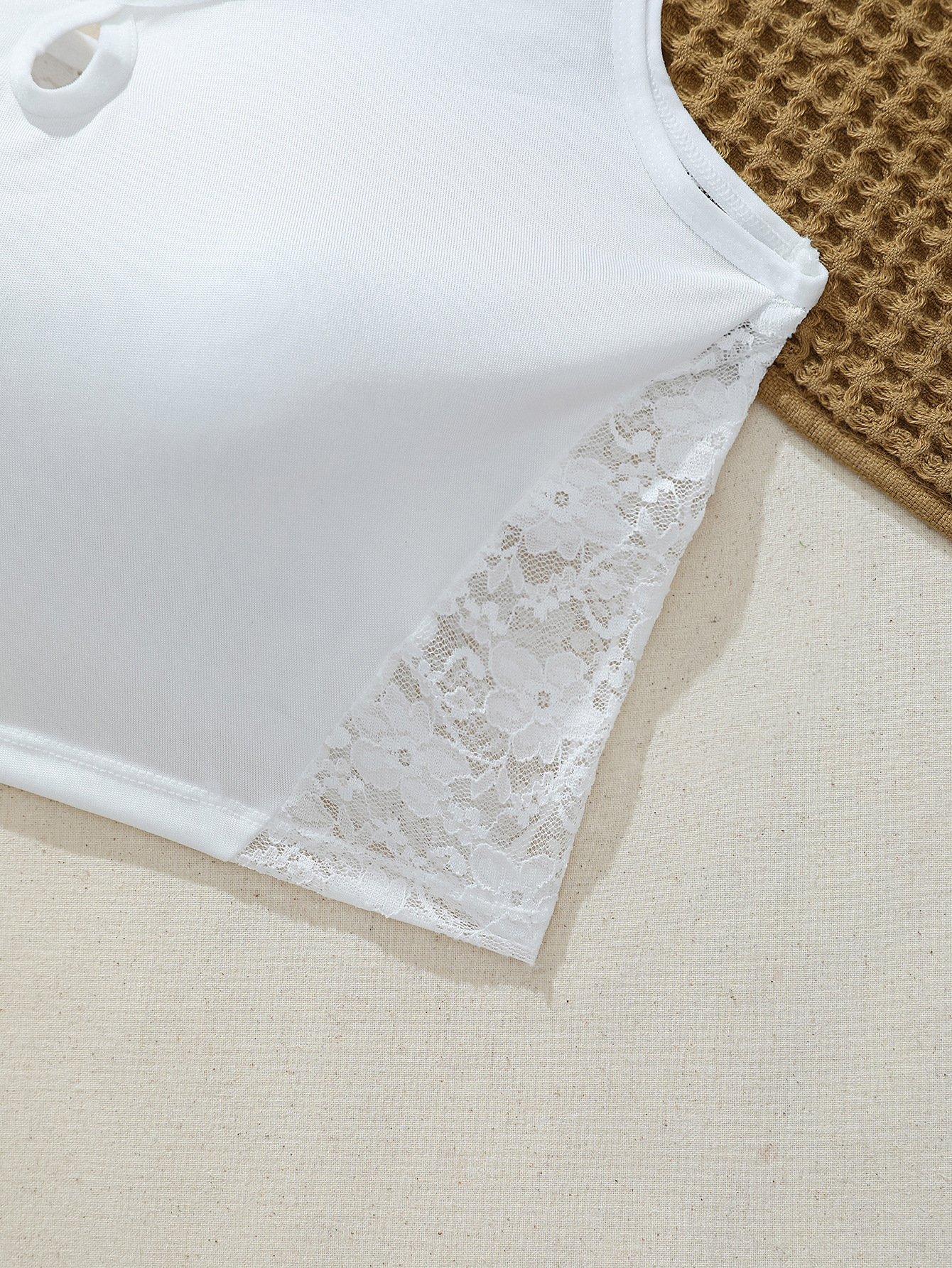 유럽과 미국의 다재다능한 조끼 여자 외부 내부 솔리드 컬러 레이스 인쇄 여성의 간단한 몸 모양 외부 흰색 아름다운 등을 입고