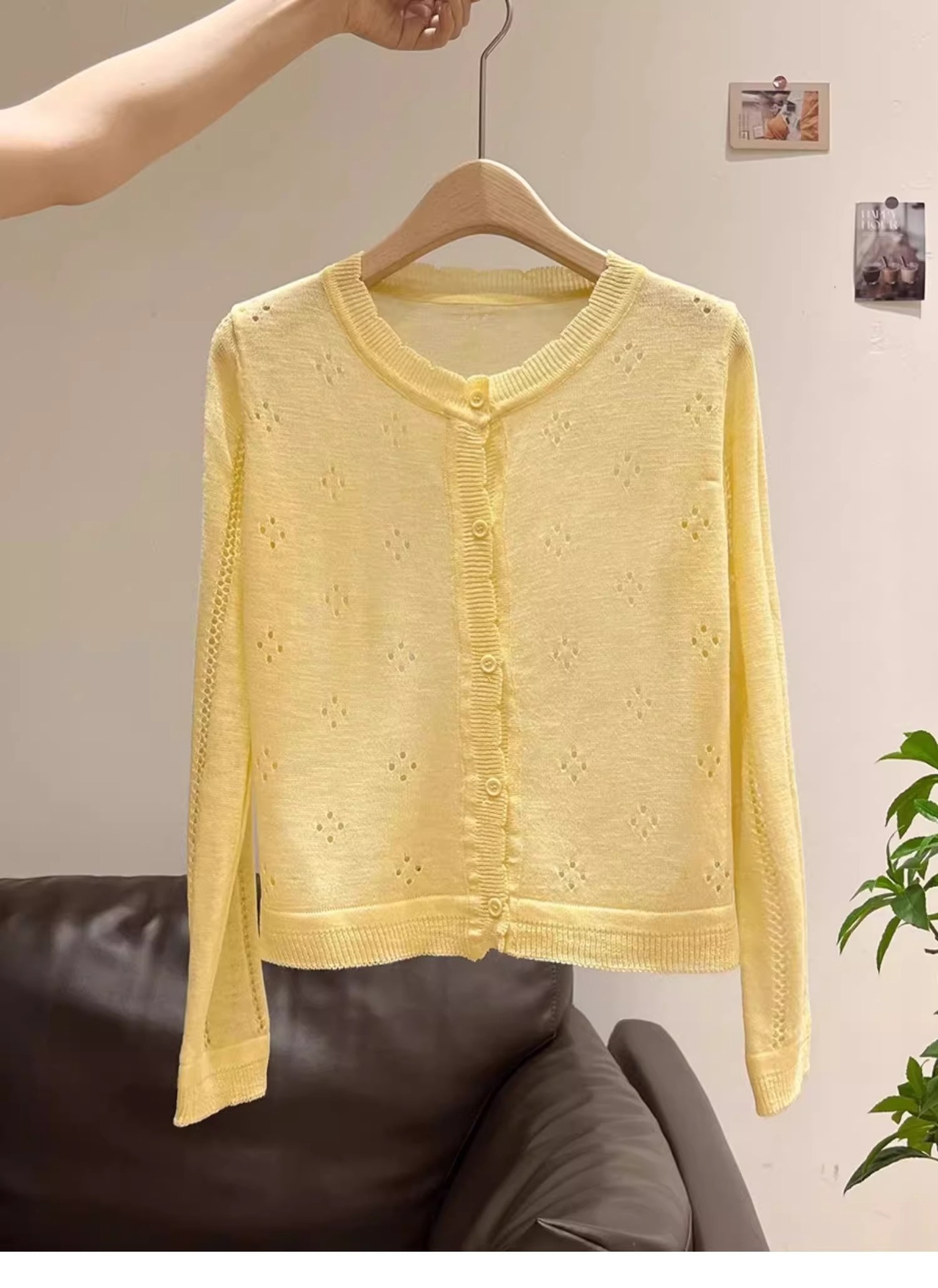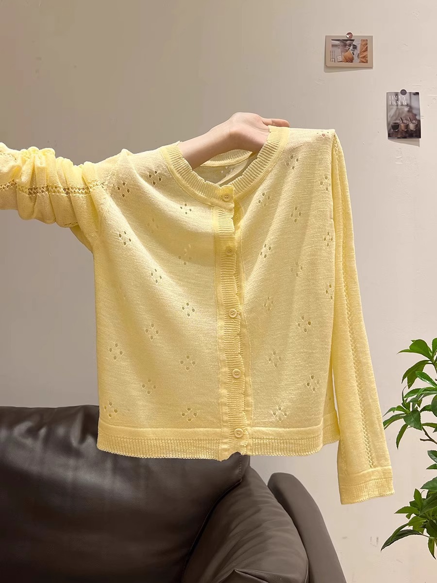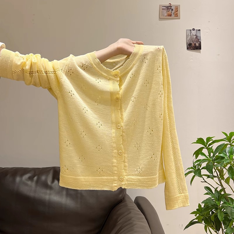 한국 스타일 아이스 실크 자외선 차단 디자인의 여성용 얇은 긴팔 니트 가디건, 봄 아우터 숄/블라우스/탑