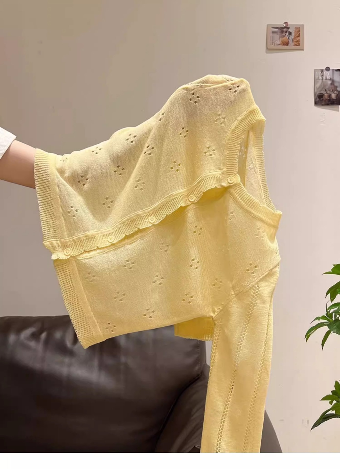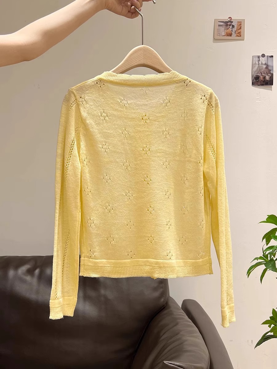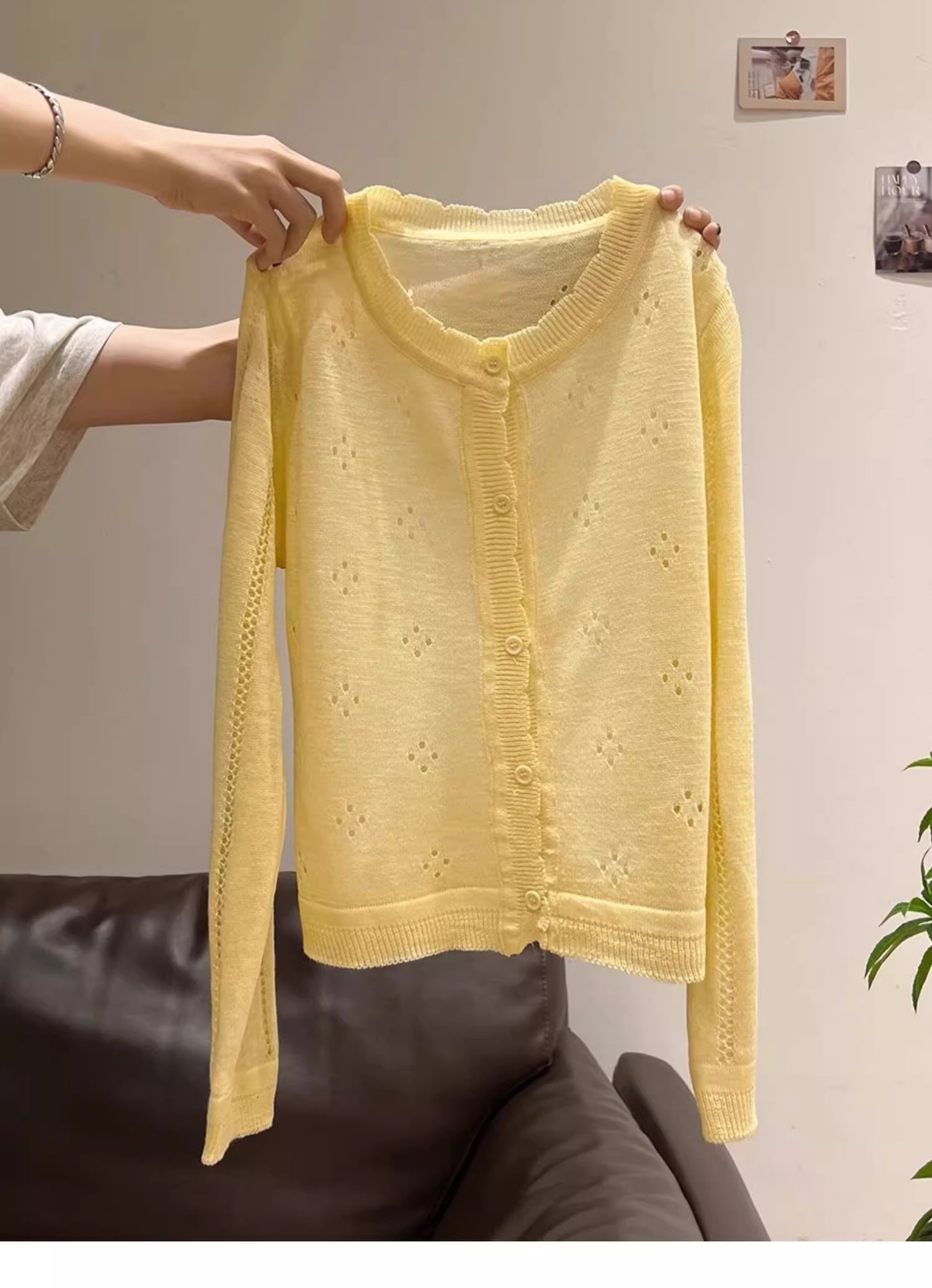 한국 스타일 아이스 실크 자외선 차단 디자인의 여성용 얇은 긴팔 니트 가디건, 봄 아우터 숄/블라우스/탑