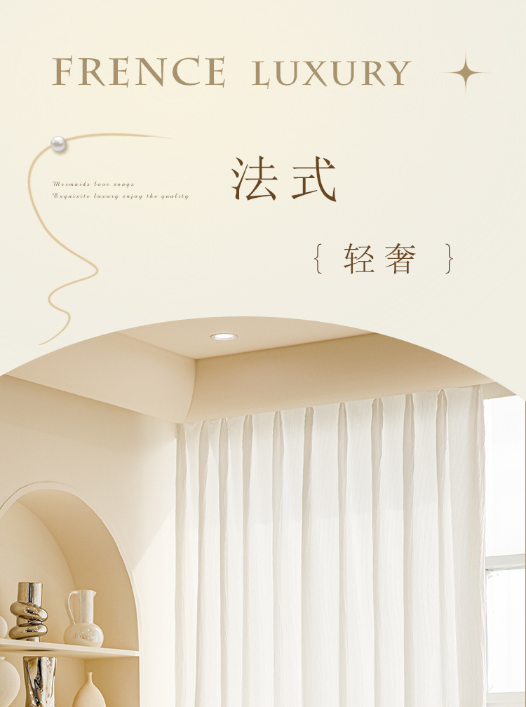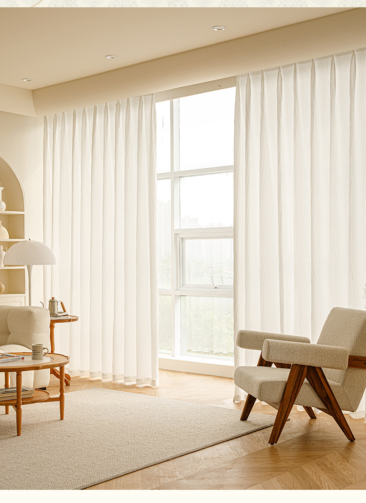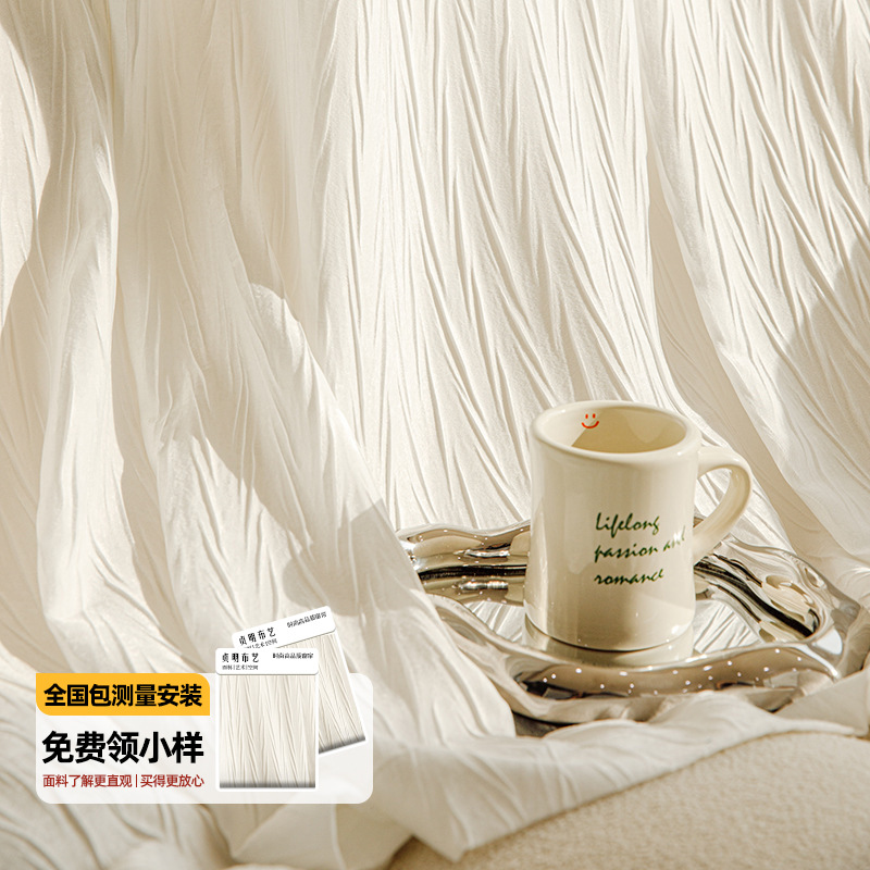 2025 신형 스왈로우테일 거즈 커튼 흰색 커튼은 빛을 투과하지 않고 프렌치 크림 컬러의 블라인드 커튼이 빛을 차단합니다.스토어 가기