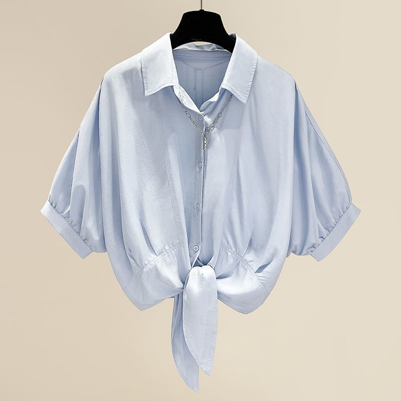 여름 여성용 검은색 반팔 셔츠, 허리가 잘록한 흰색 쉬폰 셔츠, 새로운 스타일의 틈새 배트 슬리브 쇼트 탑스토어 가기