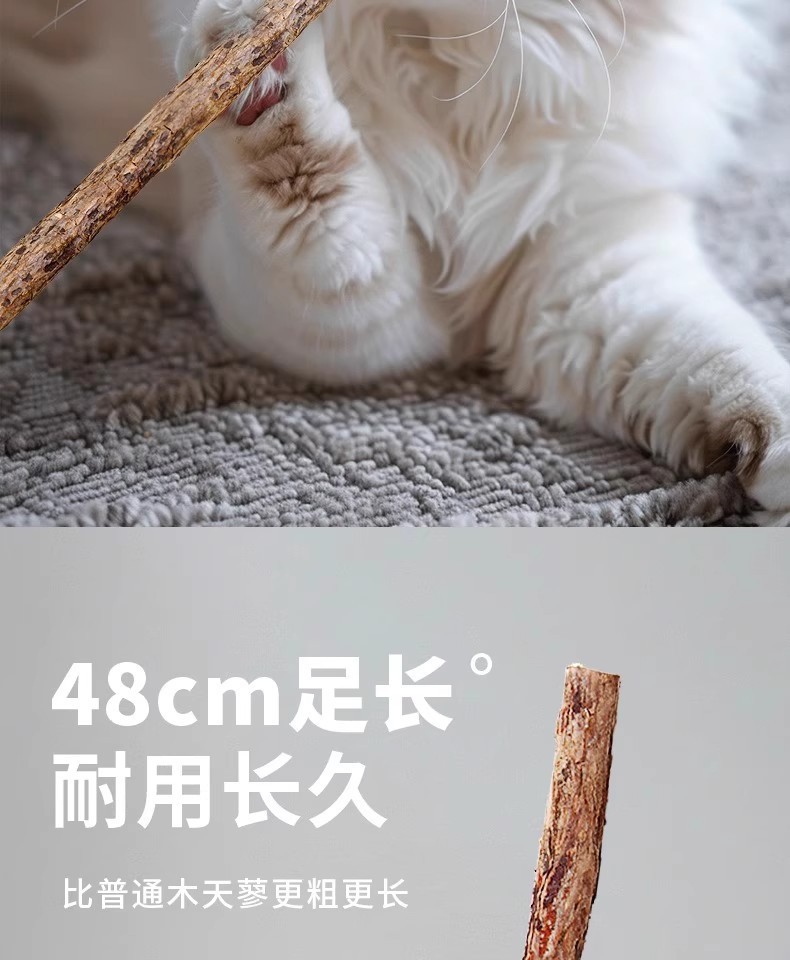 초장기 48cm 긴 막대 나무 치아 연삭 스틱, 자기 자극 및 지루함 완화, 치아 연삭 고양이 스틱 장난감, 고양이 민트 고양이 간식스토어 가기