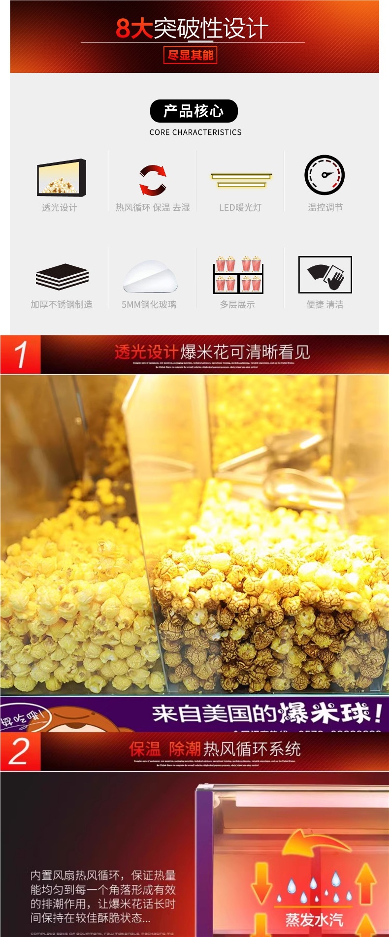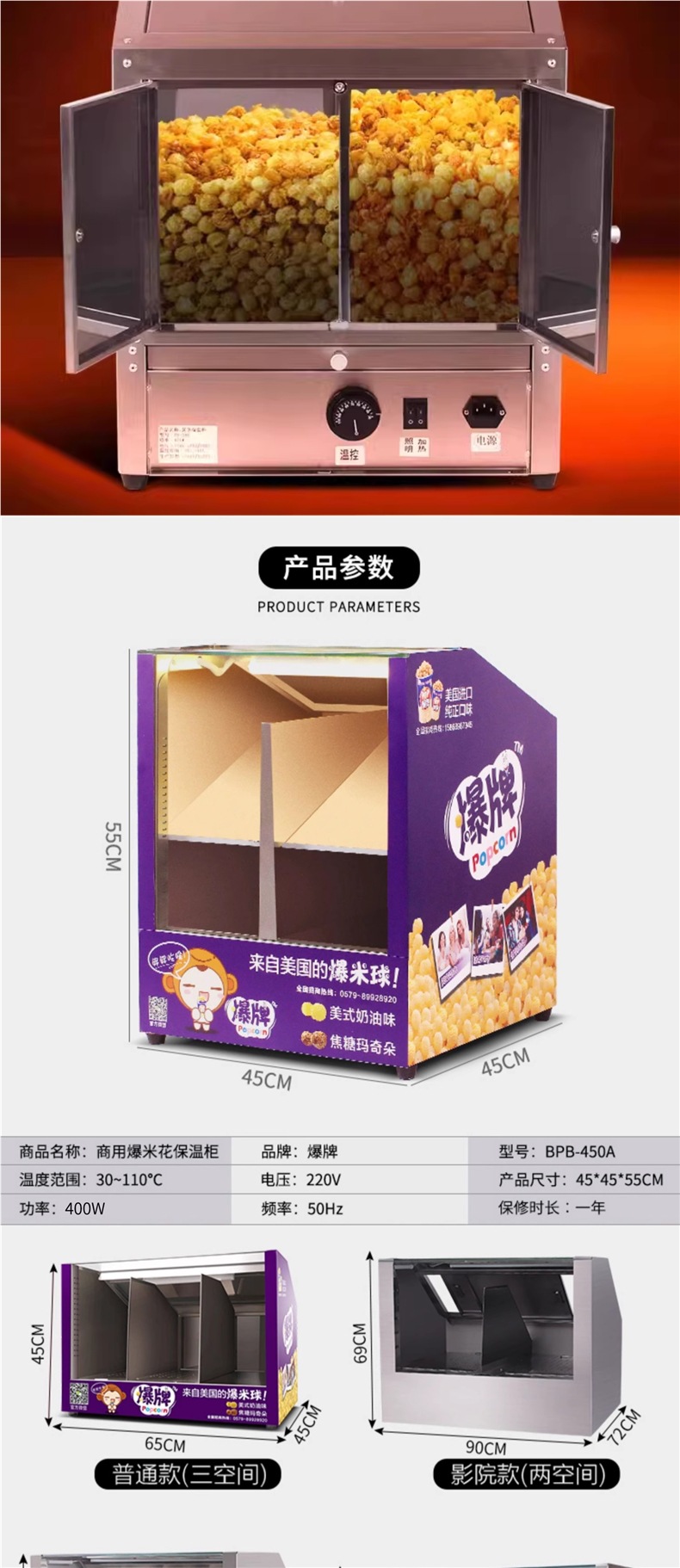 브랜드 미국의 구형 팝콘 인큐베이터 팝콘 절연 디스플레이 캐비닛 영화관 ktv 상업 마구간 오븐