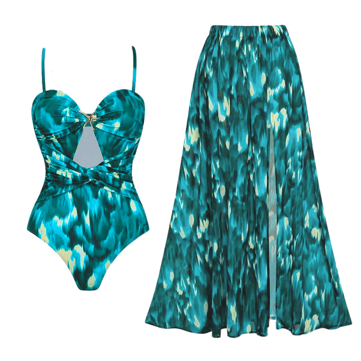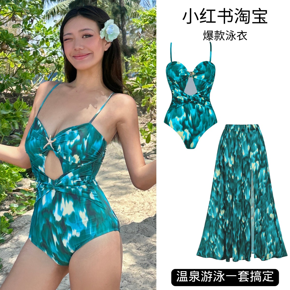 2025 Xiaohongshu Taobao 수영복 새로운 잉크 인쇄 중공 휴가 분위기 원피스 수영복 여성 25149