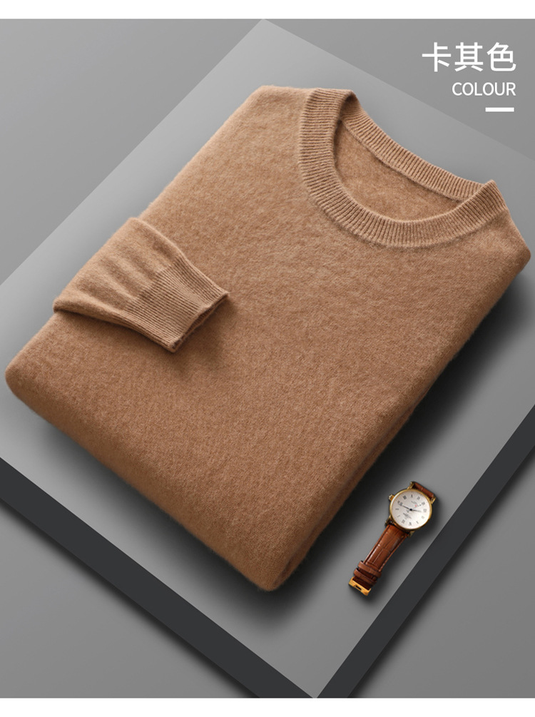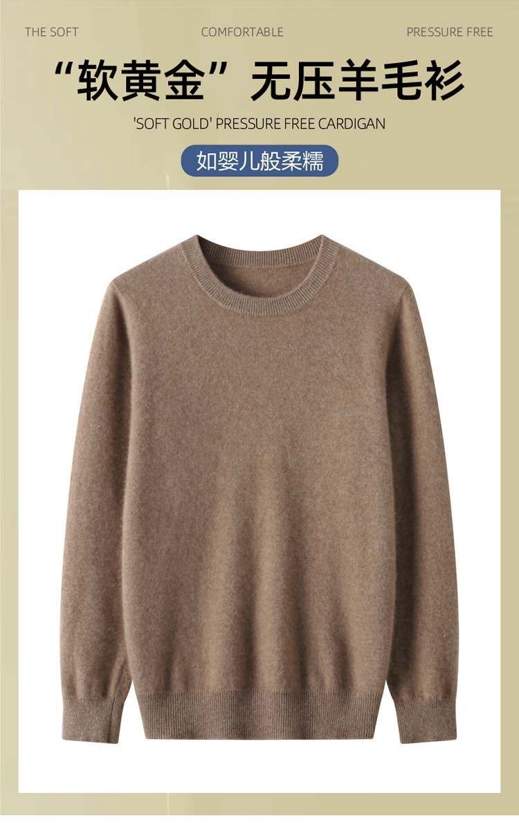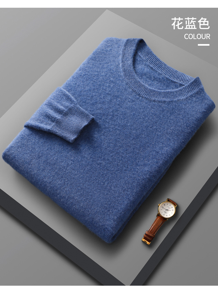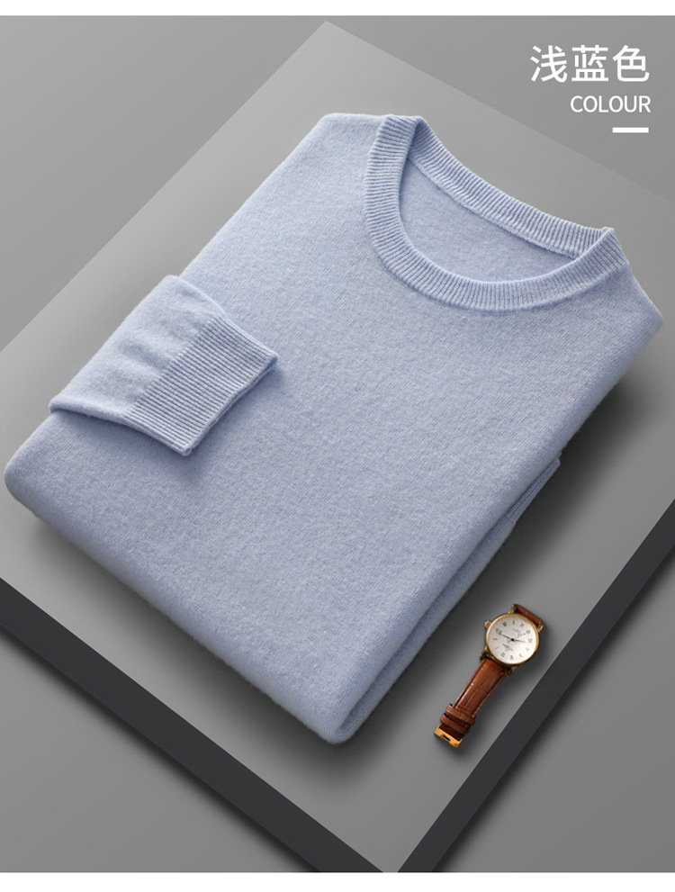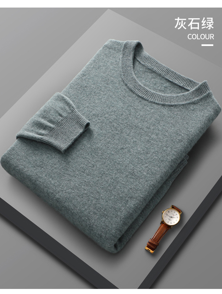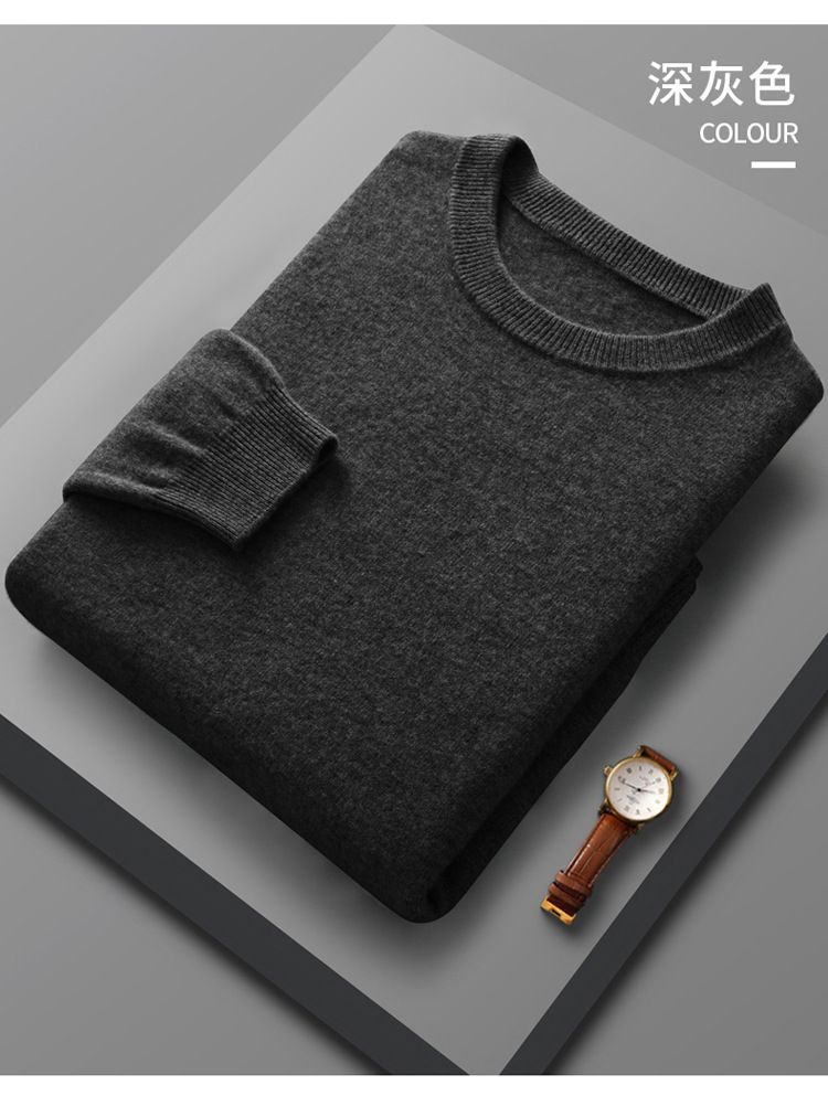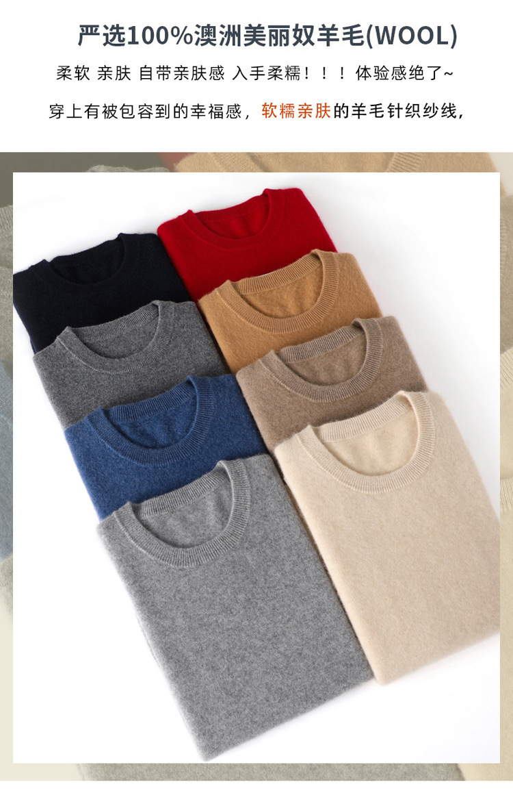 가을, 겨울 신작 남성용 라운드 넥 호주 양모 스웨터 캐주얼 탑 바닥 셔츠 남성용 솔리드 컬러 다용도 니트 스웨터스토어 가기