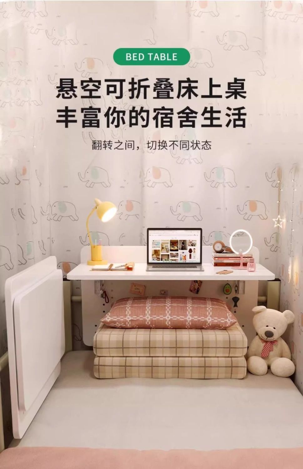 대학생 기숙사 침대 컴퓨터 책상 접이식 게으른 이층 침대 책상 기숙사 이층 침대 교수형 책상 학습 작은 테이블