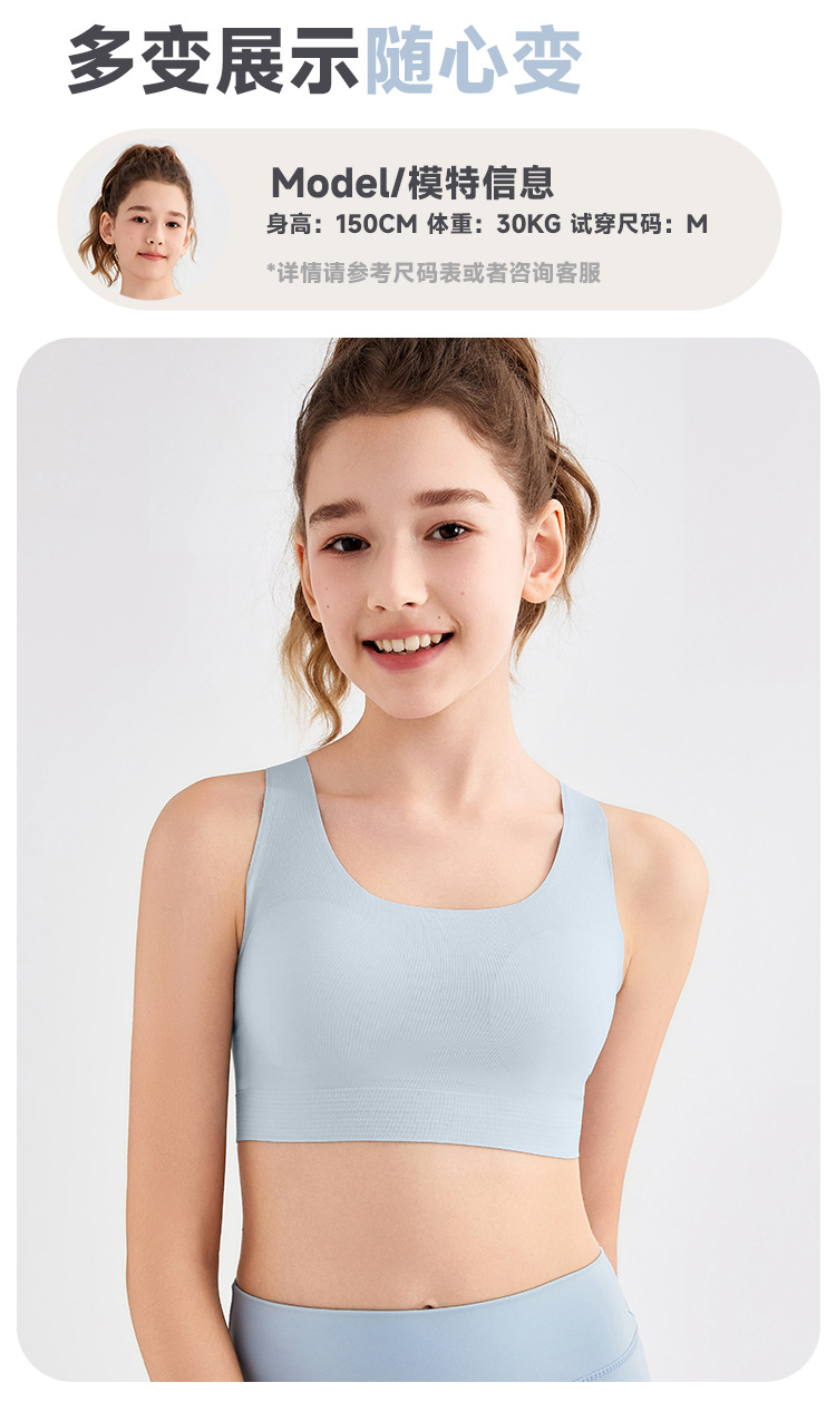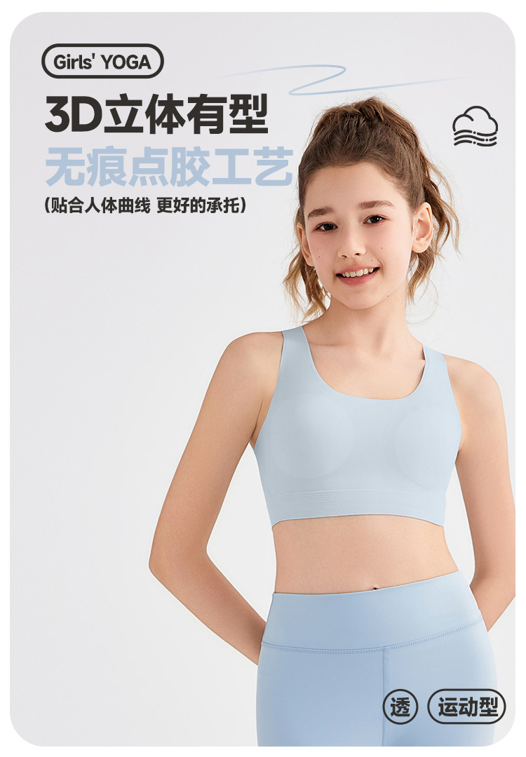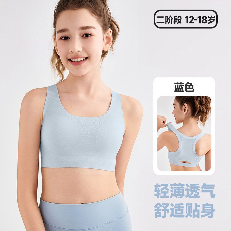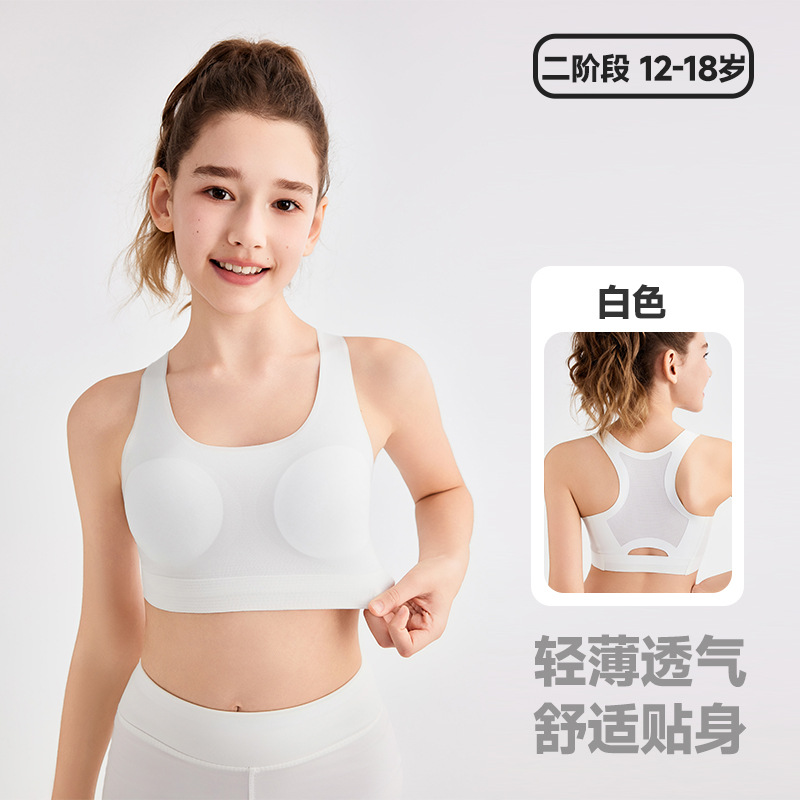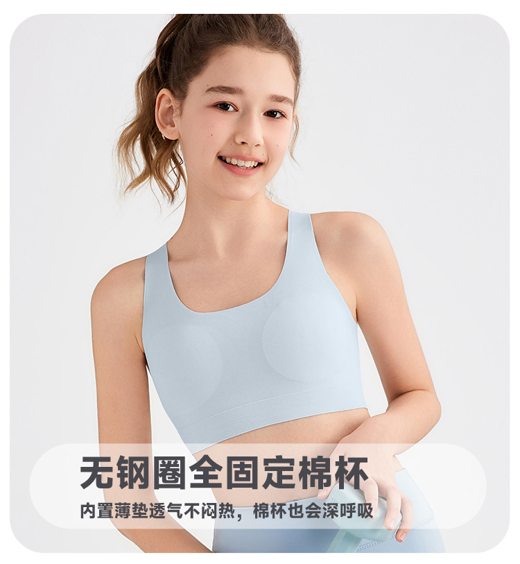 I자형 감압 여아용 브라, 가볍고 아름다운 등 스포츠 조끼, 고정형 통기성 면컵, 중학생 발달기 속옷스토어 가기