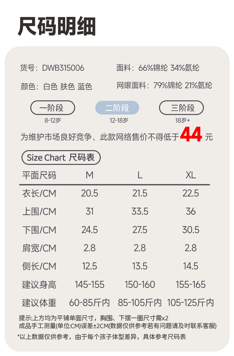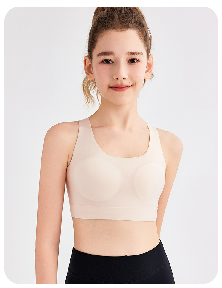 I자형 감압 여아용 브라, 가볍고 아름다운 등 스포츠 조끼, 고정형 통기성 면컵, 중학생 발달기 속옷