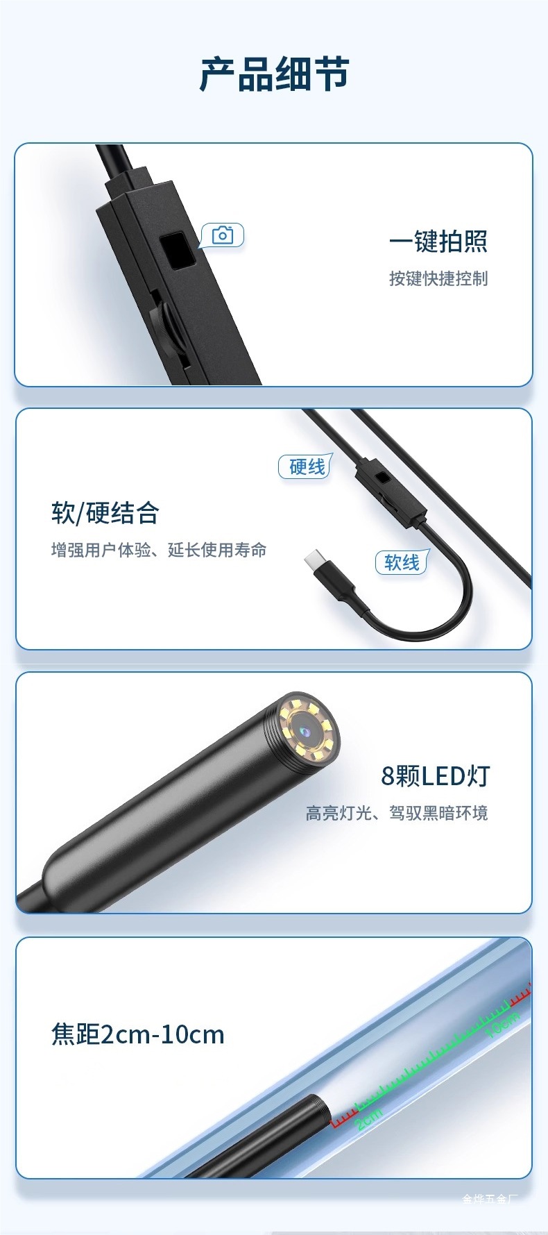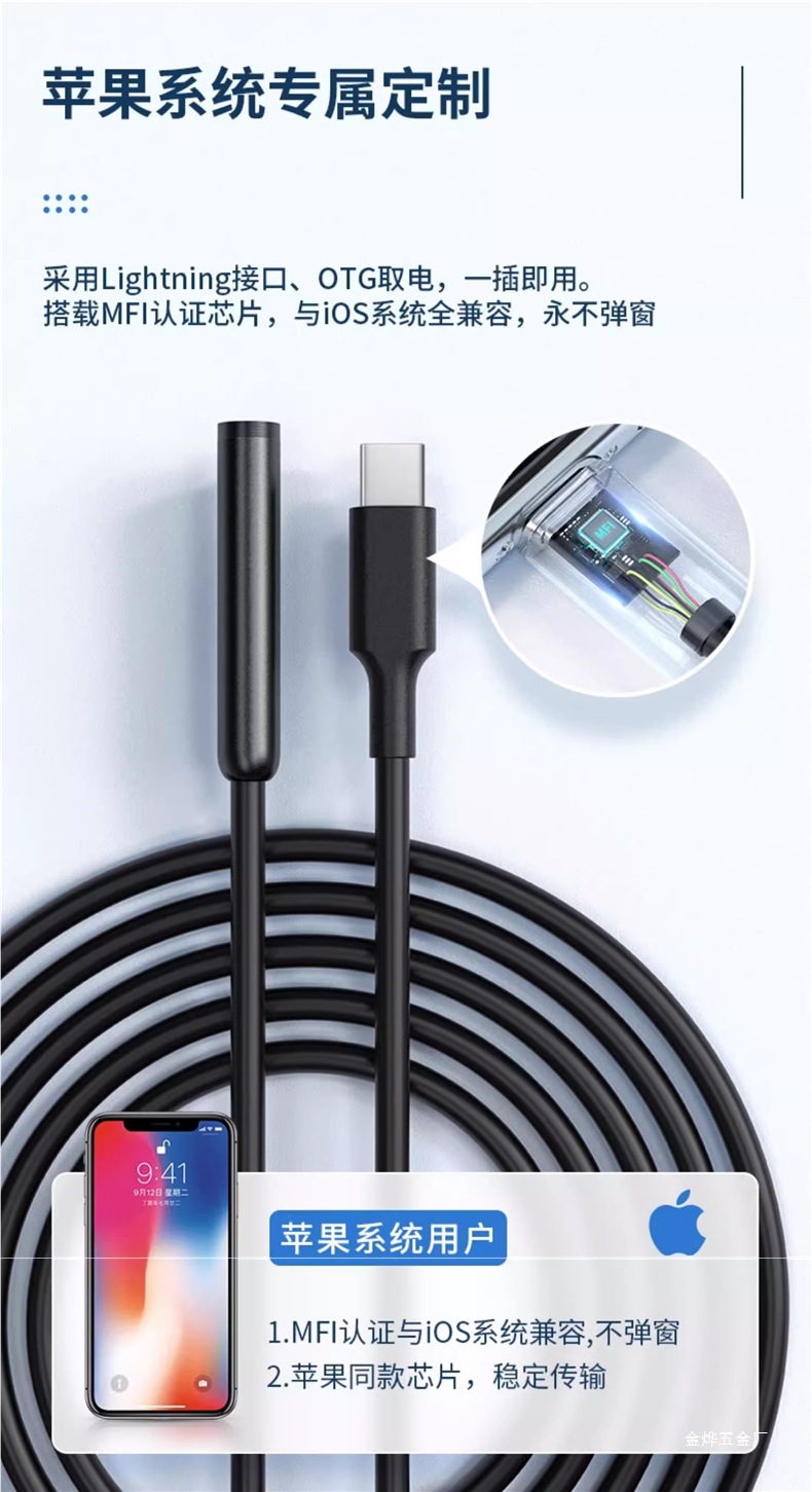 • [휴대폰 기종에 국한되지 않은 직접 연결] 울트라 클리어 8mm 듀얼 렌즈 10m 하드 와이어