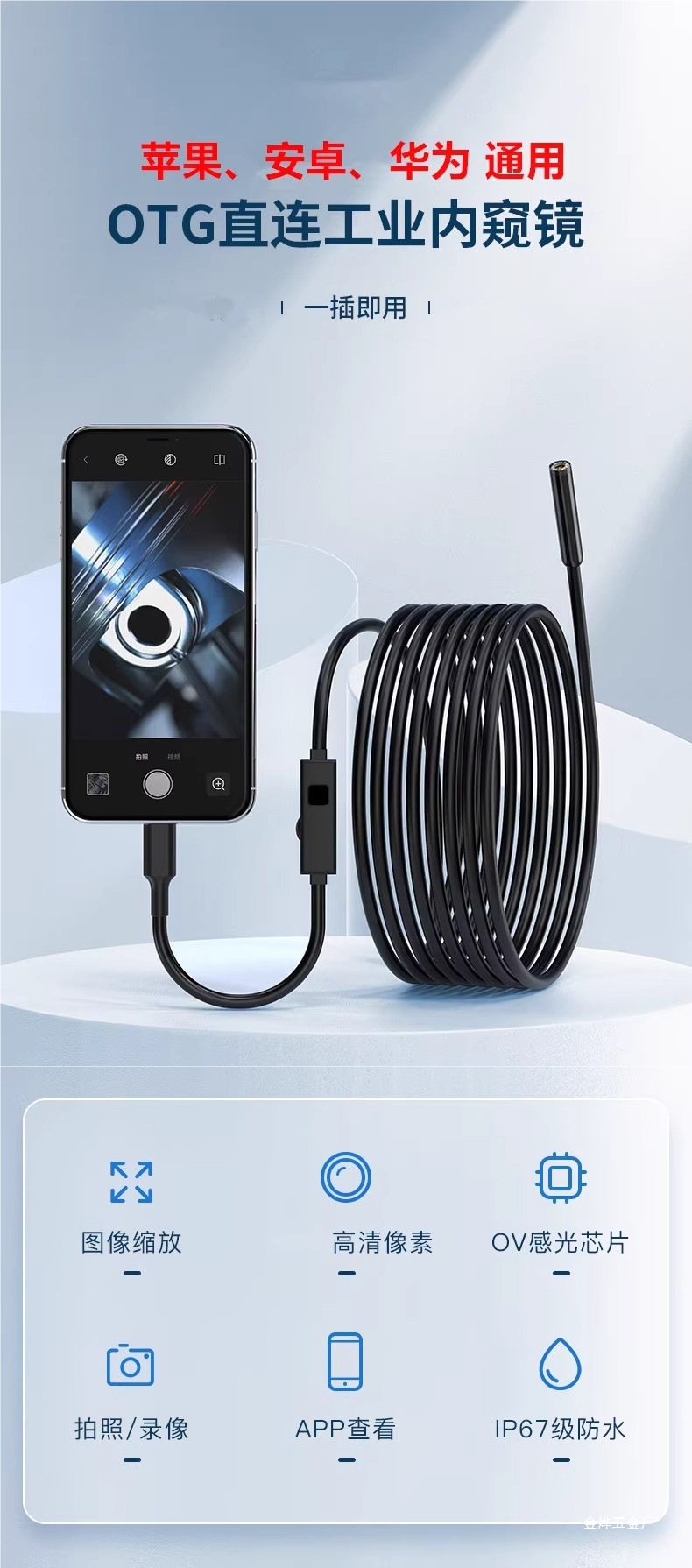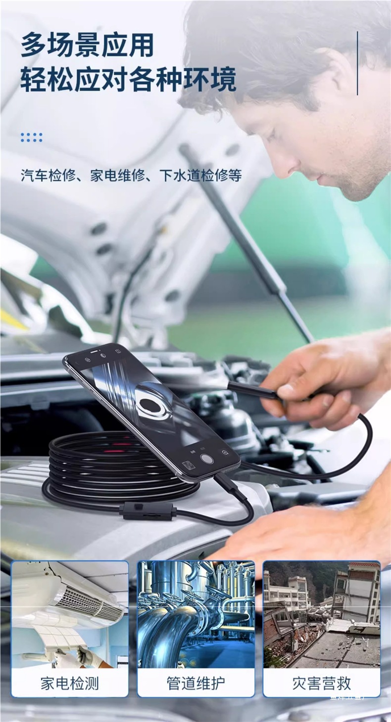 고화질 내시경 카메라 자동차 엔진 유지 보수 산업용 파이프라인 감지 회전식 휴대 전화 프로브 Jinye스토어 가기