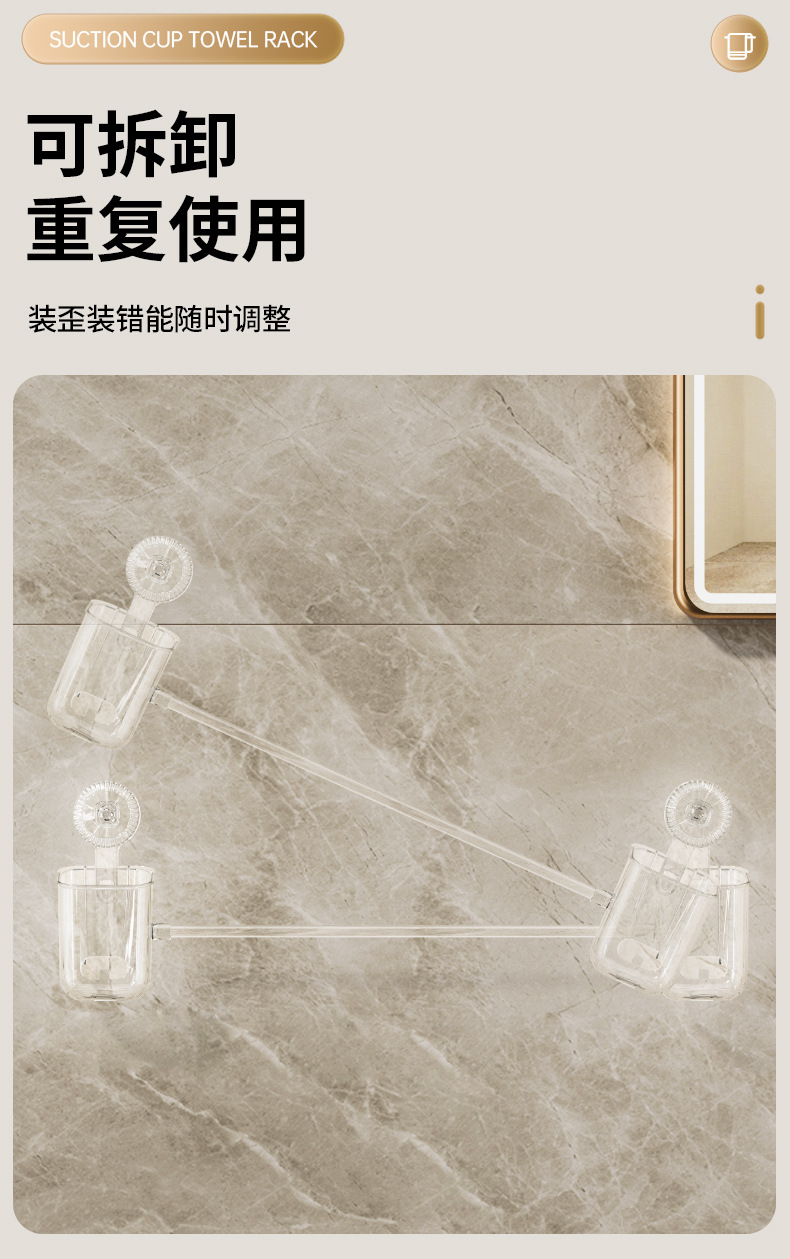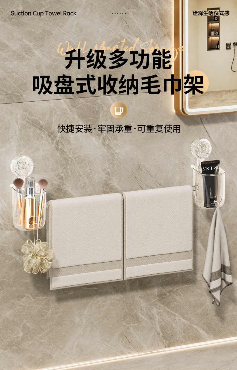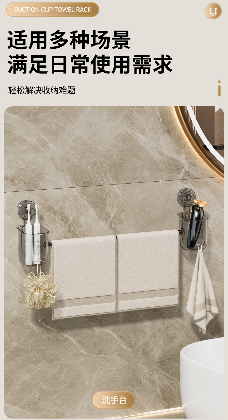 흡착판 수건걸이, 욕실 욕실 수납선반, 화장실 펀치프리 벽걸이 수건걸이, 일체형 걸이봉