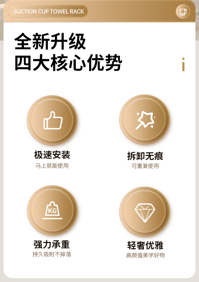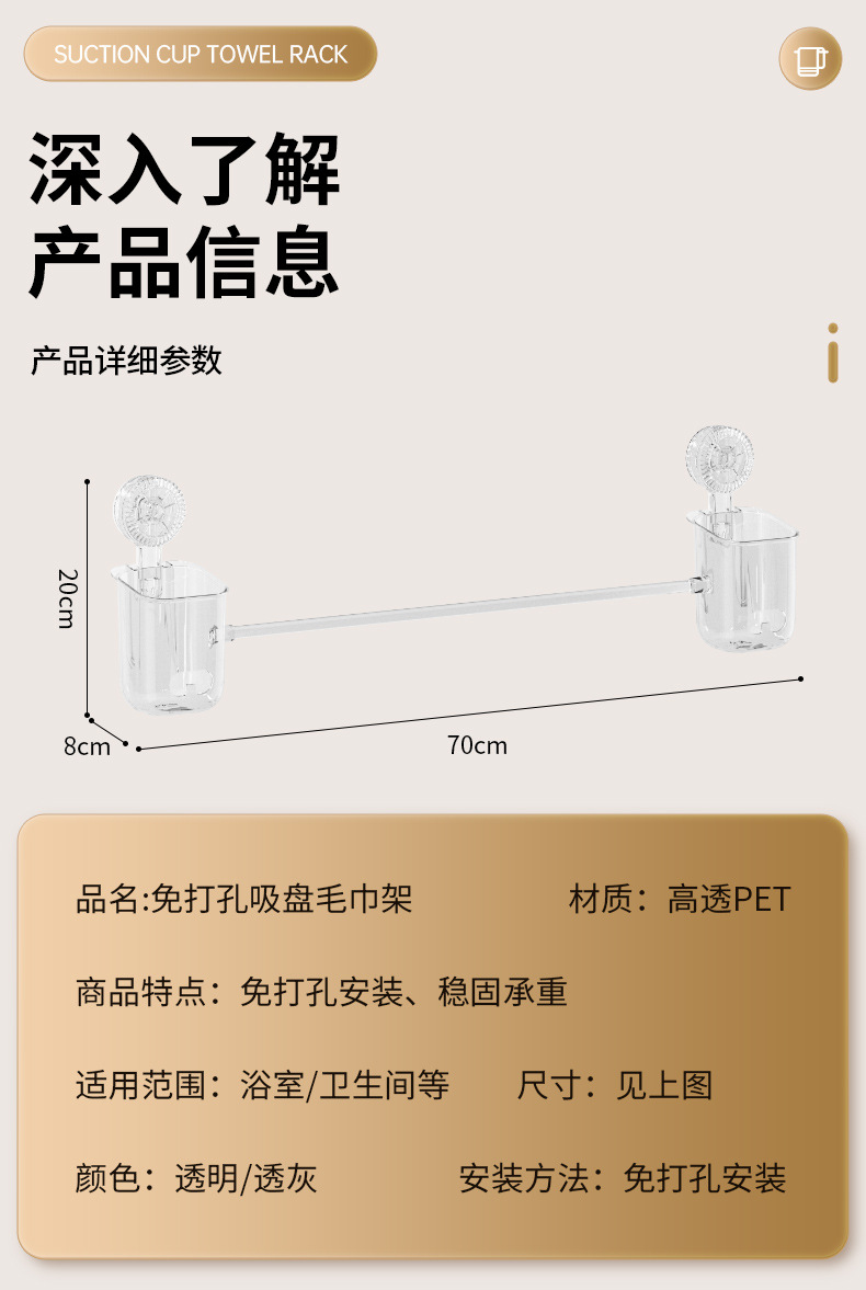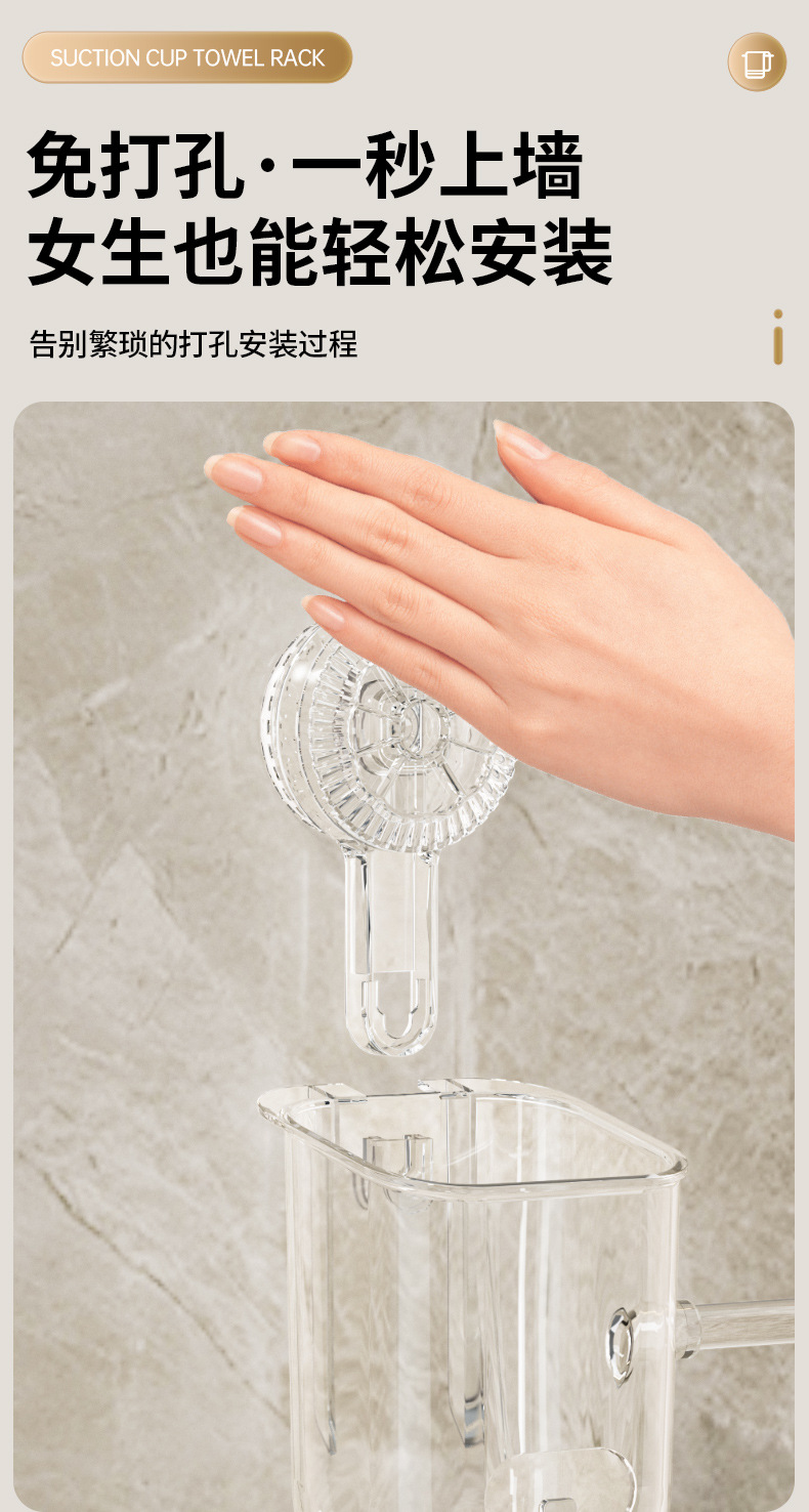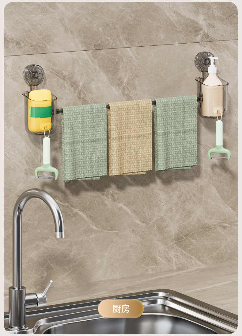 흡착판 수건걸이, 욕실 욕실 수납선반, 화장실 펀치프리 벽걸이 수건걸이, 일체형 걸이봉