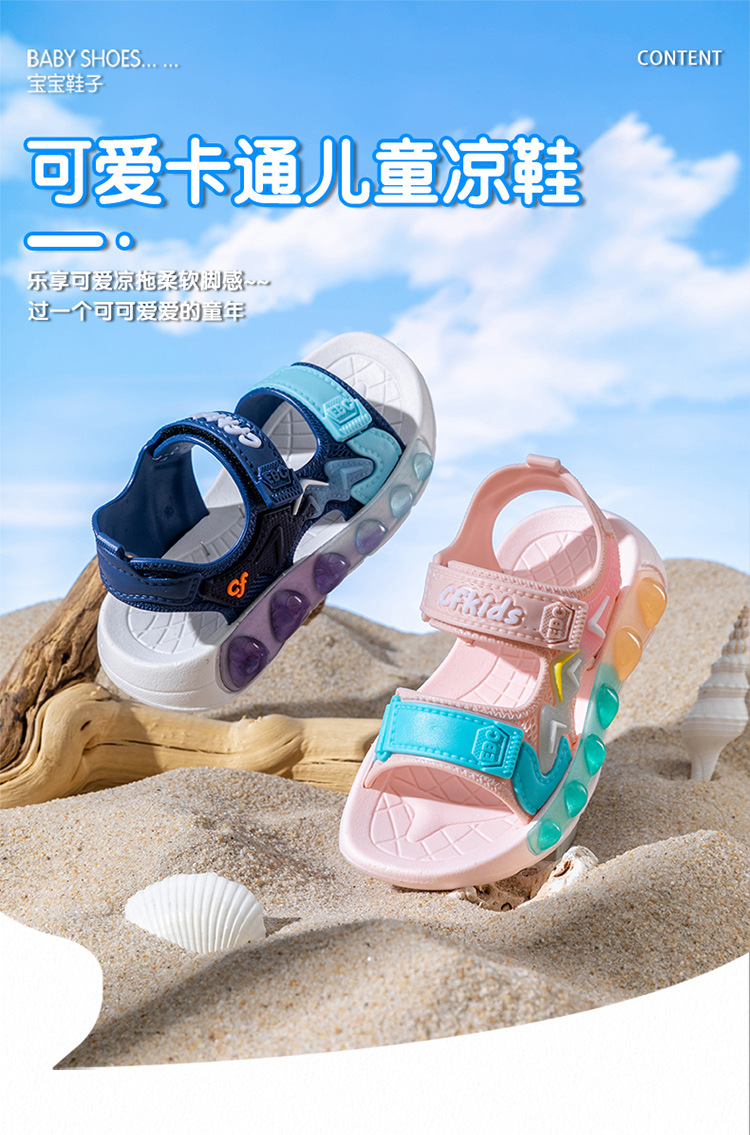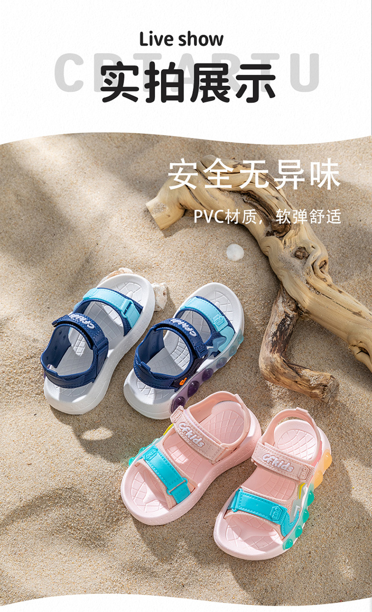 소년 샌들 2025 여름 중대형 어린이 미끄럼 방지 부드러운 바닥 벨크로 캐주얼 비치 신발 소녀 아기 신발스토어 가기