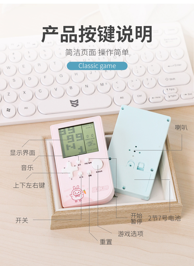 어린이 교육용 새로운 휴대용 테트리스 게임 콘솔 휴대용 향수 클래식 장난감 휴대용 선물 크로스 보더스토어 가기