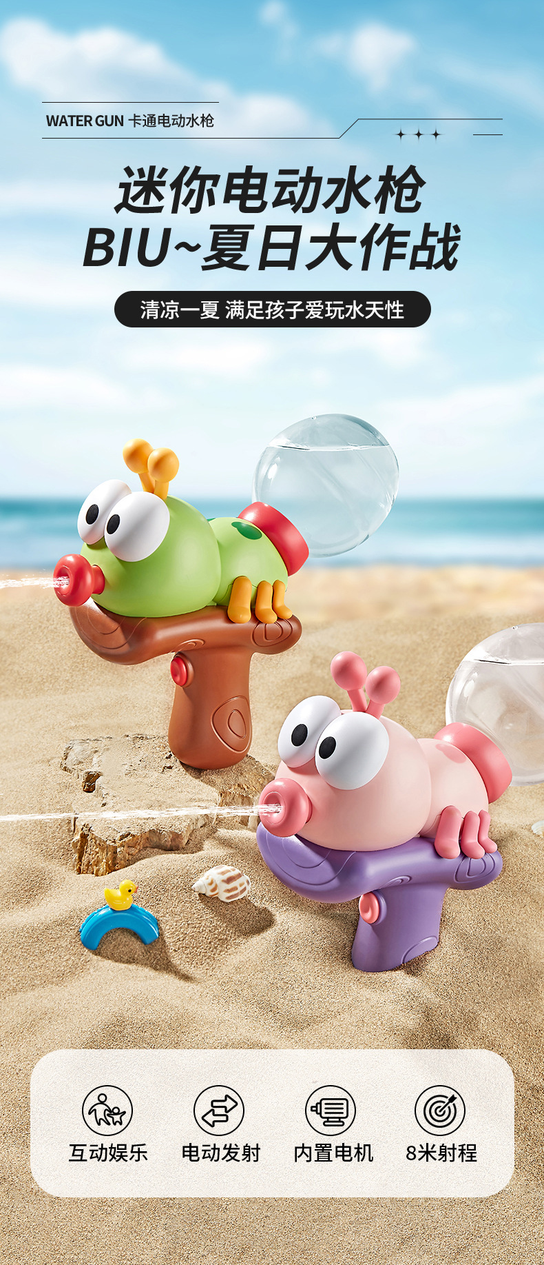 여름 인기 어린이 개미 전기 물총 만화 전기 물총 여름 해변 물놀이 시원한 장난감스토어 가기