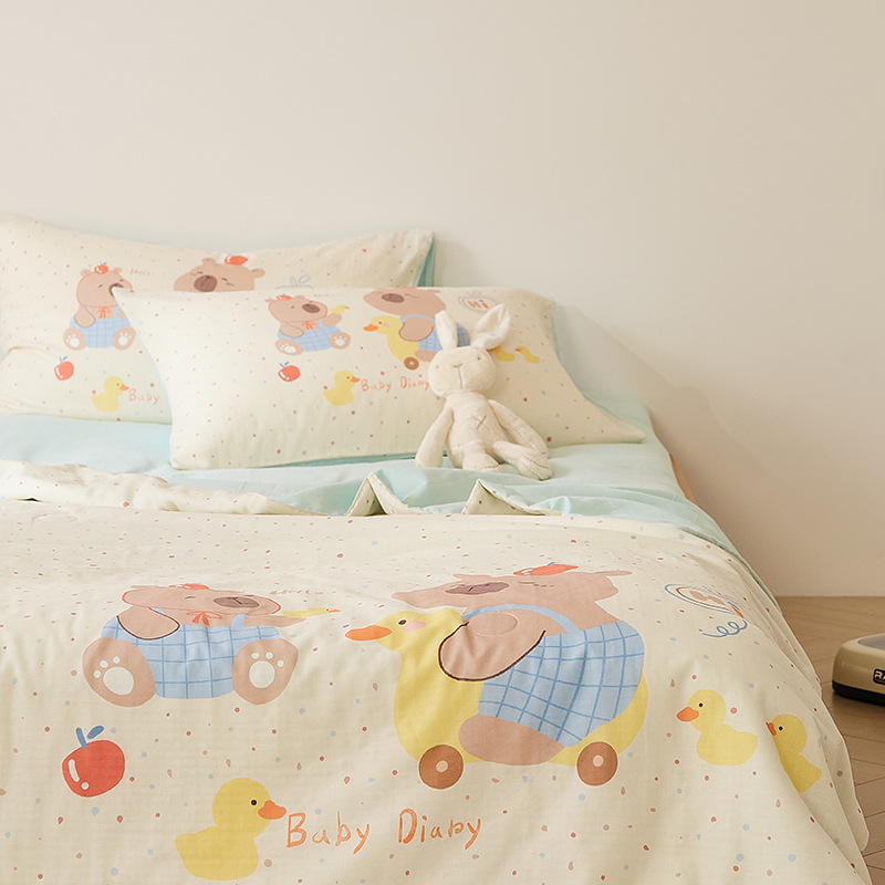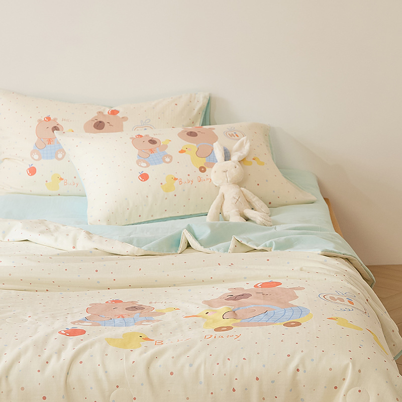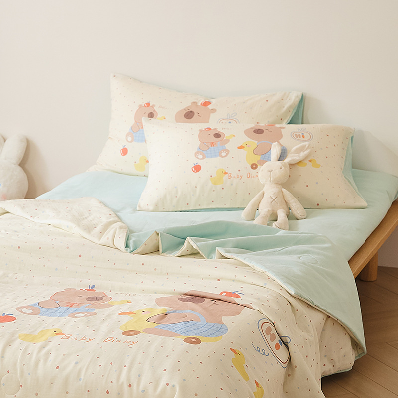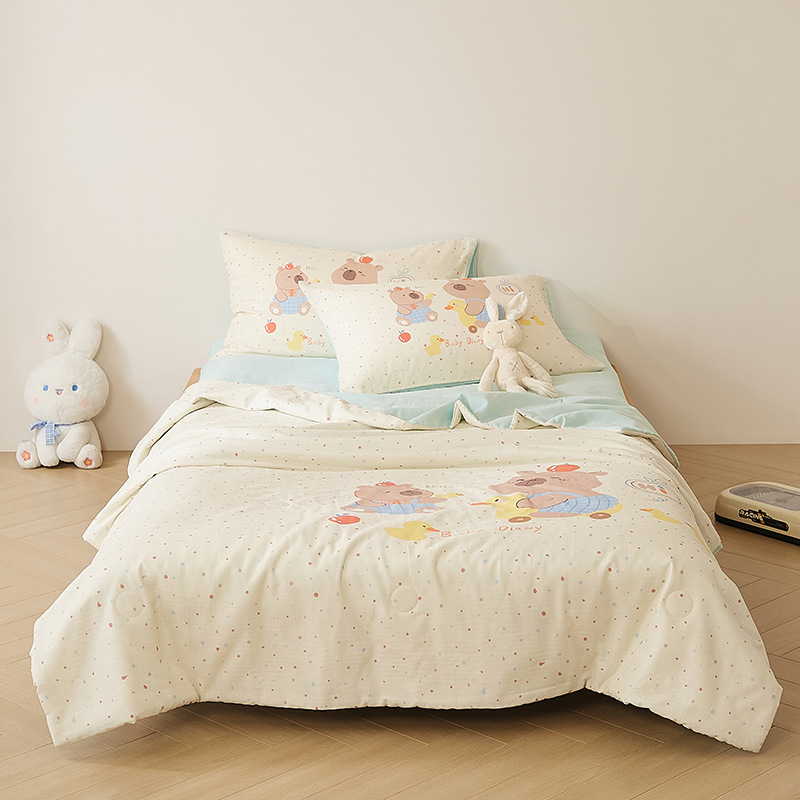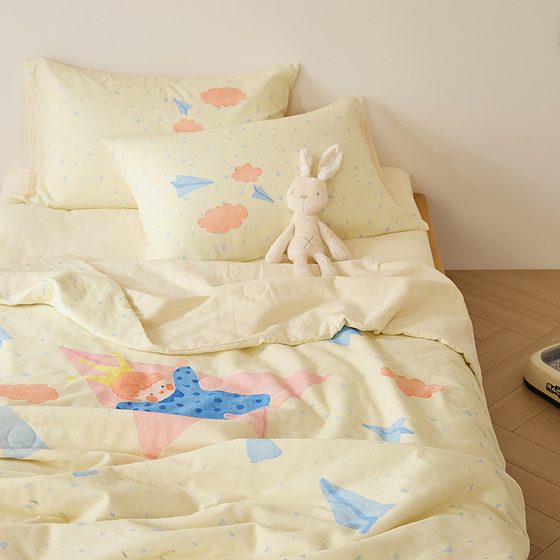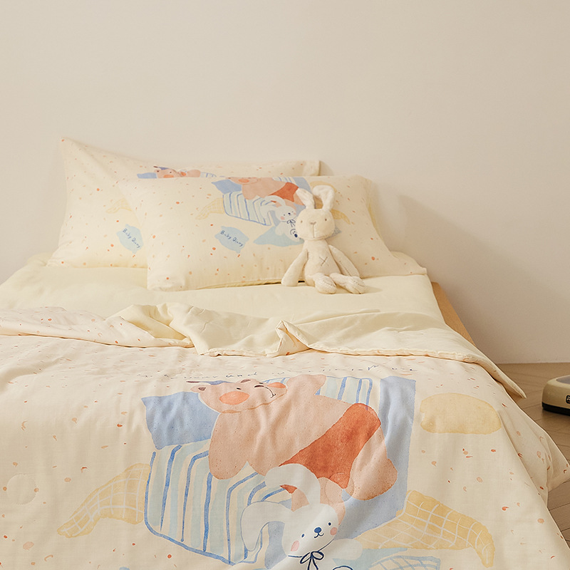 아기에게도 안심하고 사용하세요! A급 산모 및 유아용 면 2겹 거즈 에어컨 이불 어린이 여름 시원한 이불 면 콩 이불 3