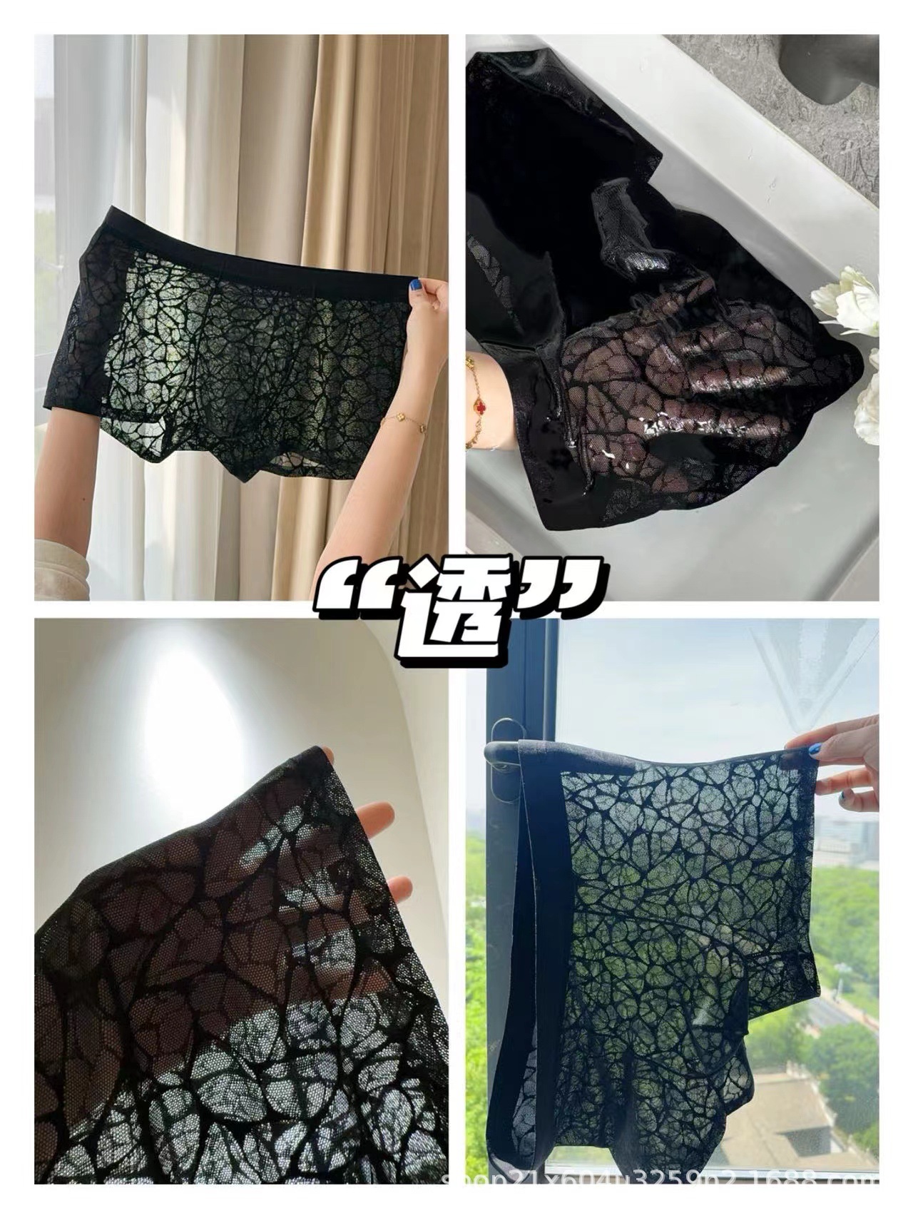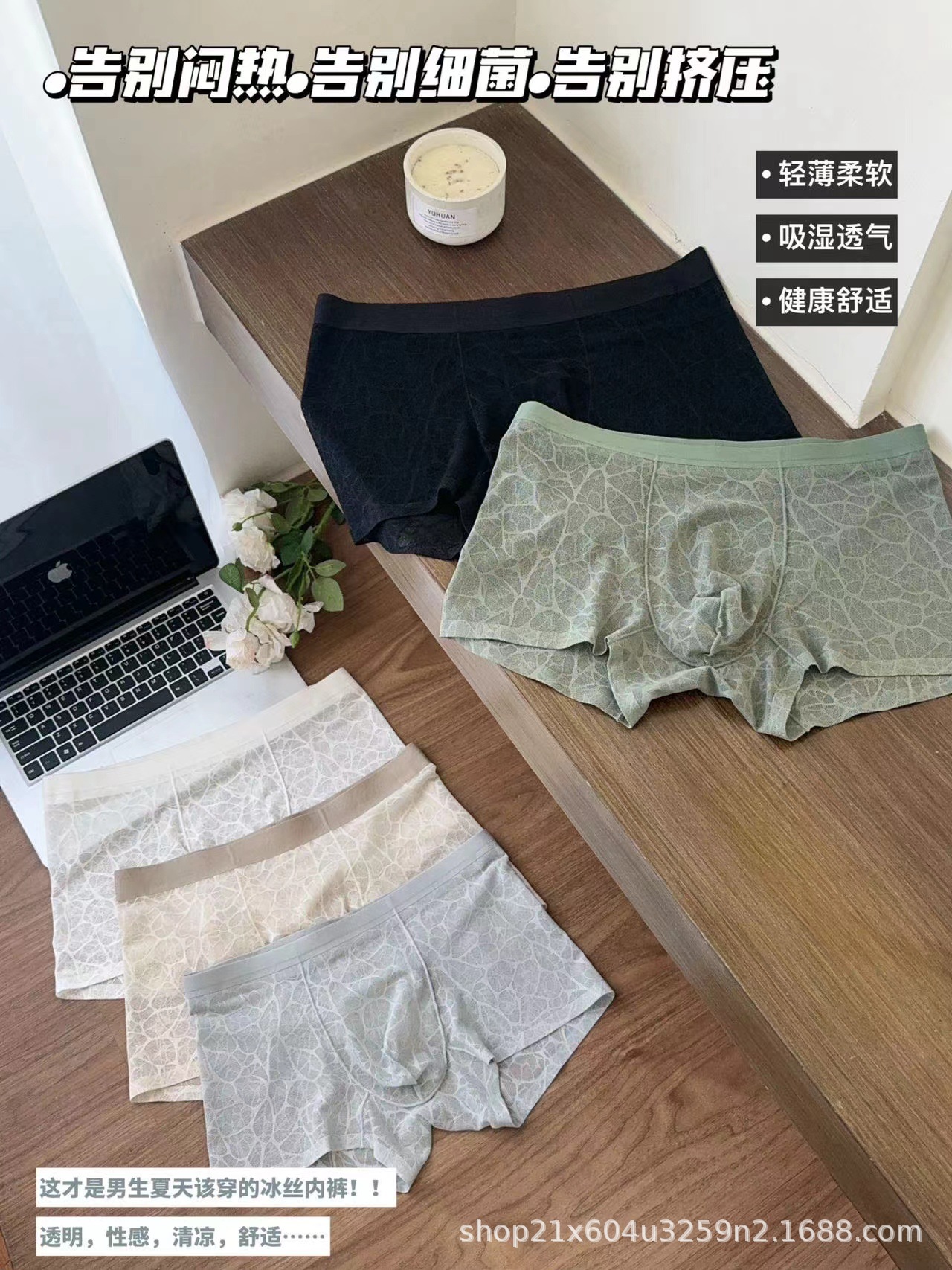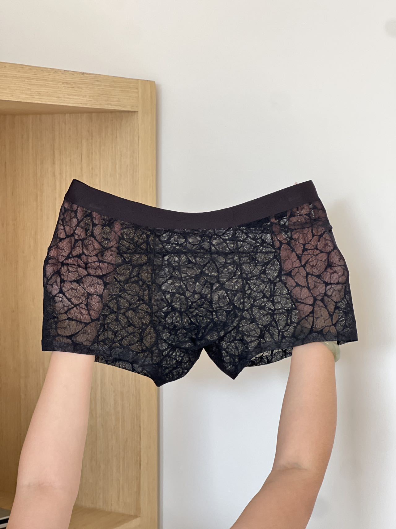 202510A 항균 동백 향기 수분을 공급하는 레이스 레오파드 자카드 섹시한 남자 아이스 실크 메쉬 반바지스토어 가기
