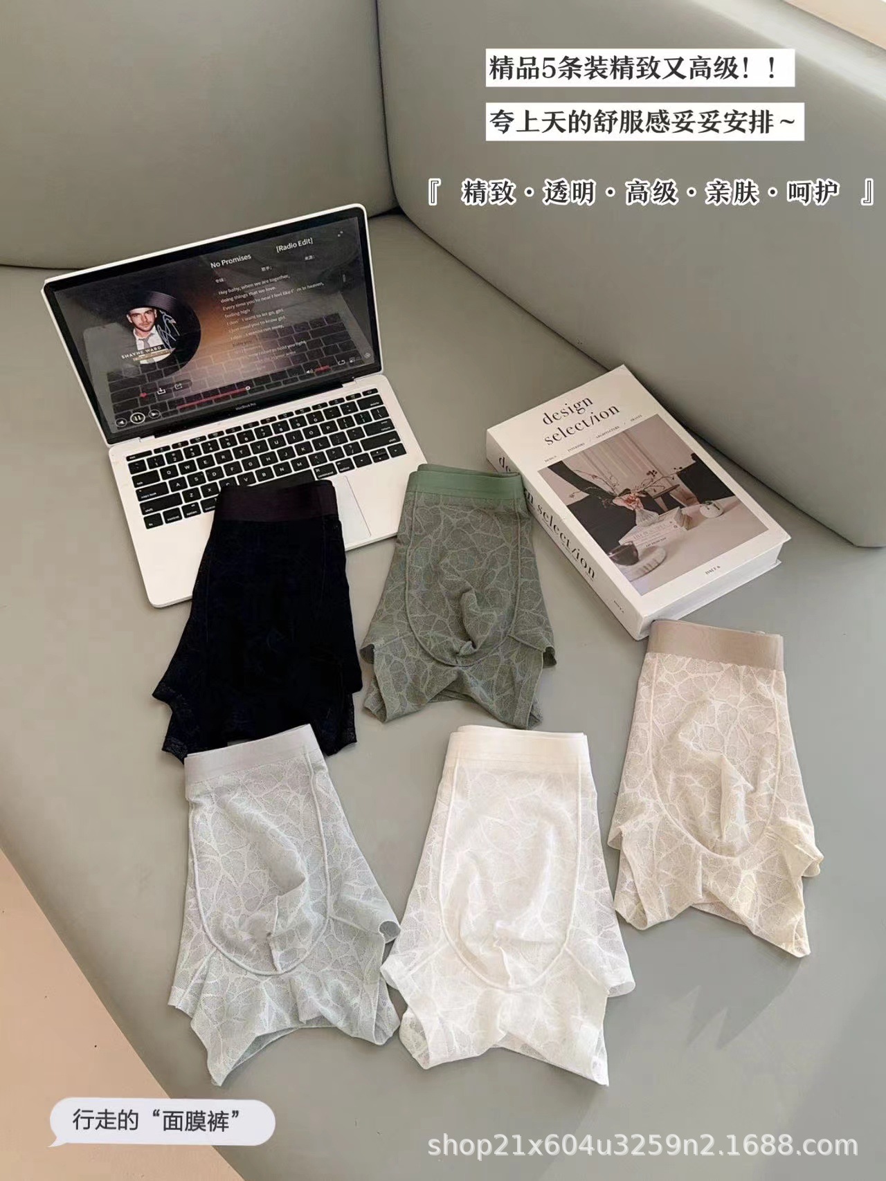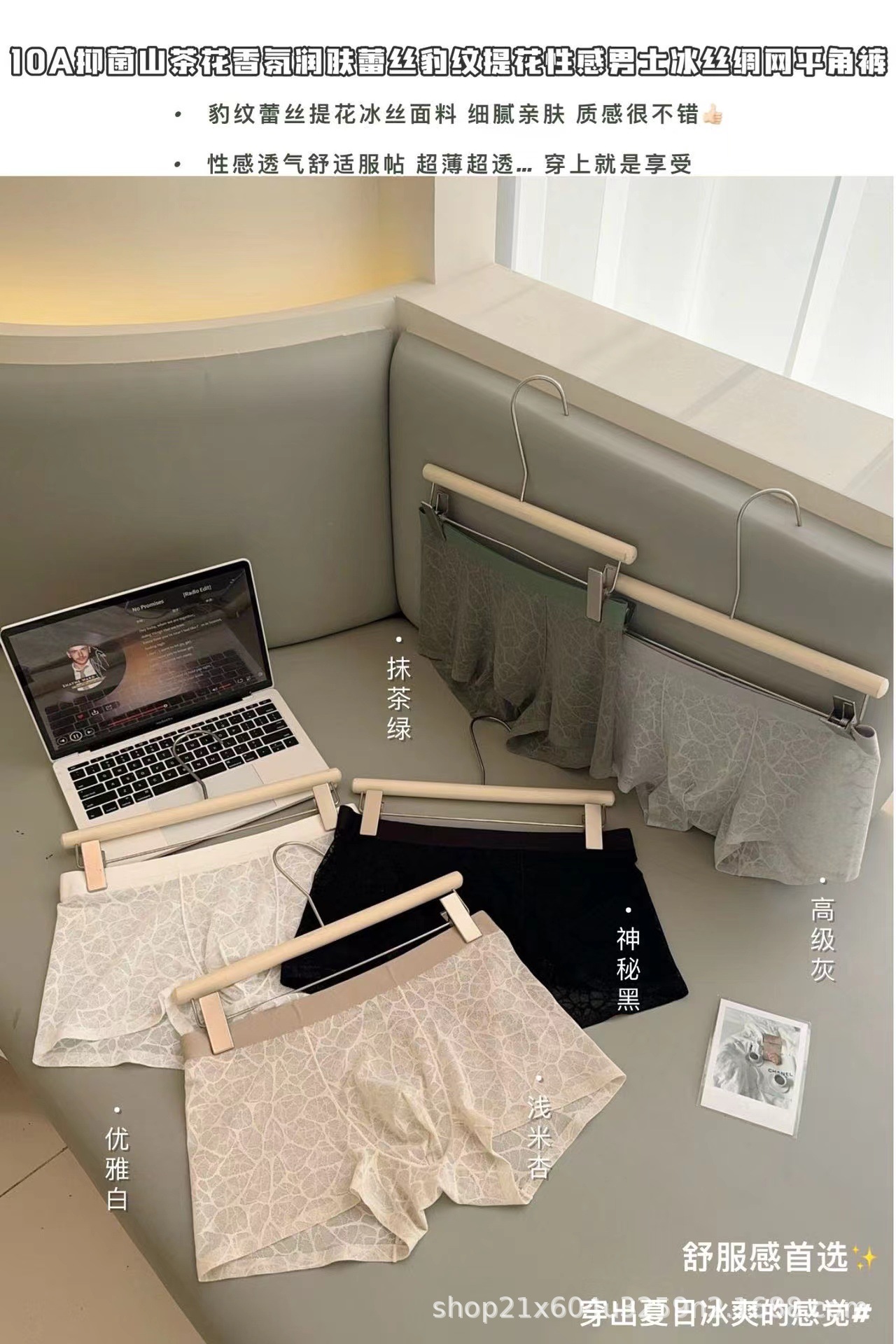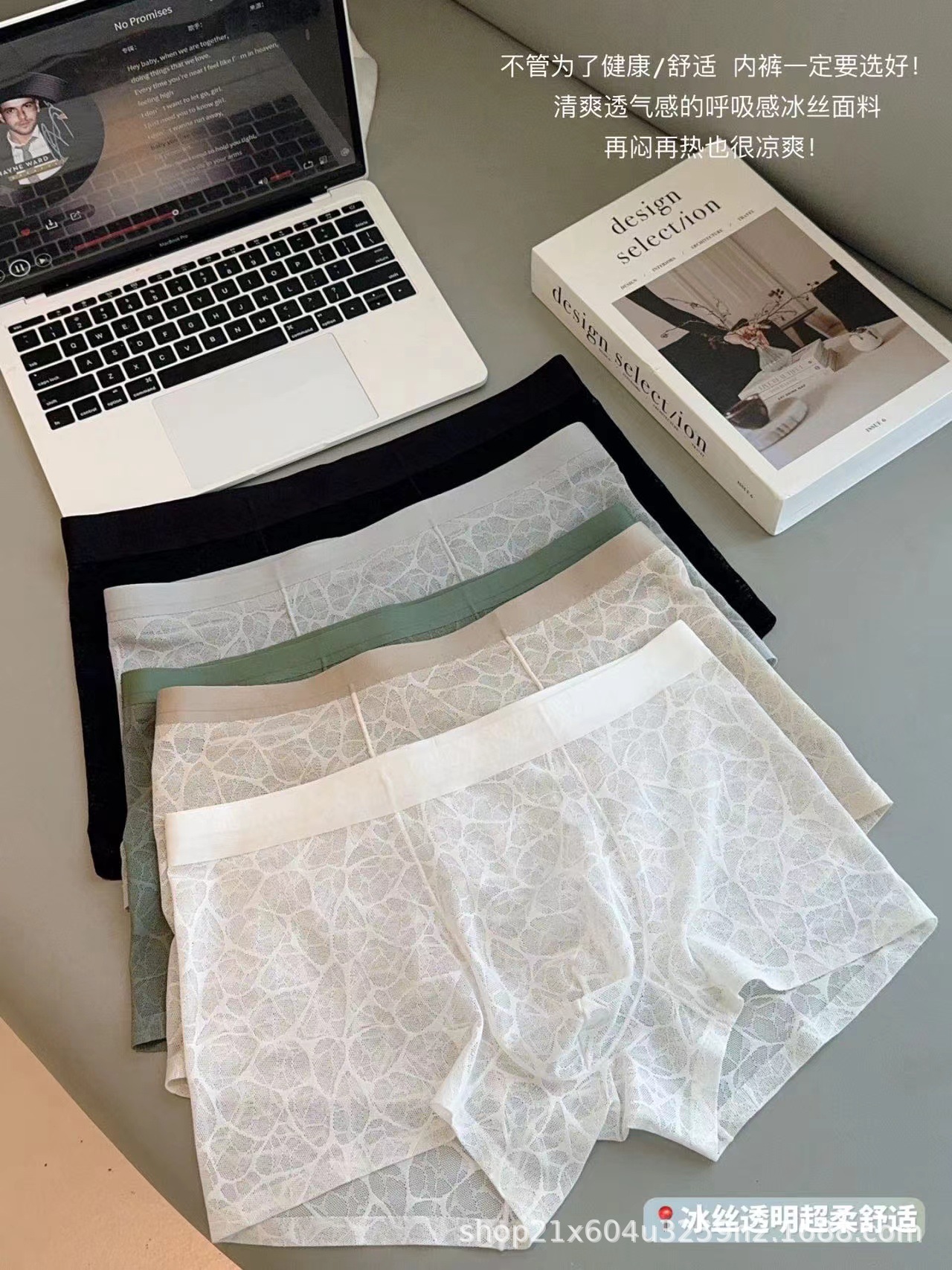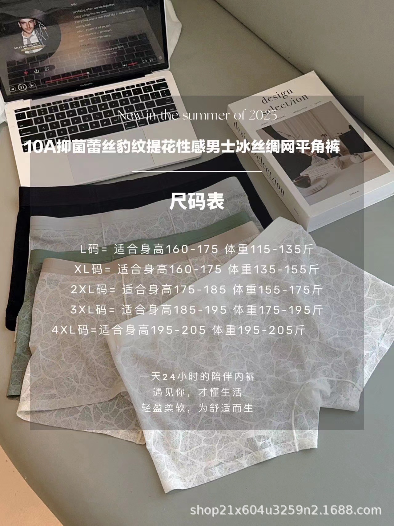 202510A 항균 동백 향기 수분을 공급하는 레이스 레오파드 자카드 섹시한 남자 아이스 실크 메쉬 반바지스토어 가기