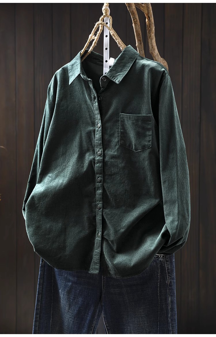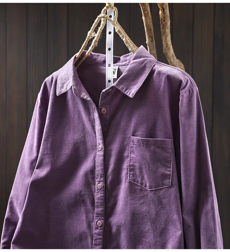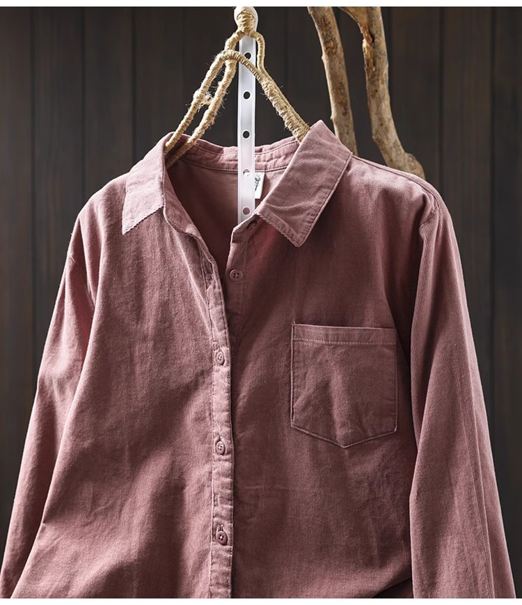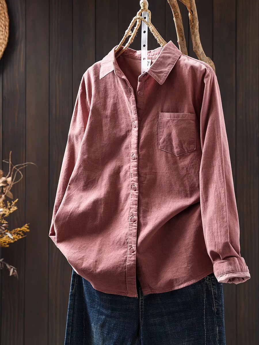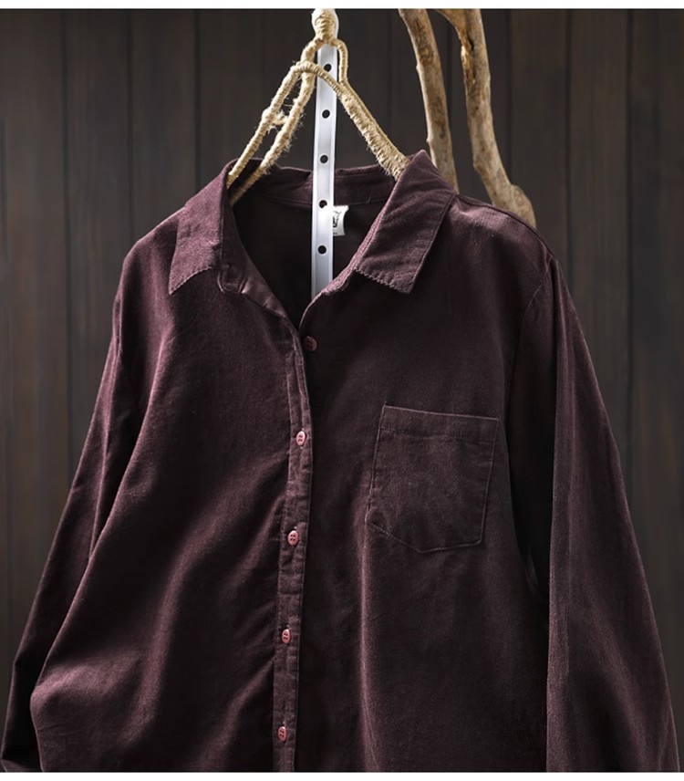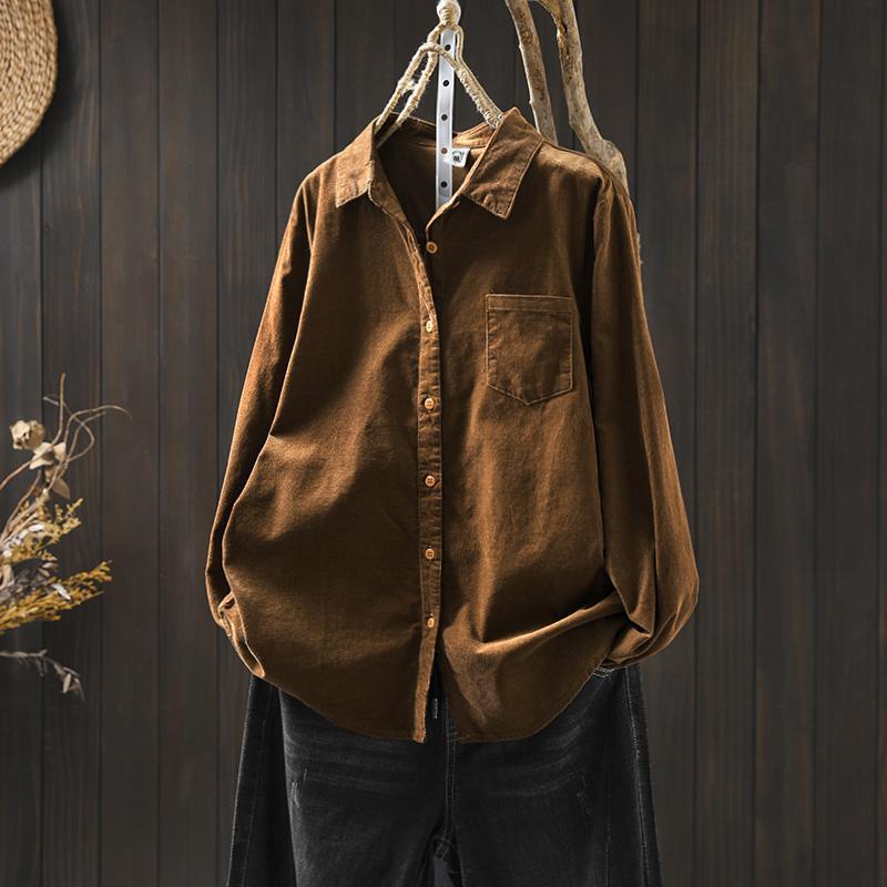 여성용 순면 코듀로이 바닥 셔츠, 긴팔, 루즈하고 슬림한 가을 겨울 캐주얼 다용도 라펠 코듀로이 레이어드 셔츠스토어 가기