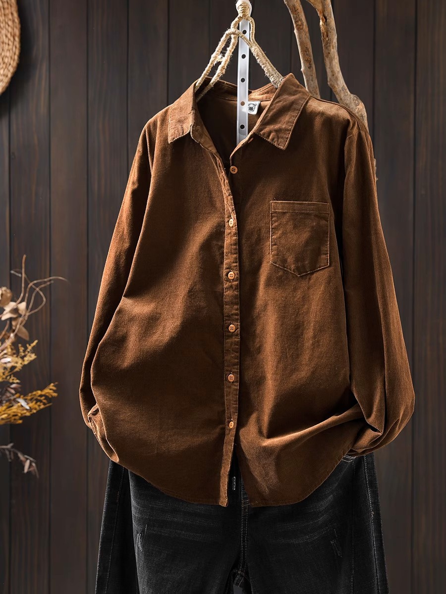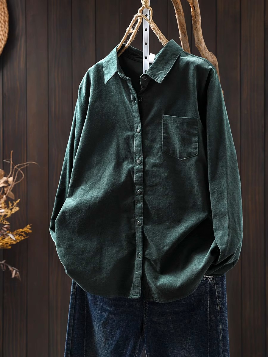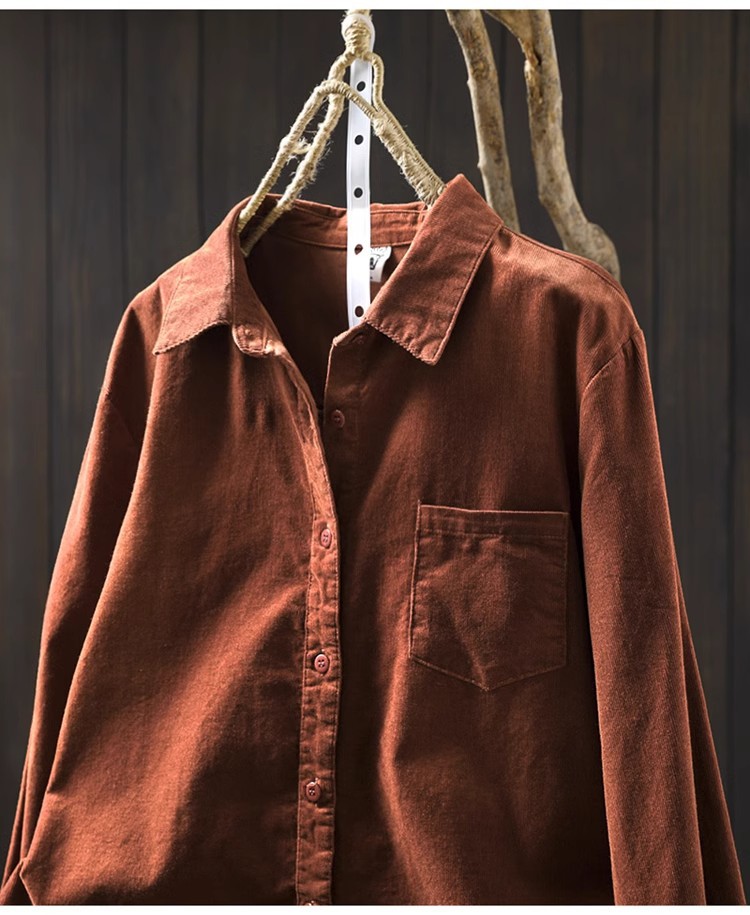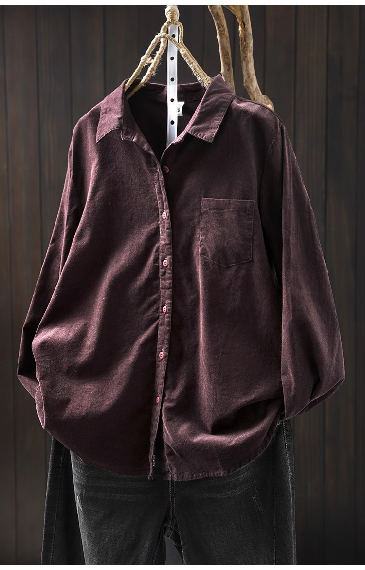 여성용 순면 코듀로이 바닥 셔츠, 긴팔, 루즈하고 슬림한 가을 겨울 캐주얼 다용도 라펠 코듀로이 레이어드 셔츠스토어 가기