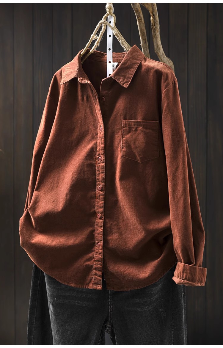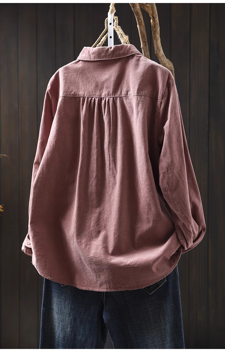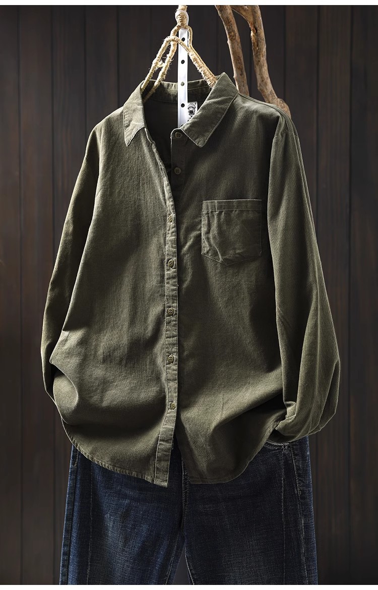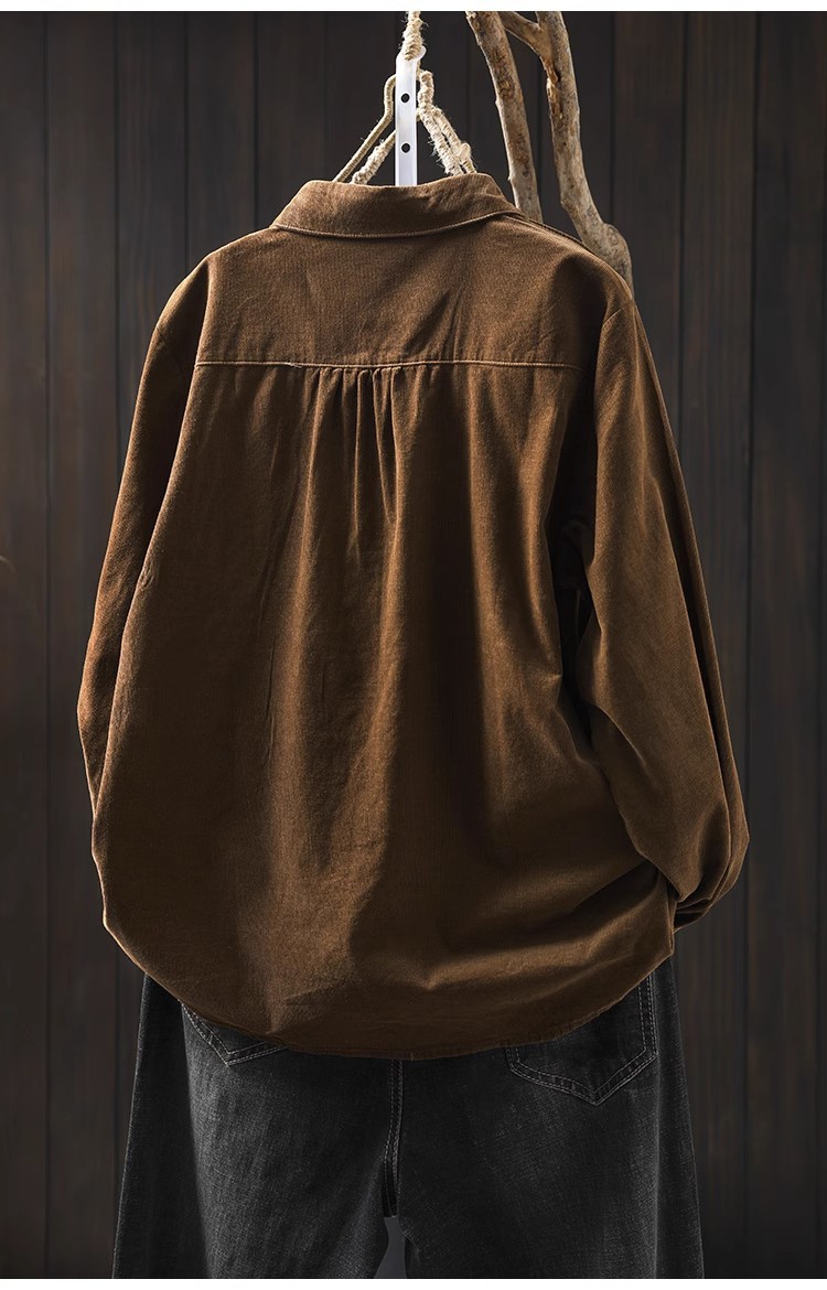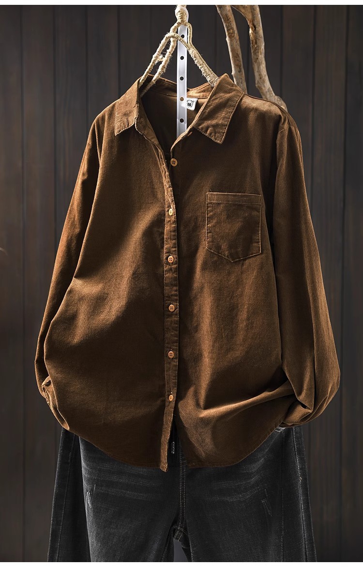 여성용 순면 코듀로이 바닥 셔츠, 긴팔, 루즈하고 슬림한 가을 겨울 캐주얼 다용도 라펠 코듀로이 레이어드 셔츠스토어 가기