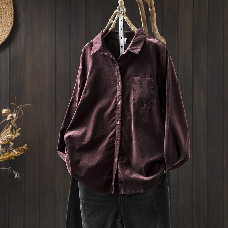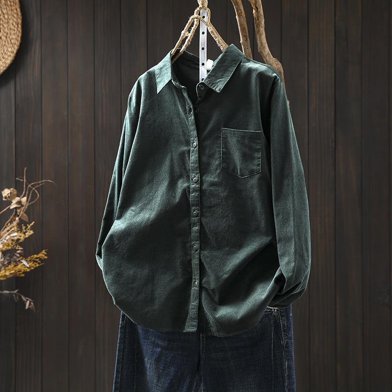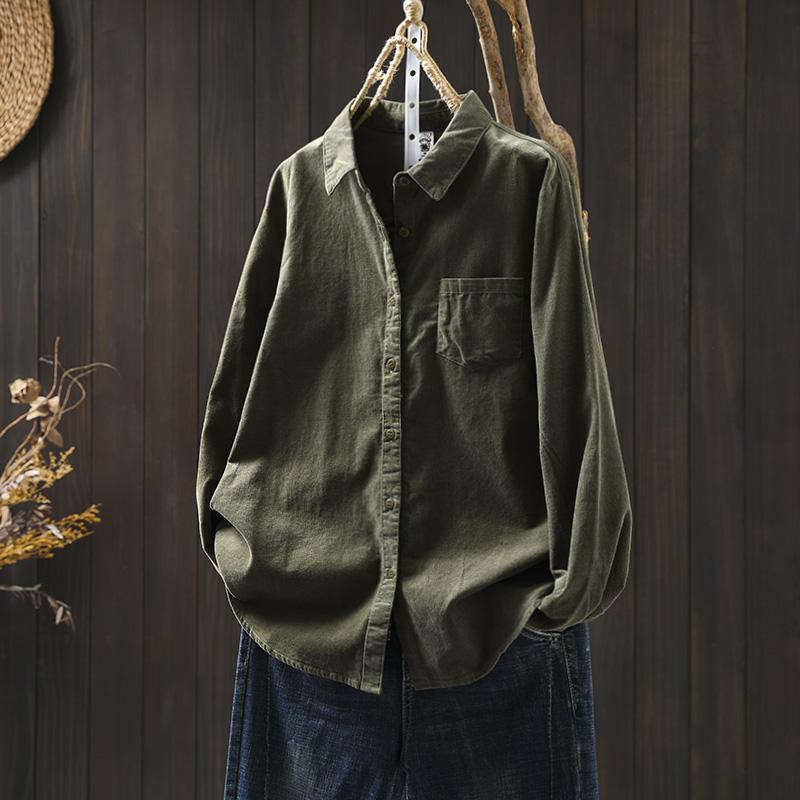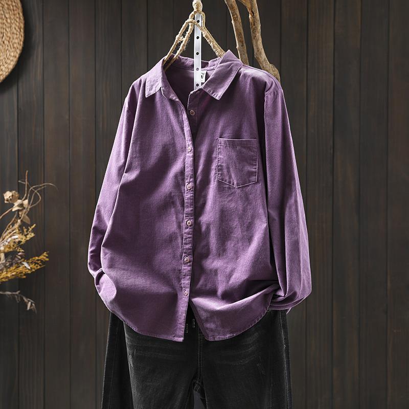 여성용 순면 코듀로이 바닥 셔츠, 긴팔, 루즈하고 슬림한 가을 겨울 캐주얼 다용도 라펠 코듀로이 레이어드 셔츠