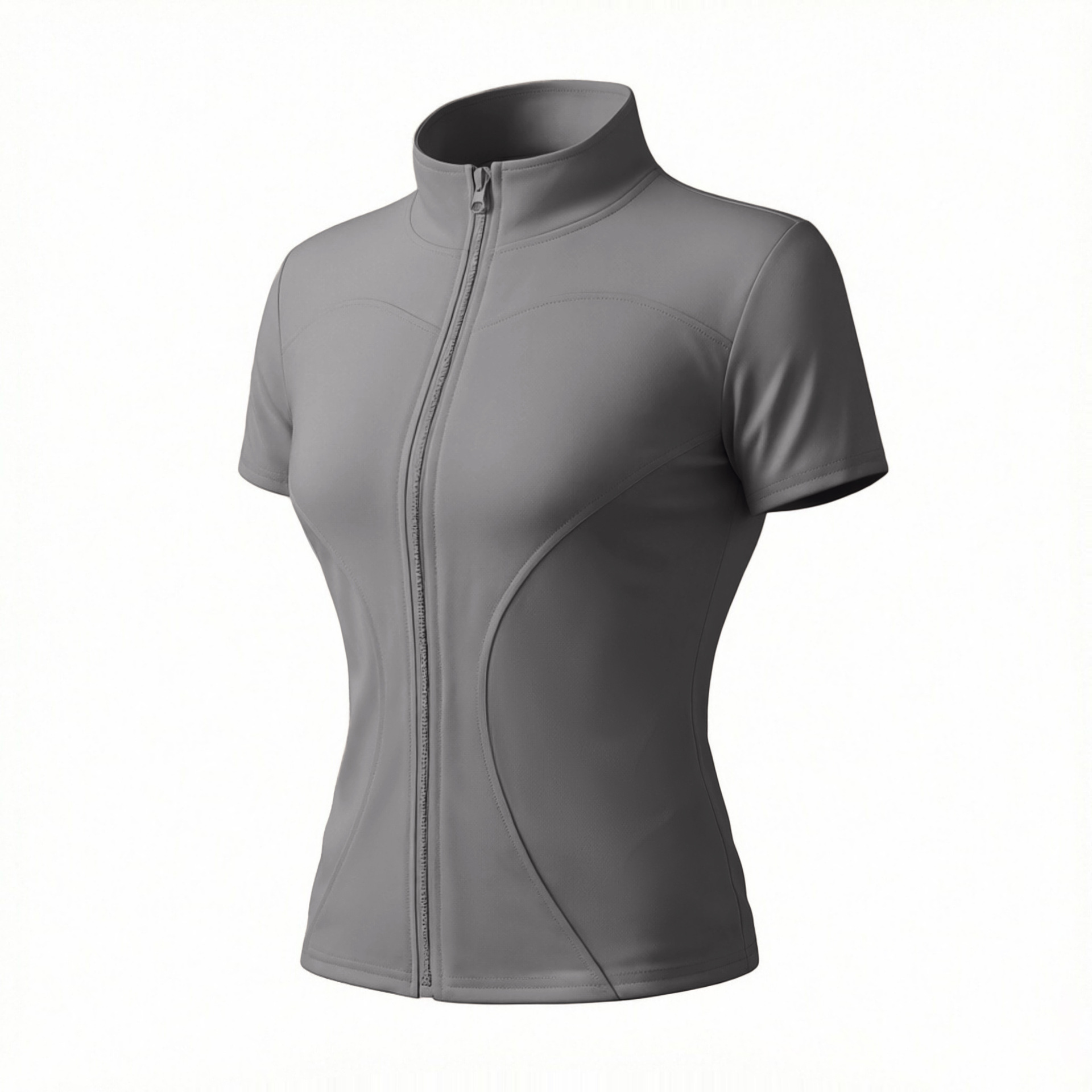 그레이 요가복 여성용 스포츠 반팔탑 봄여름 허리라인을 살려주는 하프넥 슬림핏 숏핏 어깨라인이 깔끔한 속건 티셔츠