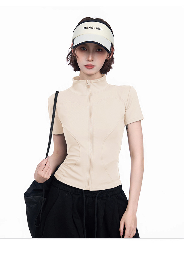 그레이 요가복 여성용 스포츠 반팔탑 봄여름 허리라인을 살려주는 하프넥 슬림핏 숏핏 어깨라인이 깔끔한 속건 티셔츠스토어 가기
