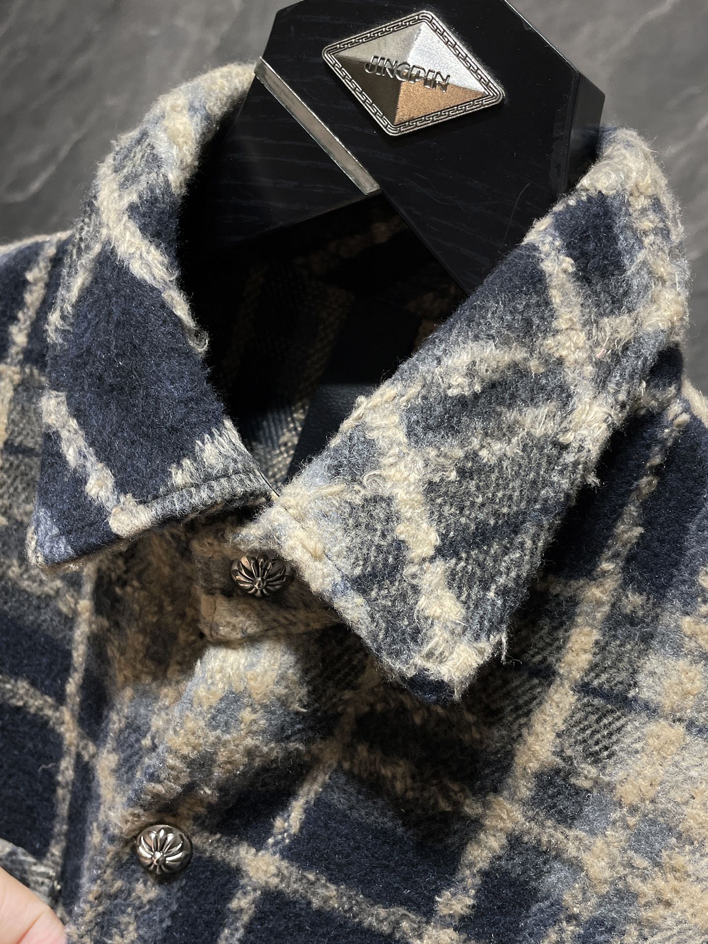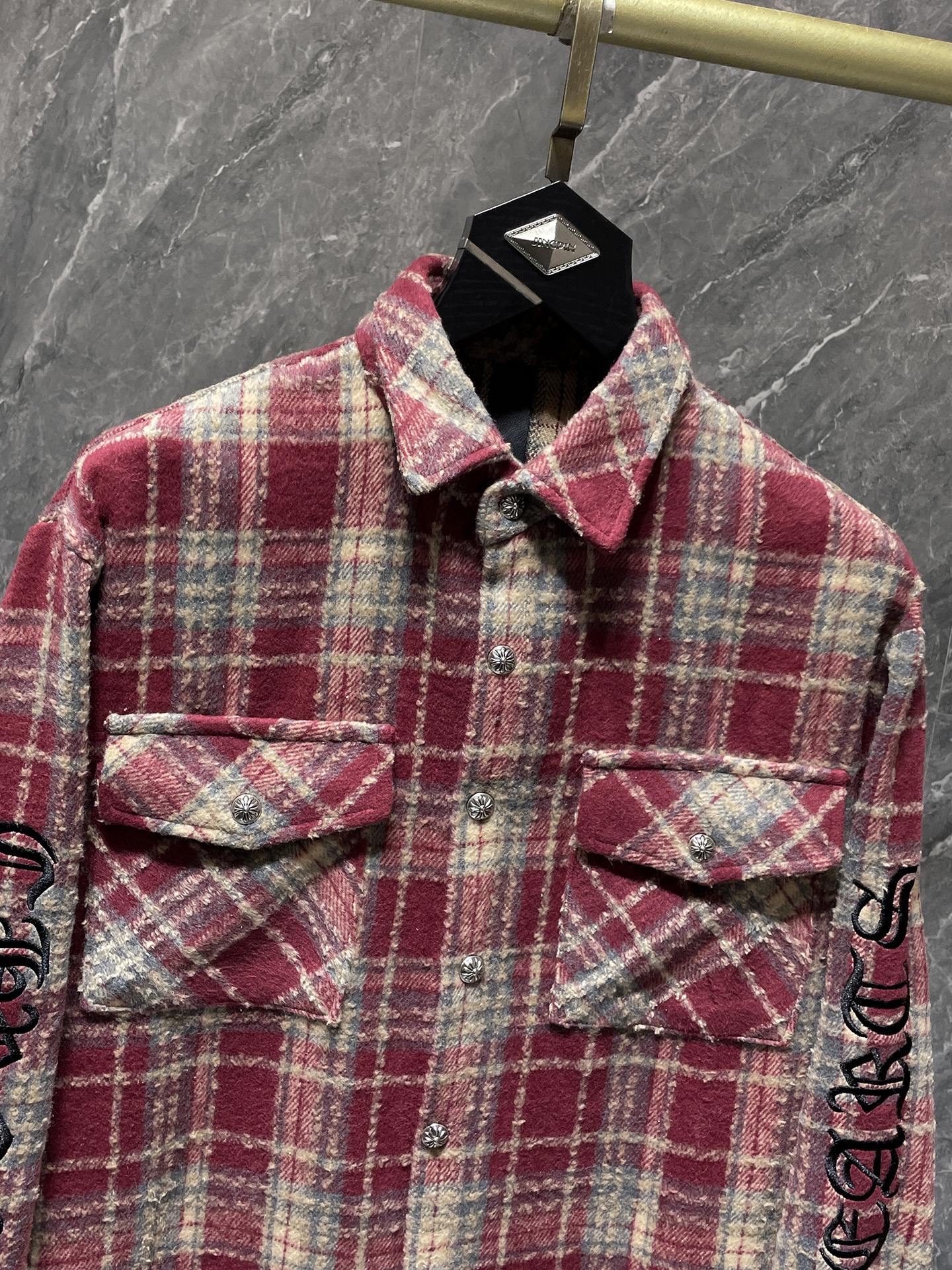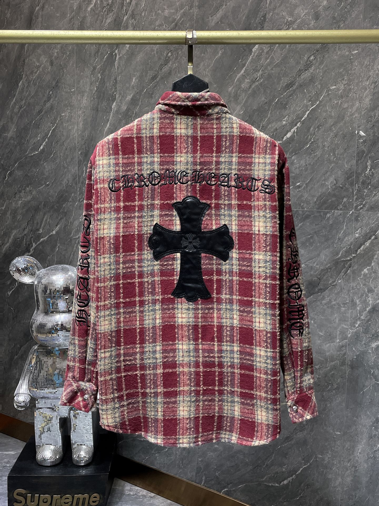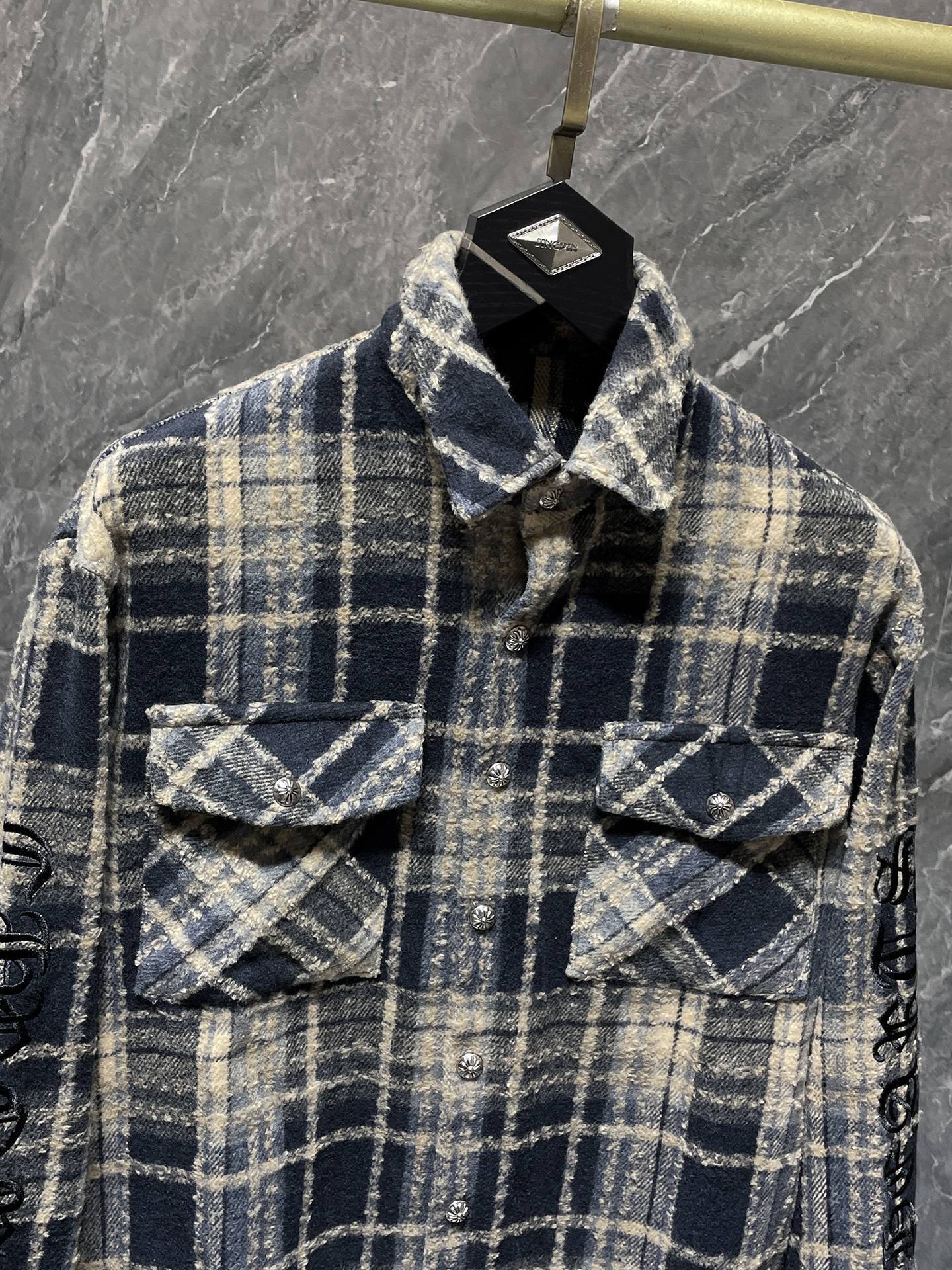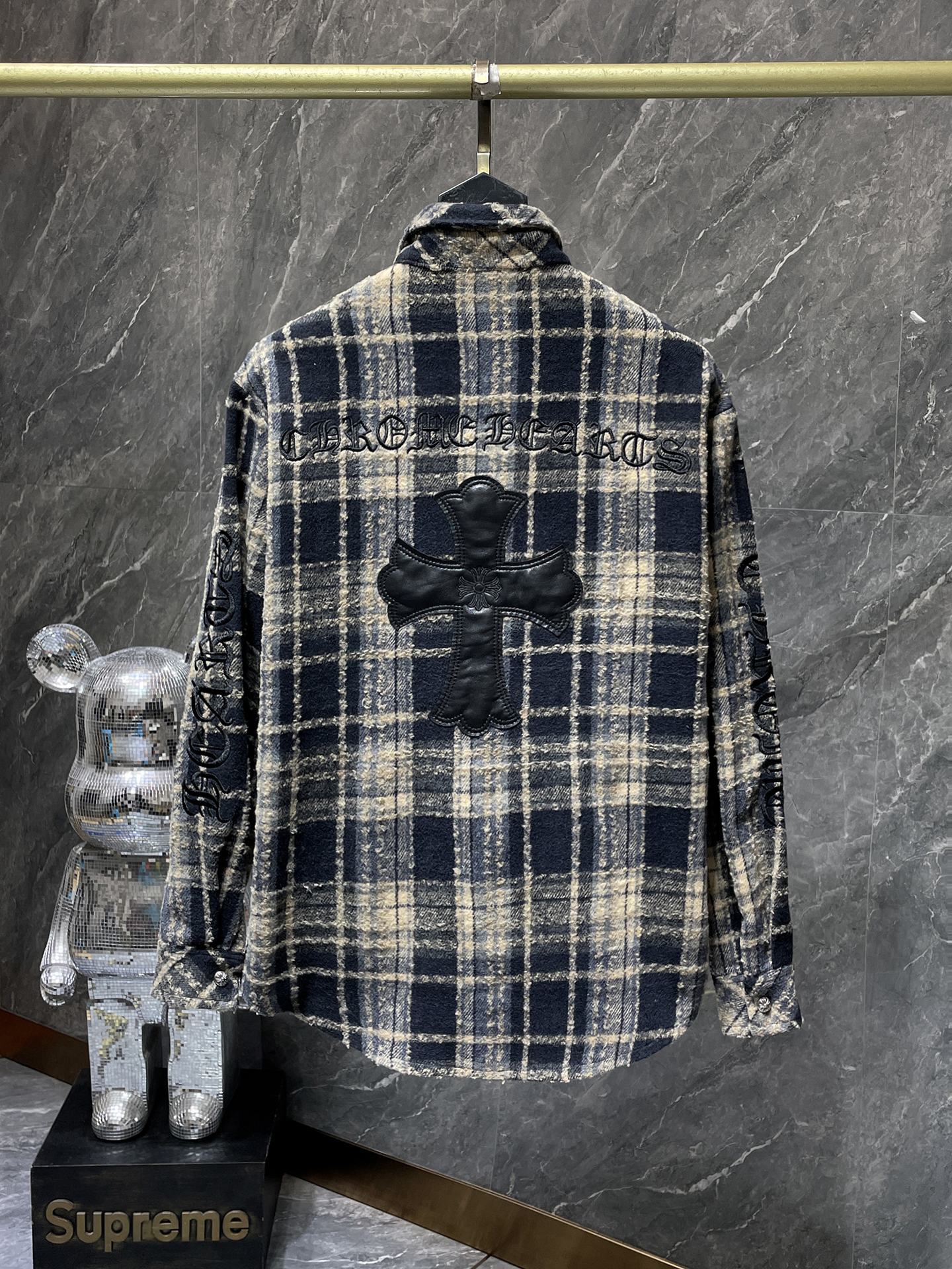 CH Crow 2025 봄 여름 새로운 스타일 자수 산스크리트 가죽 크로스 모직 셔츠 남성과 여성 드롭 배송